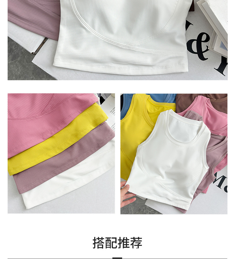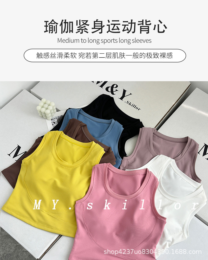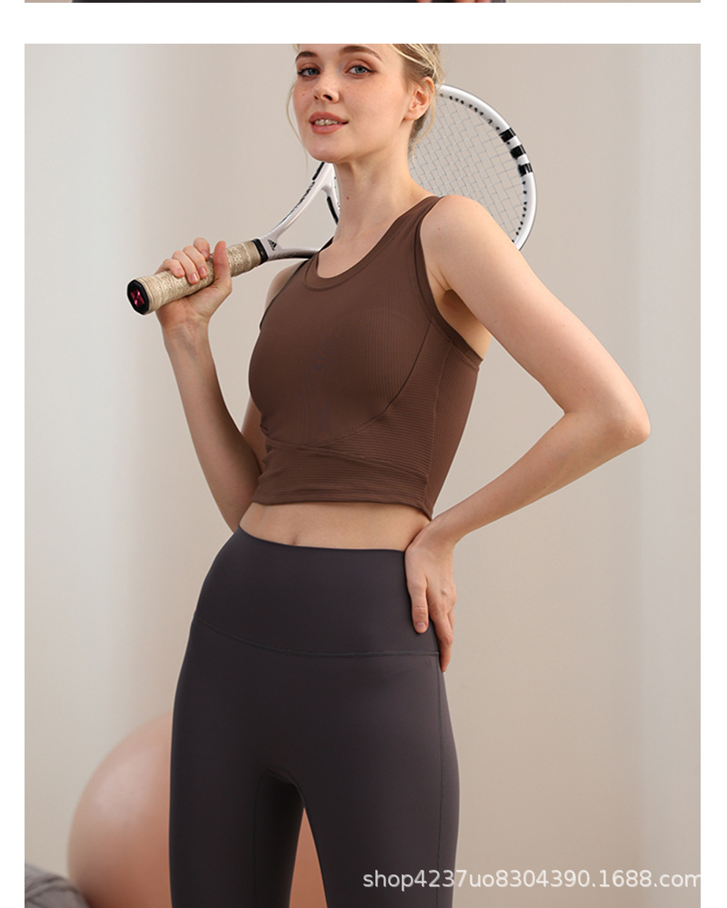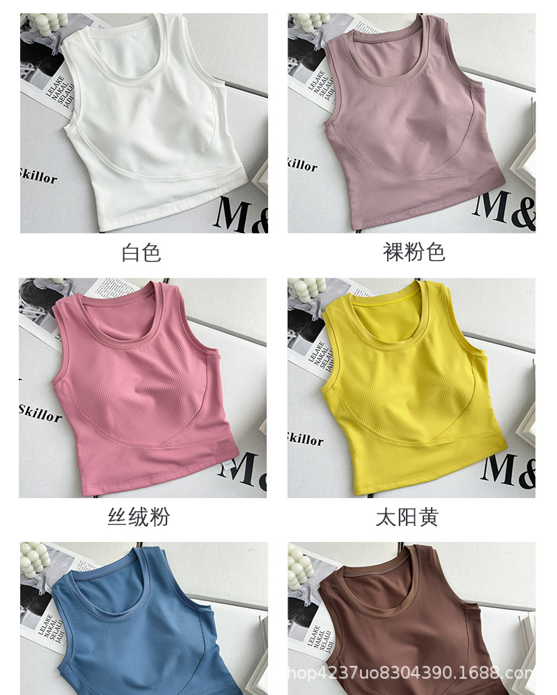룰루와 같은 스타일의 요가 라운드 넥 조끼 스레드 탄성 스포츠 브라 고정 가슴 패드 허리 충격 흡수 러닝 아름다운 등