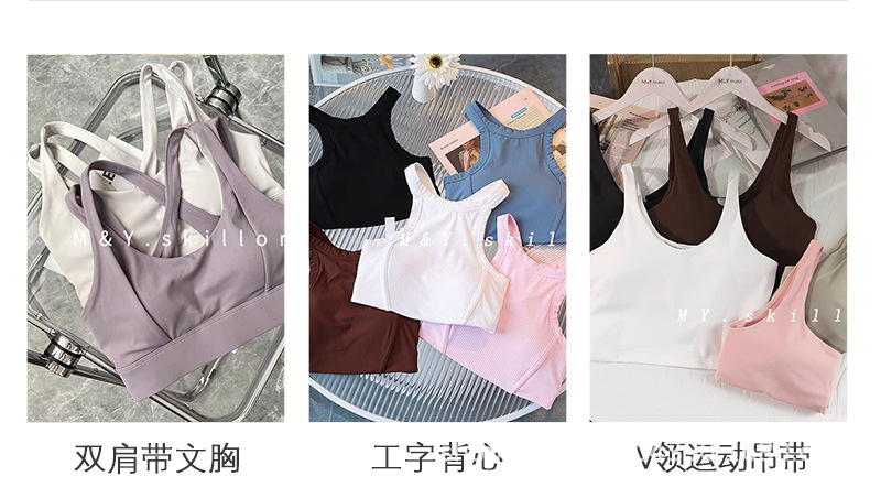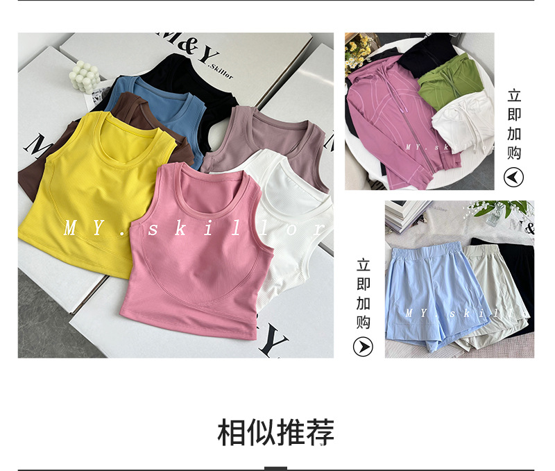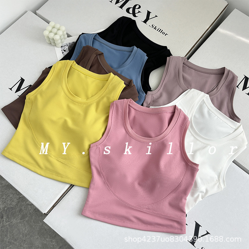 룰루와 같은 스타일의 요가 라운드 넥 조끼 스레드 탄성 스포츠 브라 고정 가슴 패드 허리 충격 흡수 러닝 아름다운 등스토어 가기