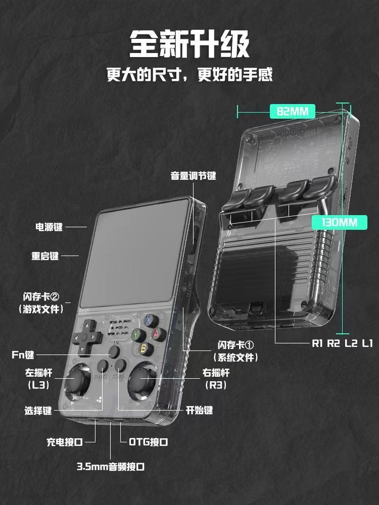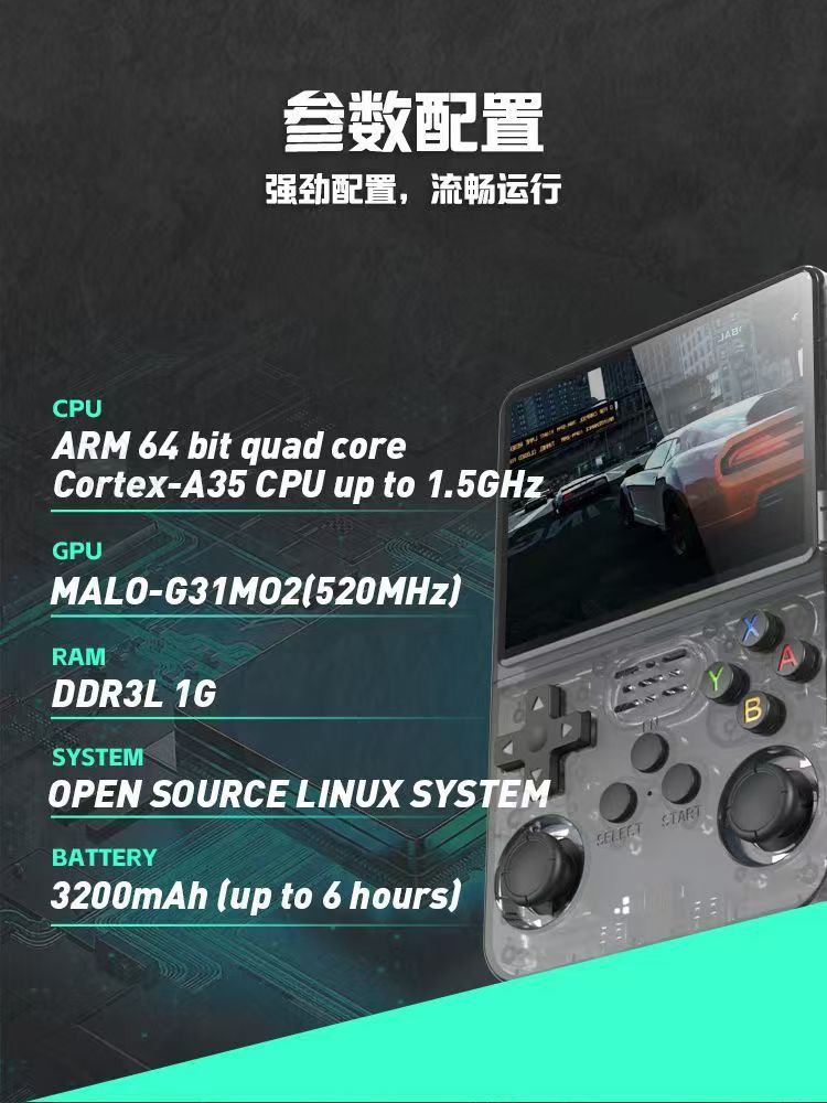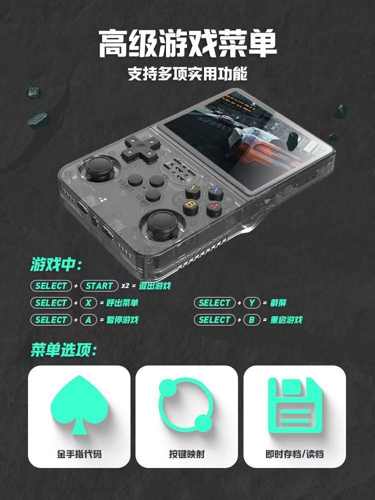 국경 간 R36S 휴대용 게임기 오픈 소스 리눅스 시스템 3.5 인치 IPS 화면 휴대용 핸드 헬드 게임기