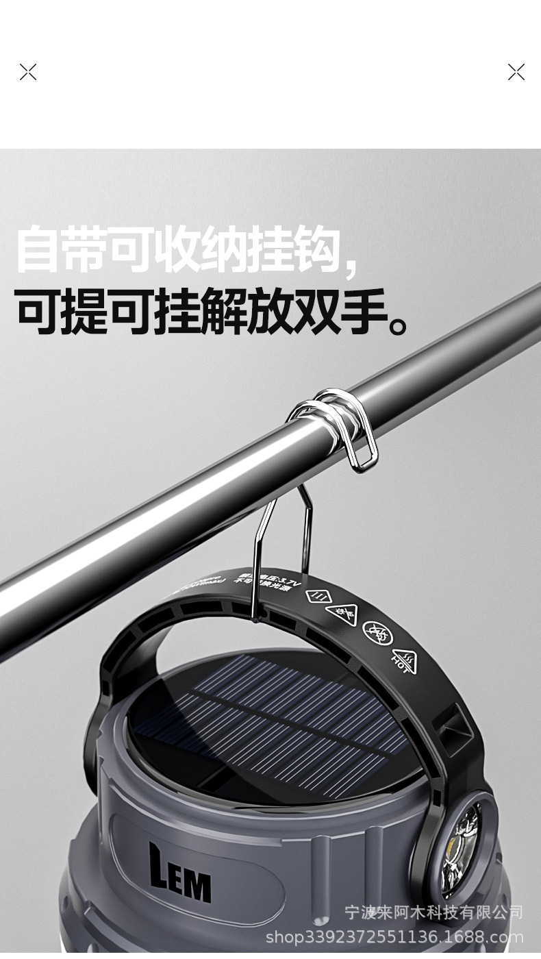 LEM 야외 캠핑 라이트 슈퍼 긴 내구성 태양 휴대용 충전식 캠핑 텐트 분위기 매달려 조명스토어 가기