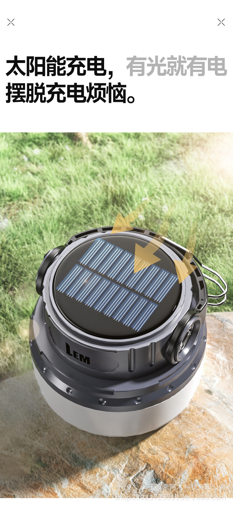 LEM 야외 캠핑 라이트 슈퍼 긴 내구성 태양 휴대용 충전식 캠핑 텐트 분위기 매달려 조명
