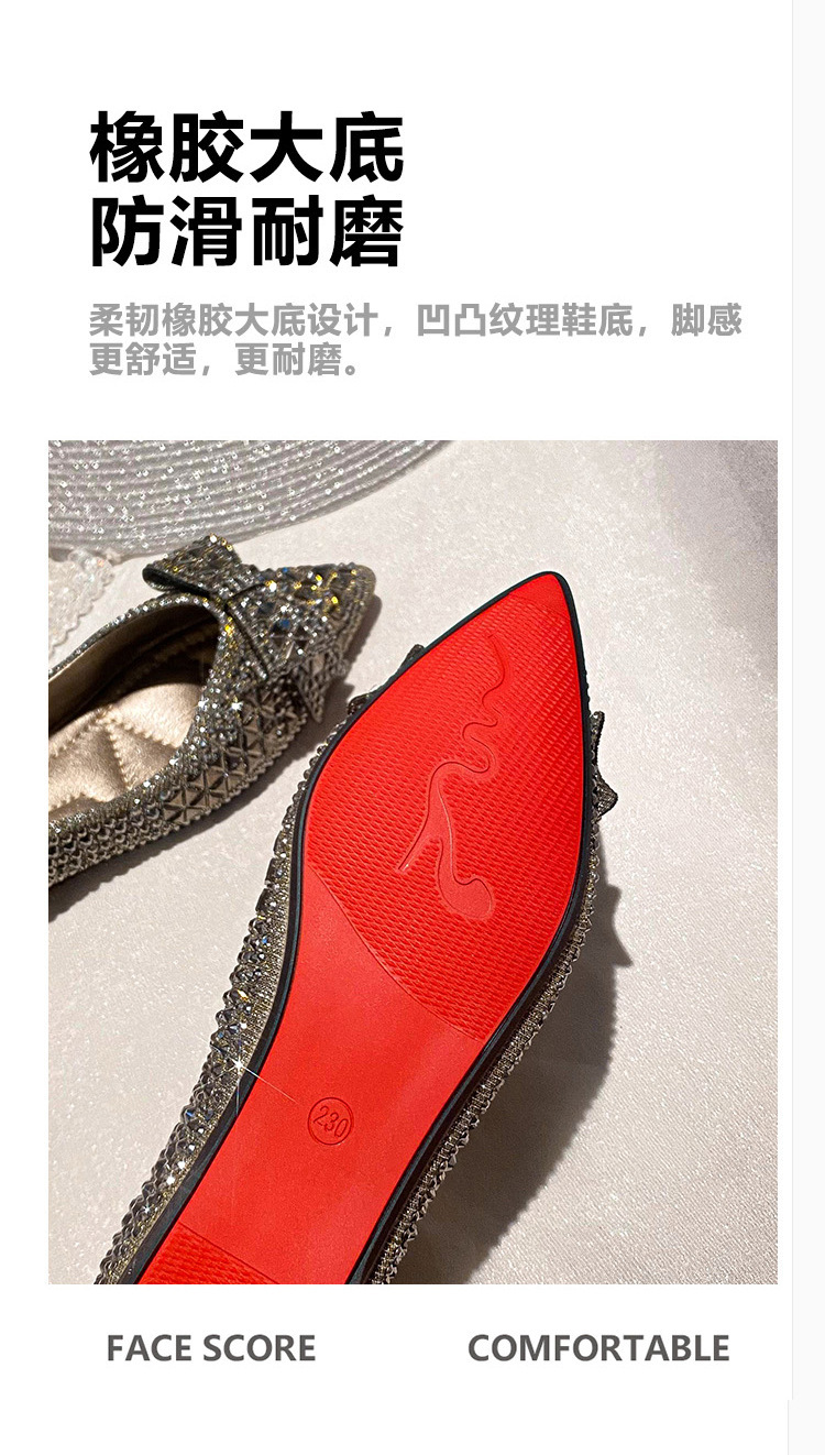 여성을위한 프랑스 스타일 포인티드 토 신발 2025 새로운 요정 스타일 얕은 입 모조 다이아몬드 플랫 바닥 부드러운 바닥 나비 꽃 조롱박 신발 기질 보트스토어 가기
