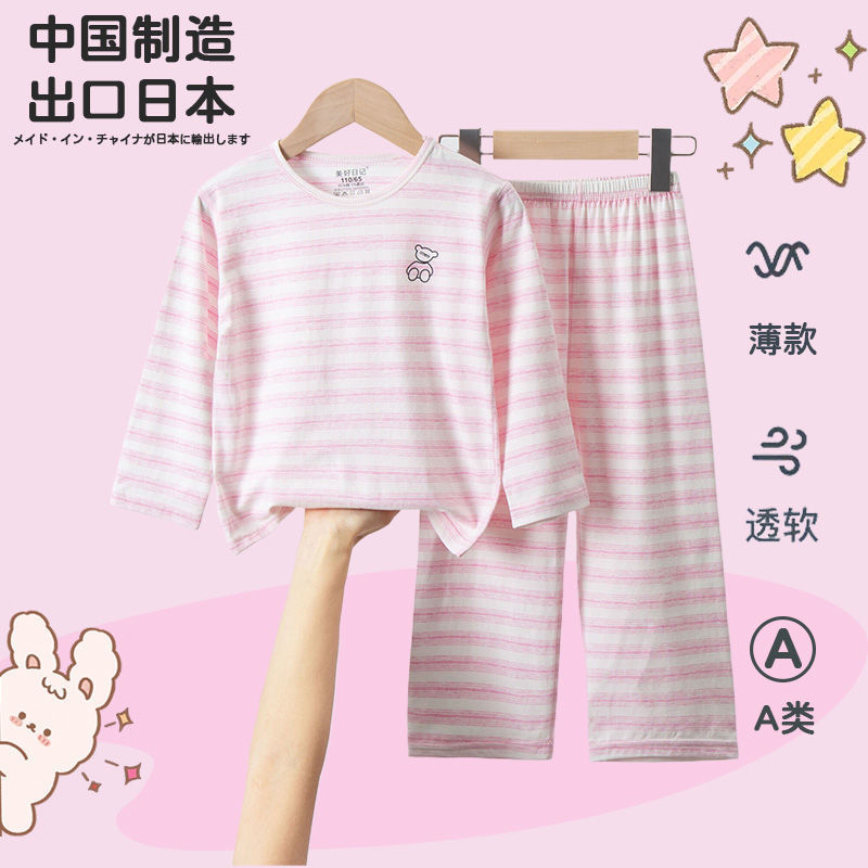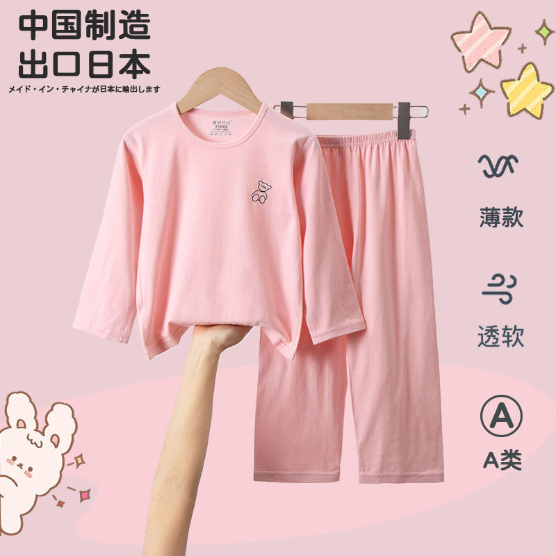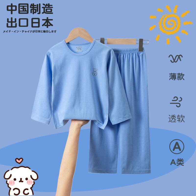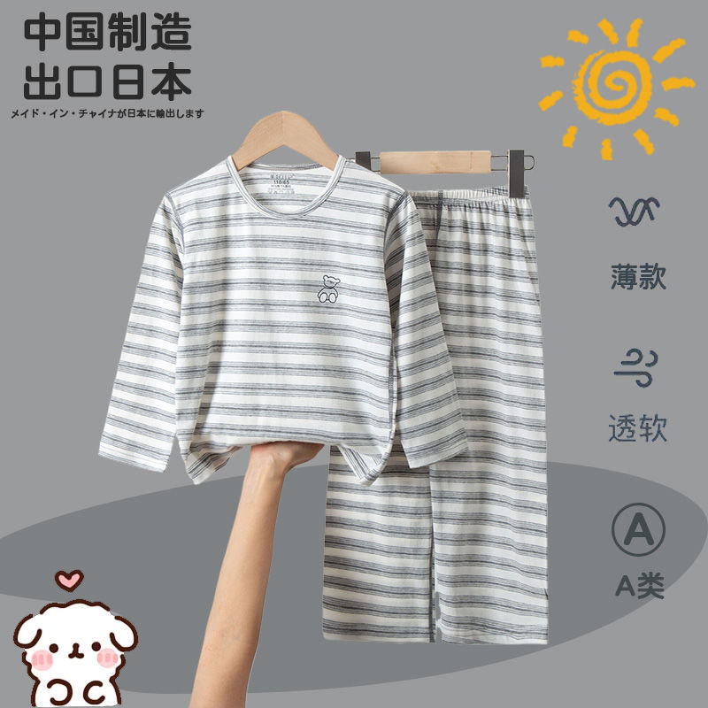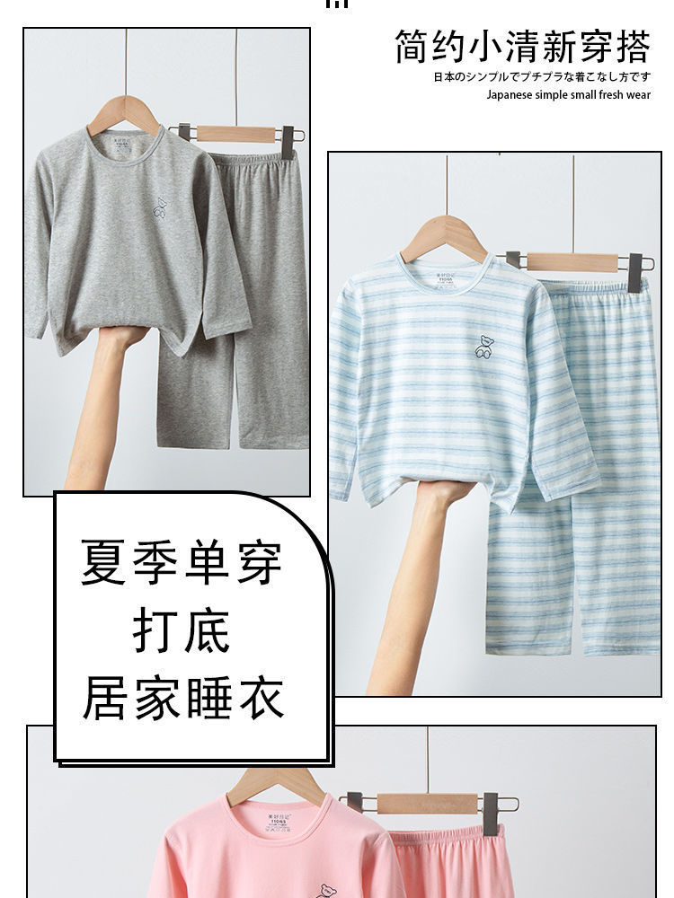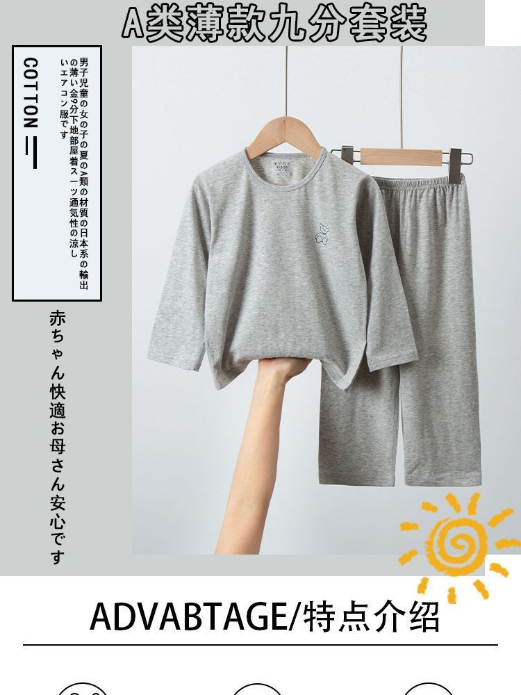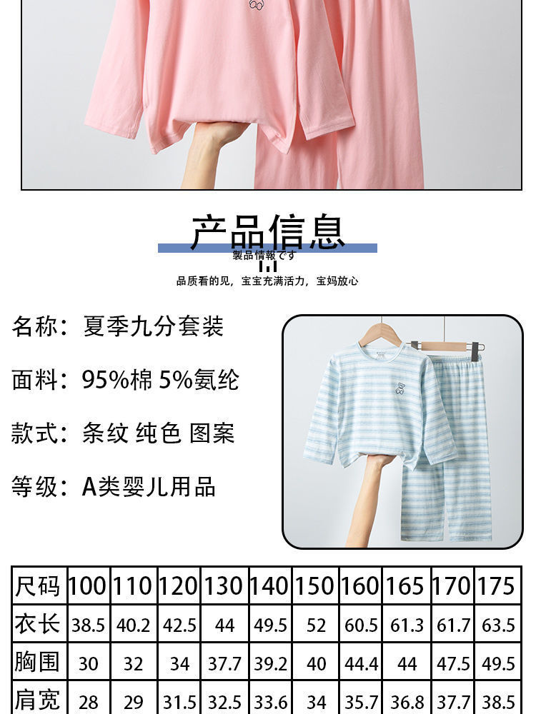 순면 A급 아동용 잠옷, 남아용 여름용 얇은 9부 소매 양복, 여아용 에어컨 의류, 학생용 가정복스토어 가기