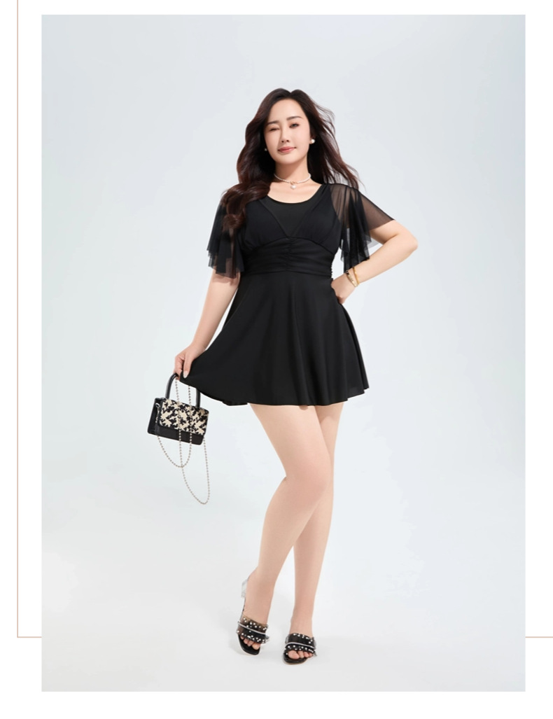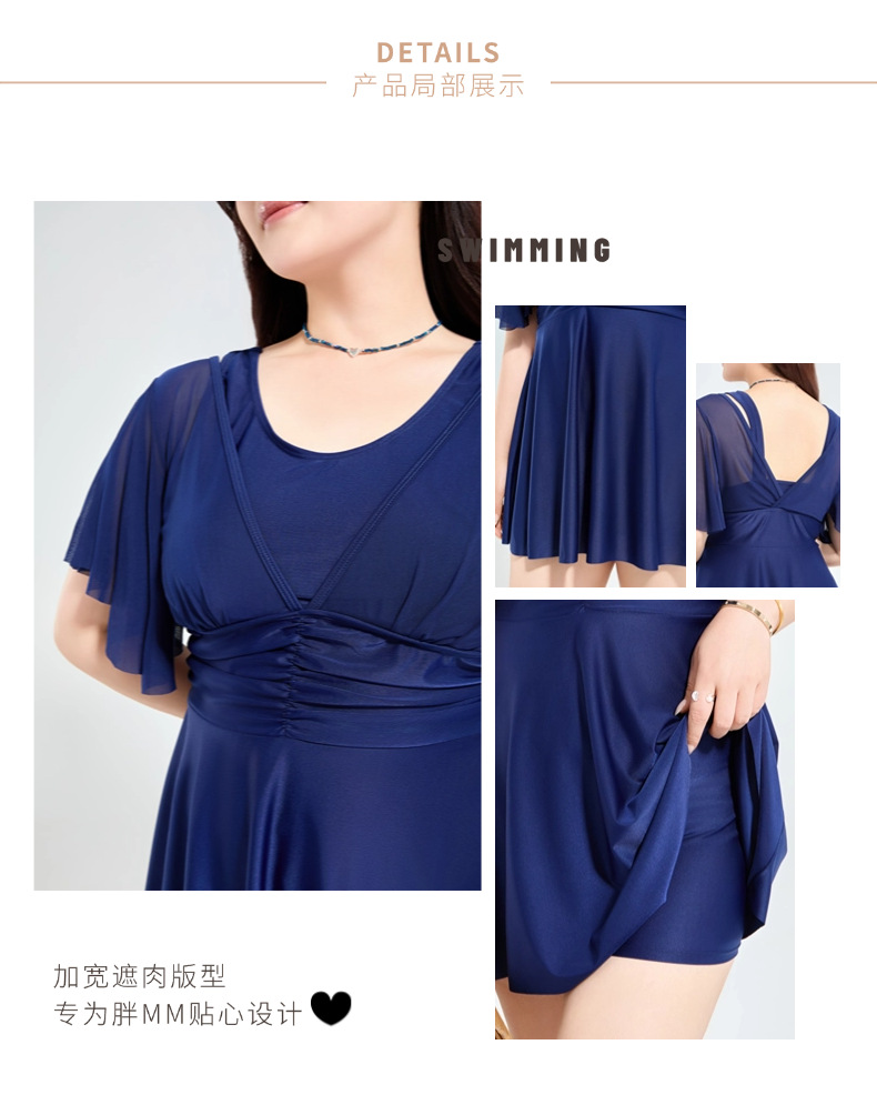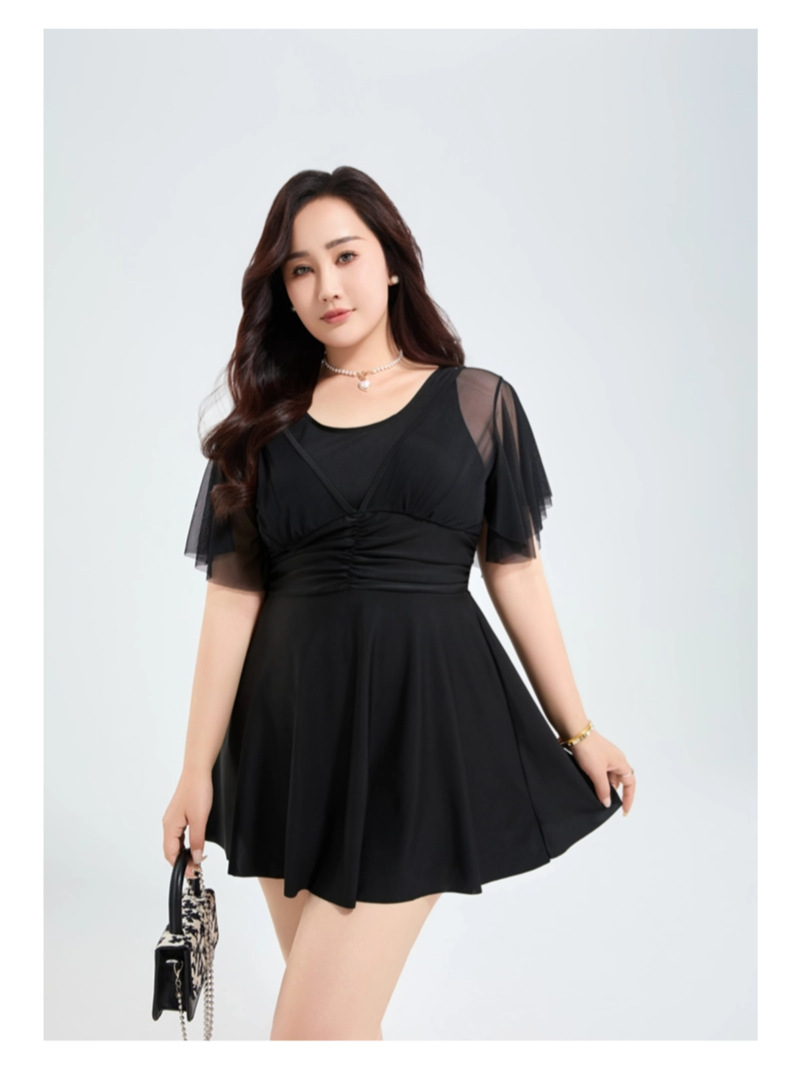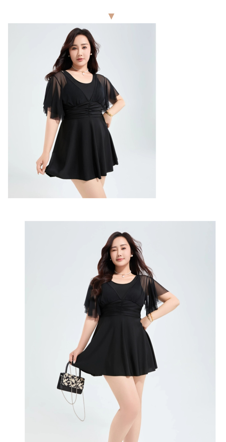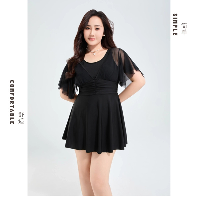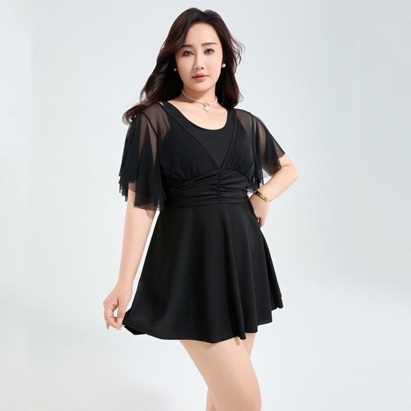 뚱뚱한 여성을 위한 플러스 사이즈 수영복, 원피스 수영복 2025 배를 커버하고 슬리밍, 등이 없는 러플 반팔 온천 수영복