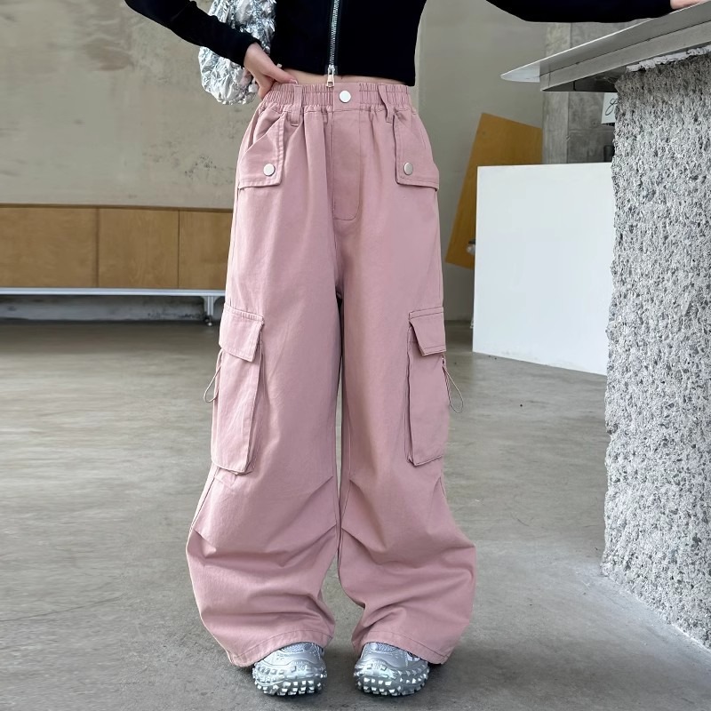 소녀 크로크웨어 팬츠 봄과 가을 2025 새로운 어린이 트렌디 쿨웨어 팬츠 소녀 가을 스트레이트-다리 와이드 레그 팬츠