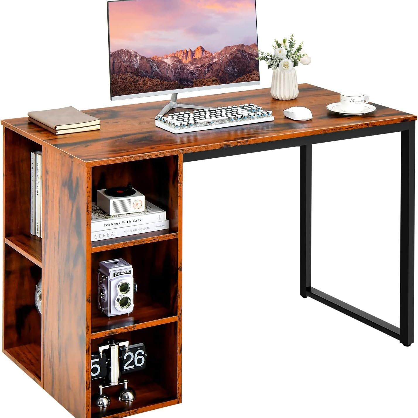 컨트리 브라운 홈 오피스 노트북 책상 측면 수납 책장 쓰기 학습 책상 국경 간스토어 가기