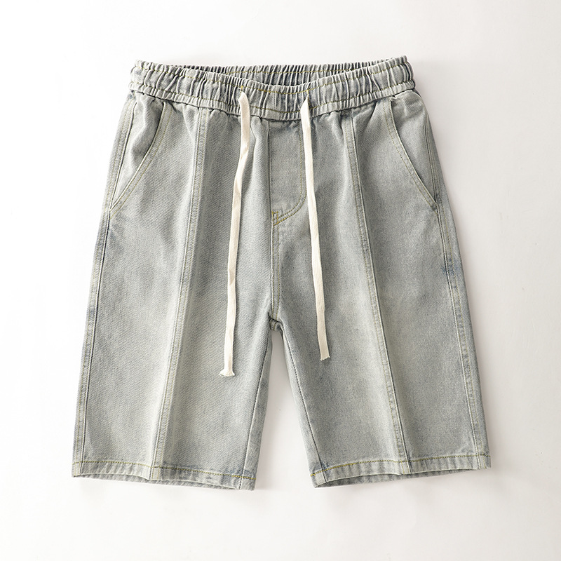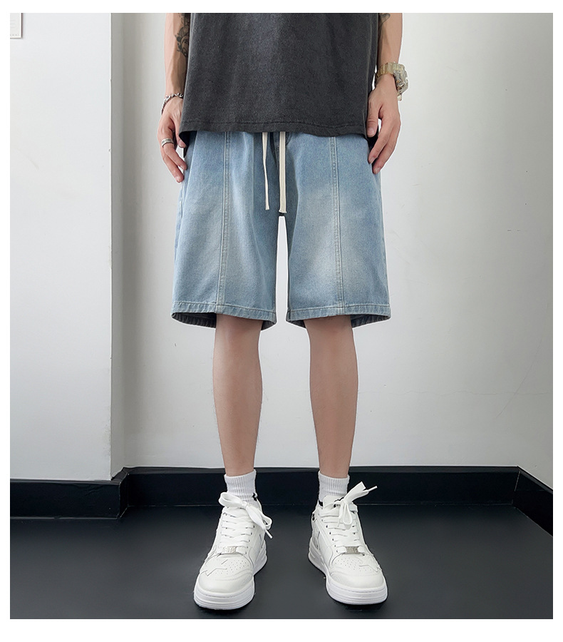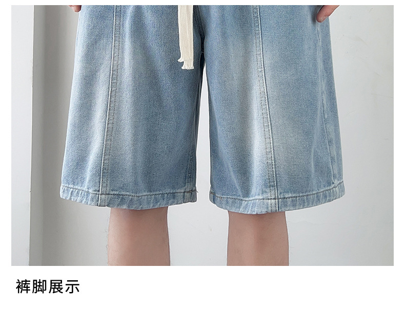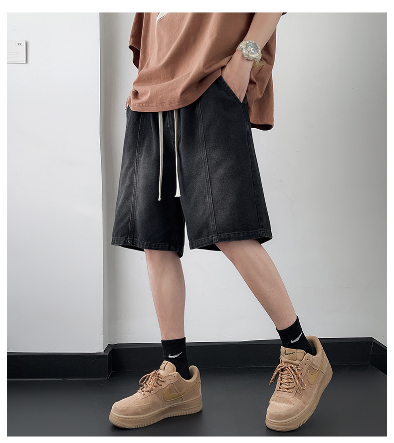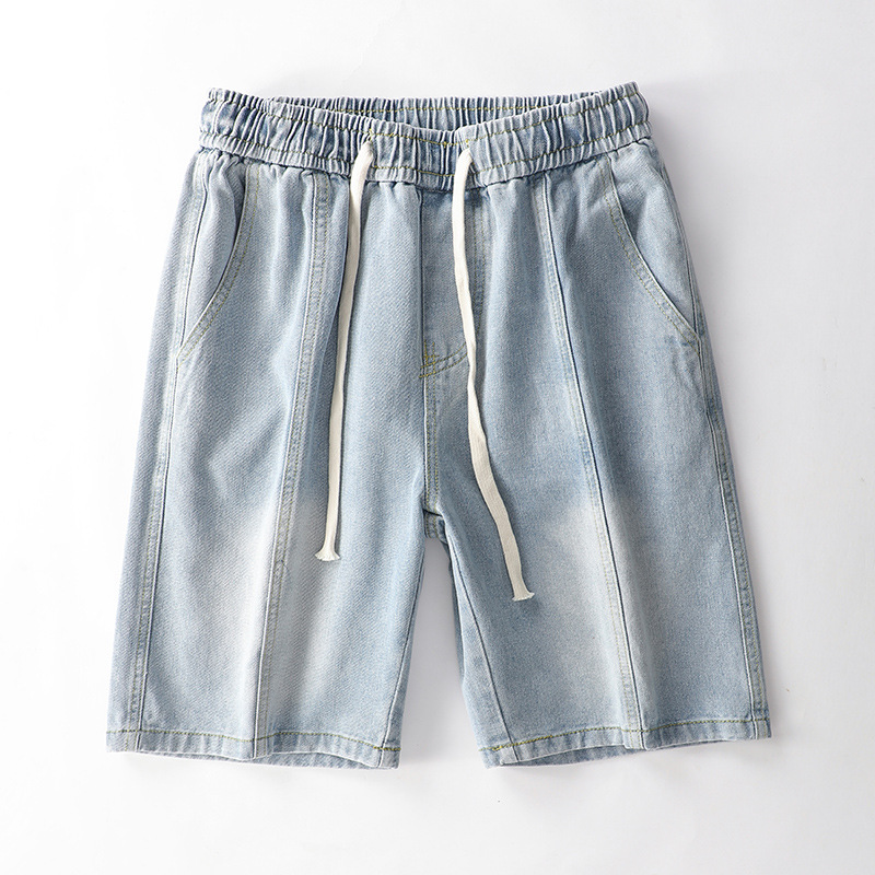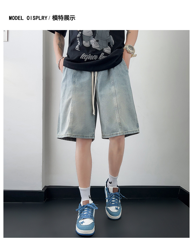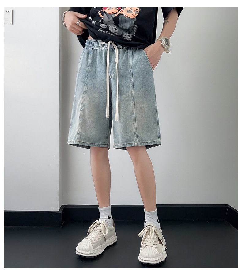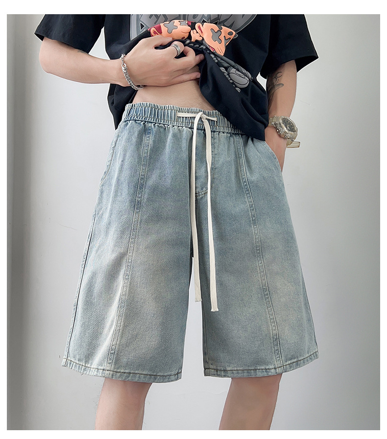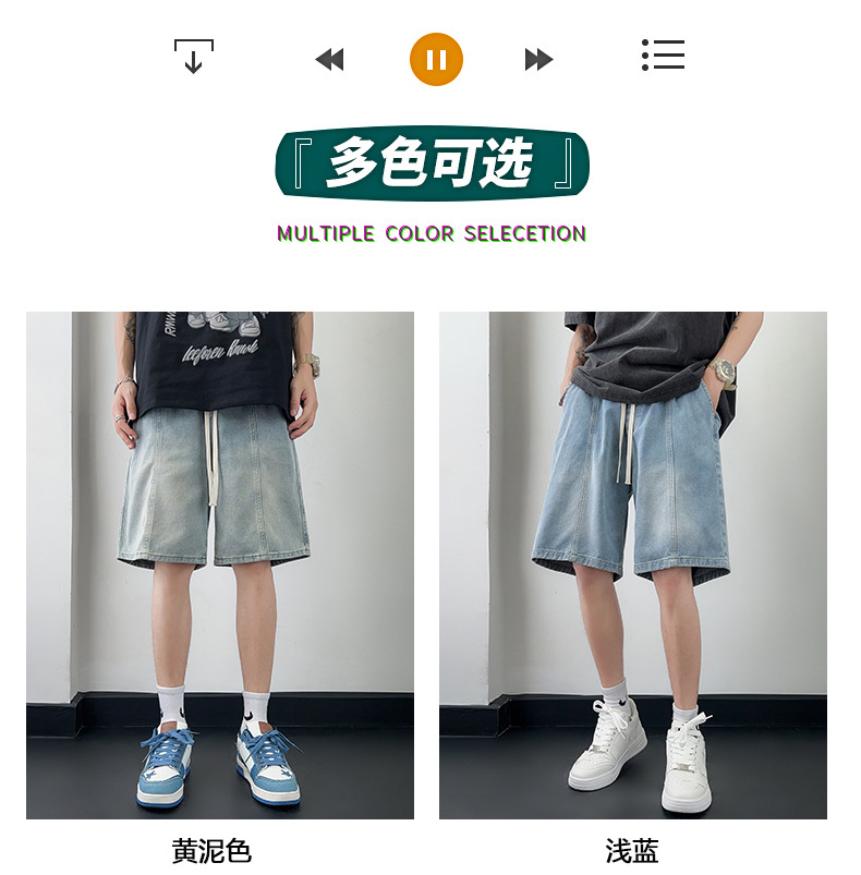 노란색 진 색상 데님 반바지 남성 여름 2024 새로운 미국 하이 스트리트 패션 브랜드 루즈 캐주얼 중간 길이 바지스토어 가기