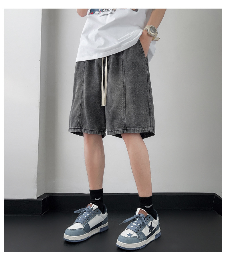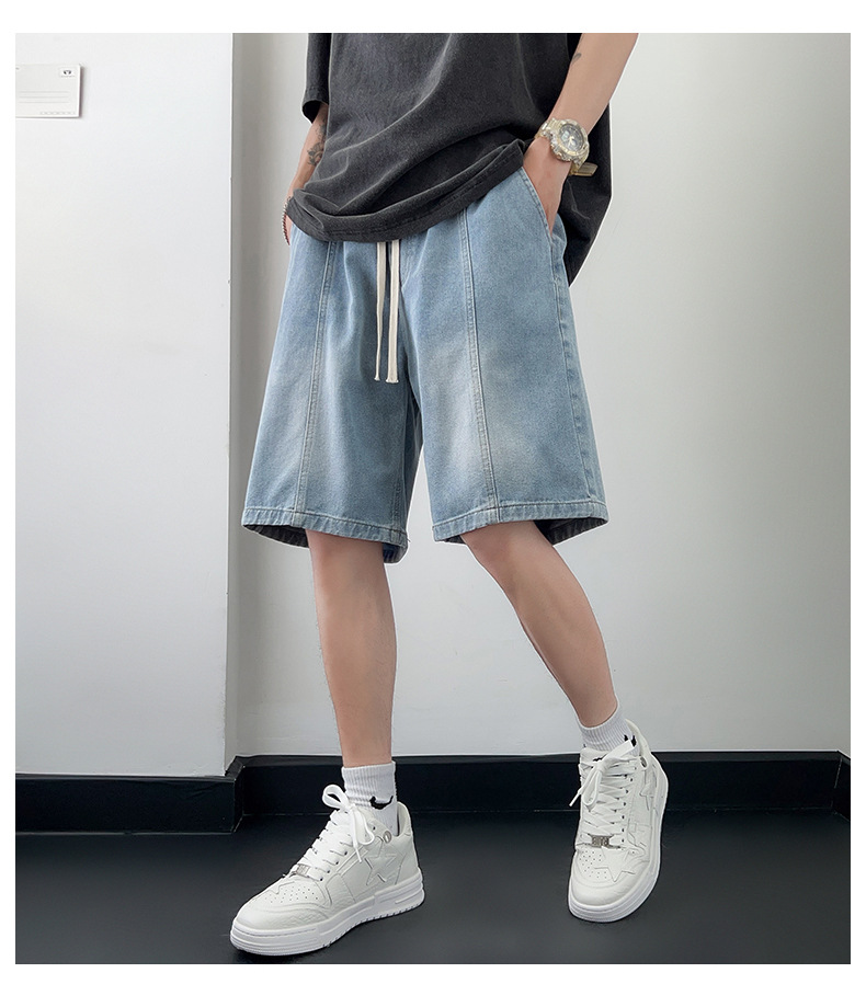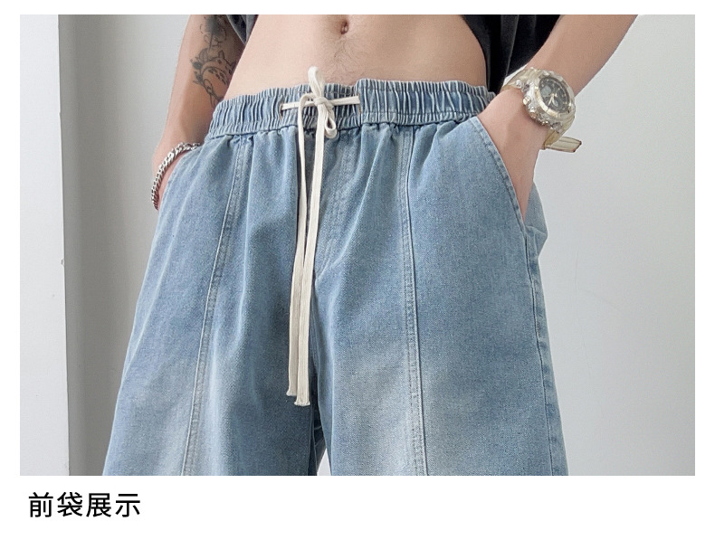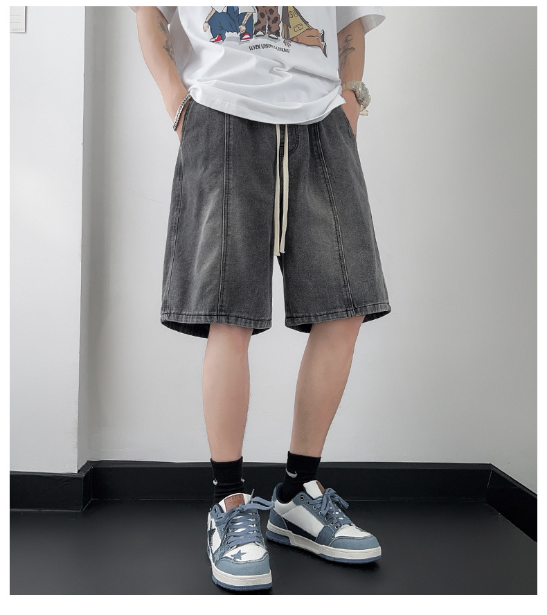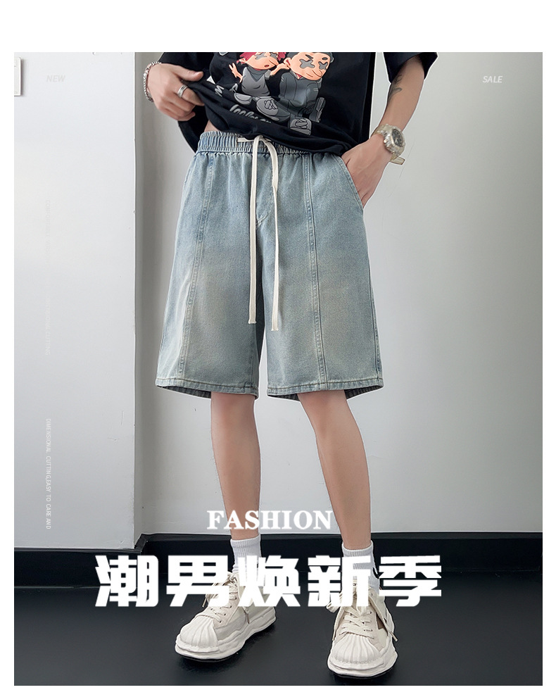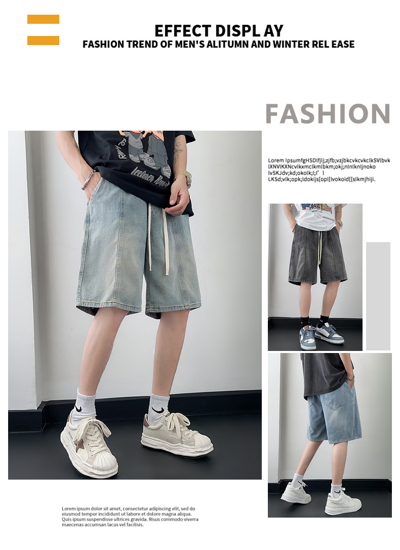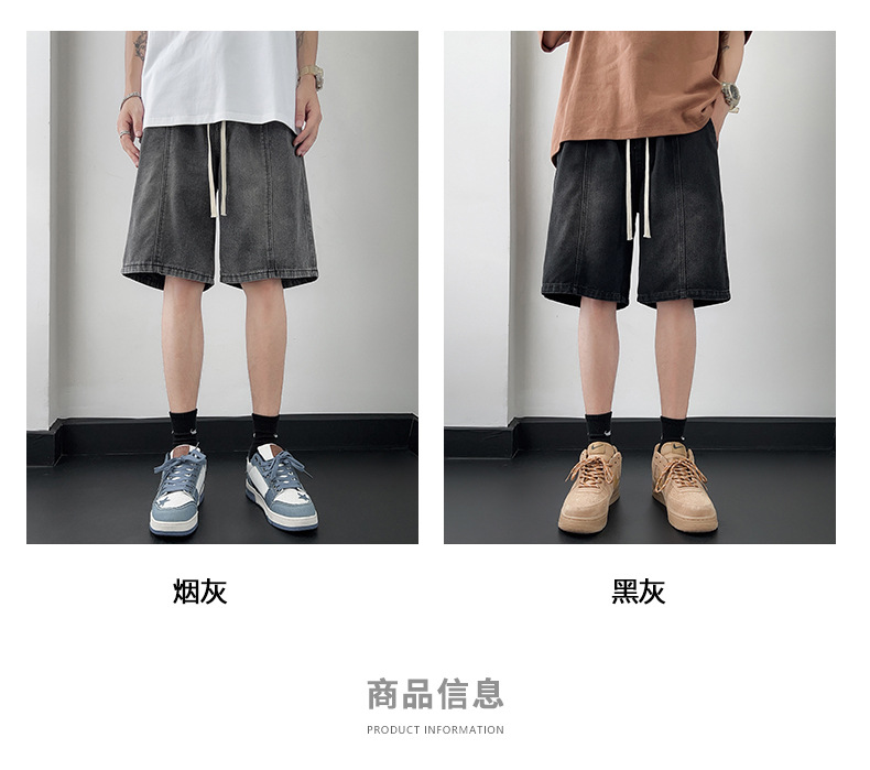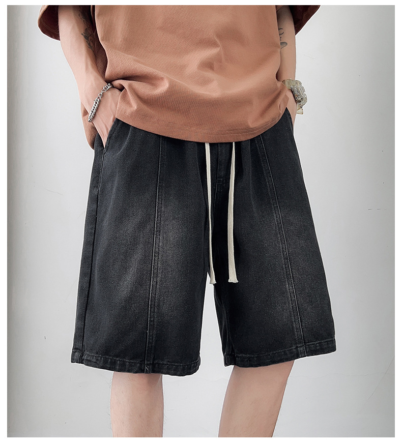 노란색 진 색상 데님 반바지 남성 여름 2024 새로운 미국 하이 스트리트 패션 브랜드 루즈 캐주얼 중간 길이 바지스토어 가기