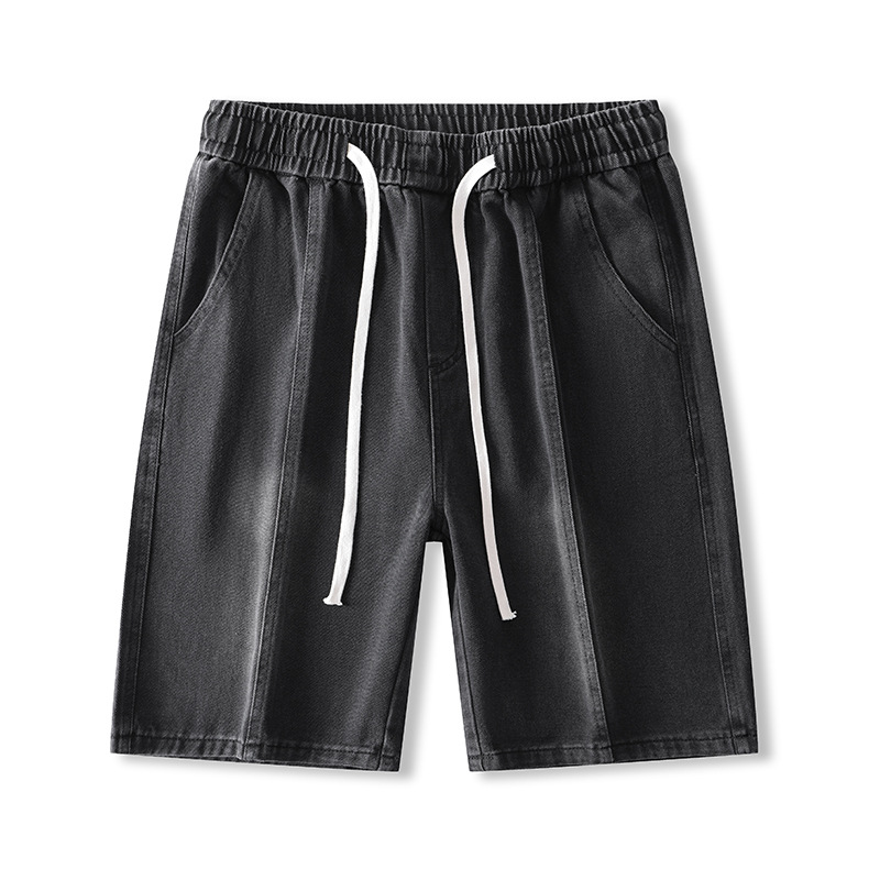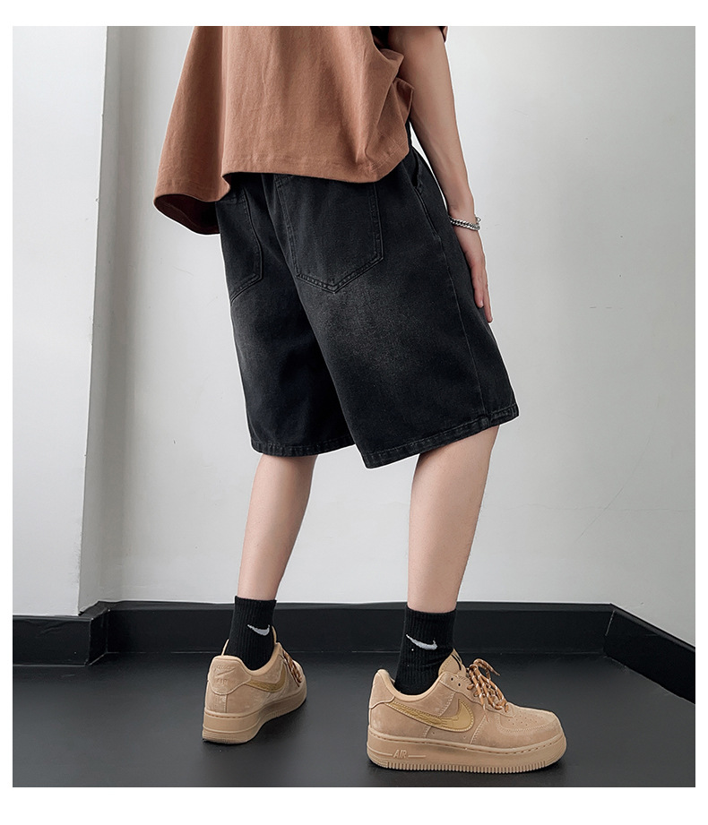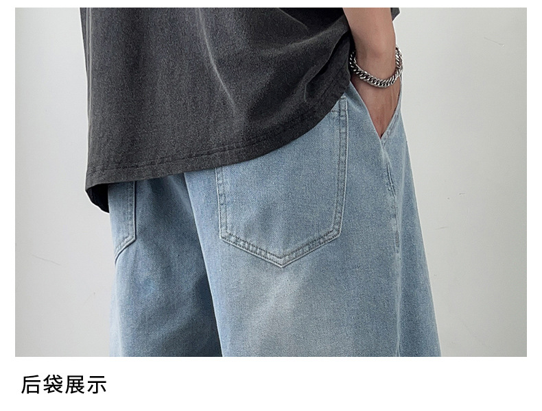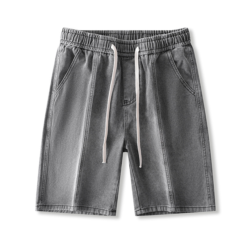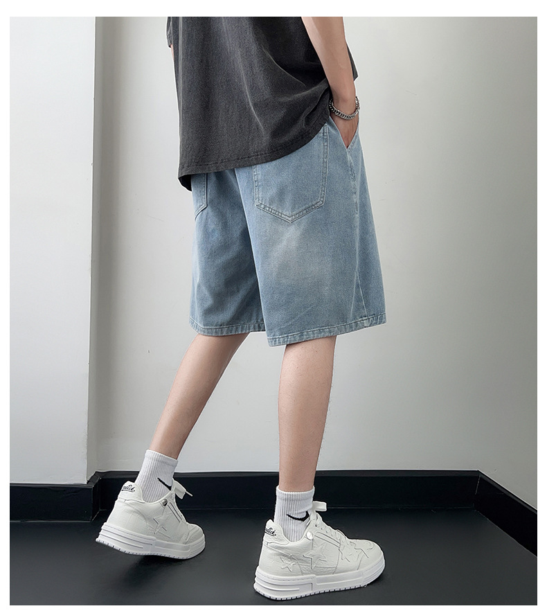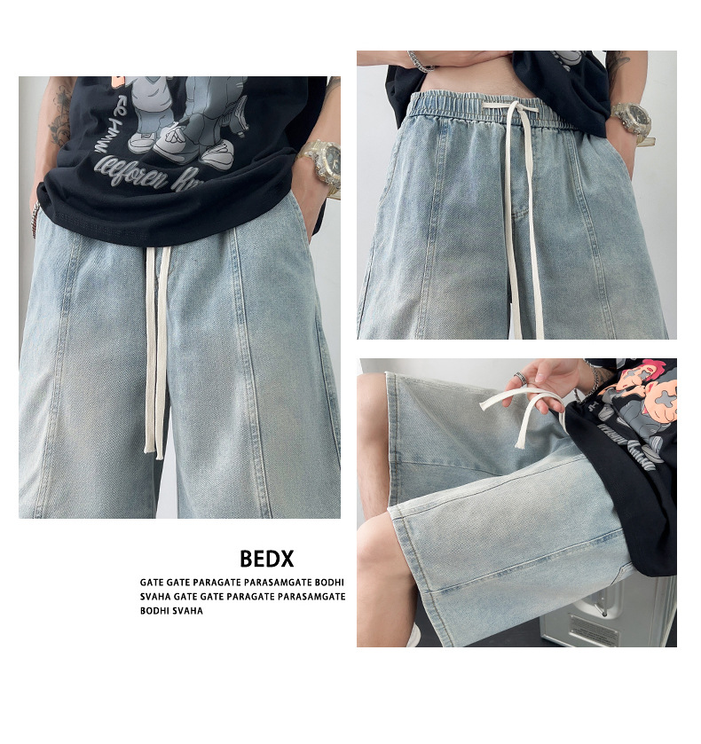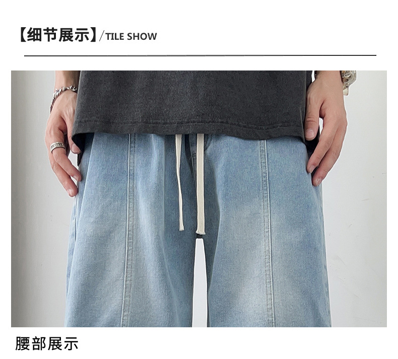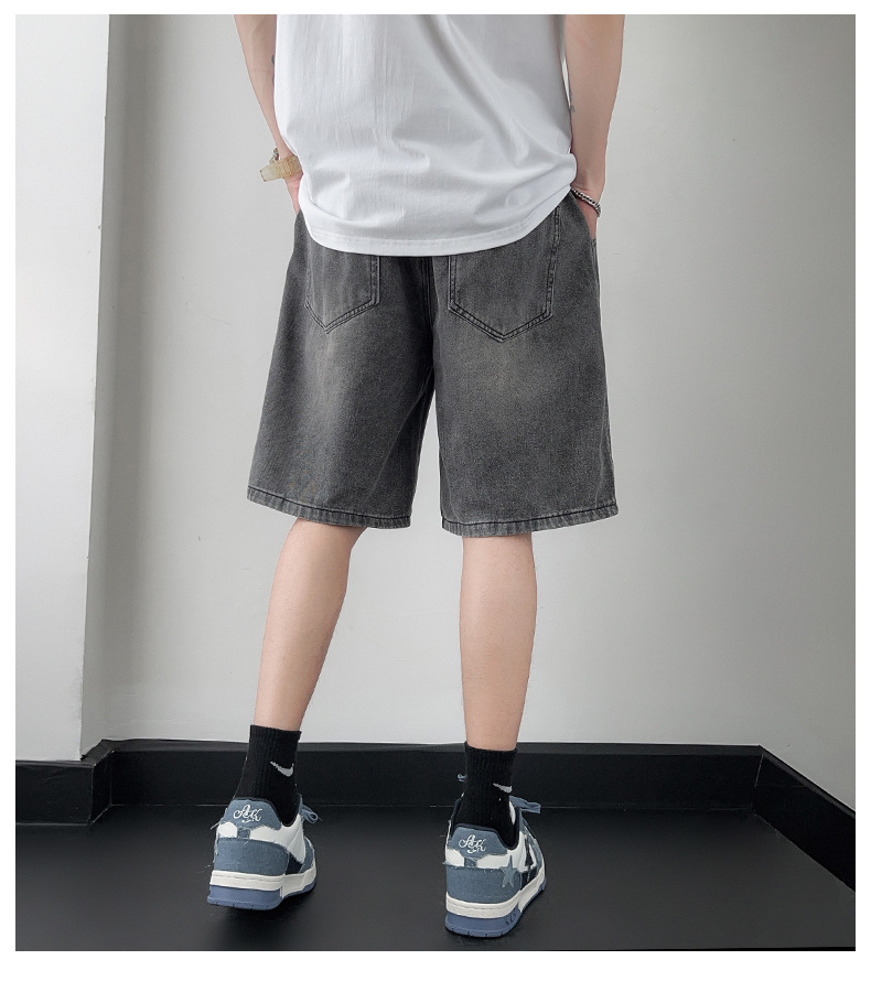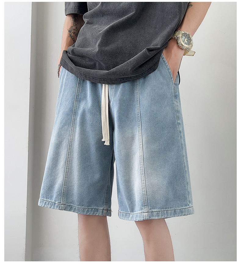 노란색 진 색상 데님 반바지 남성 여름 2024 새로운 미국 하이 스트리트 패션 브랜드 루즈 캐주얼 중간 길이 바지스토어 가기