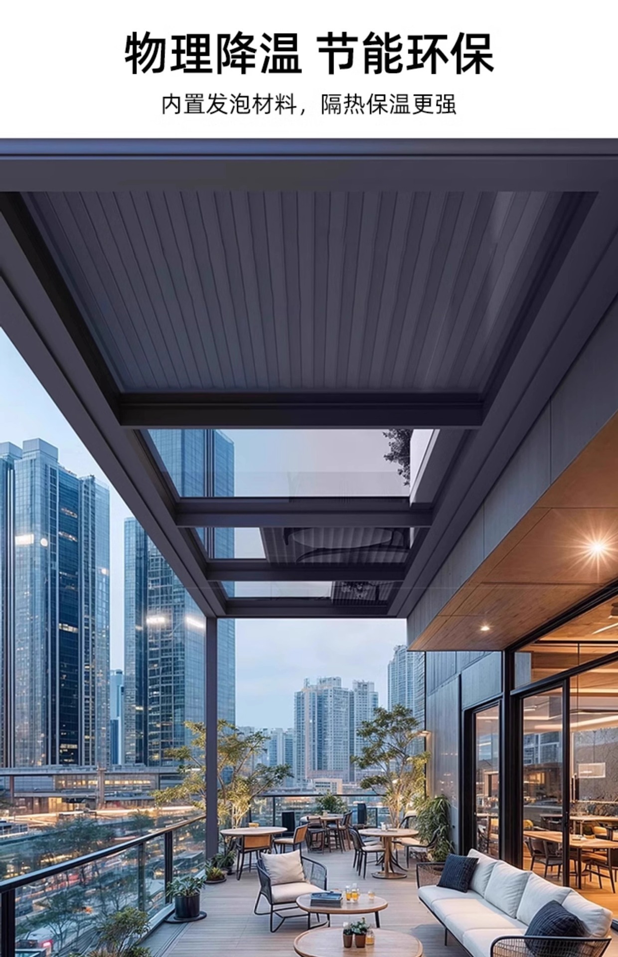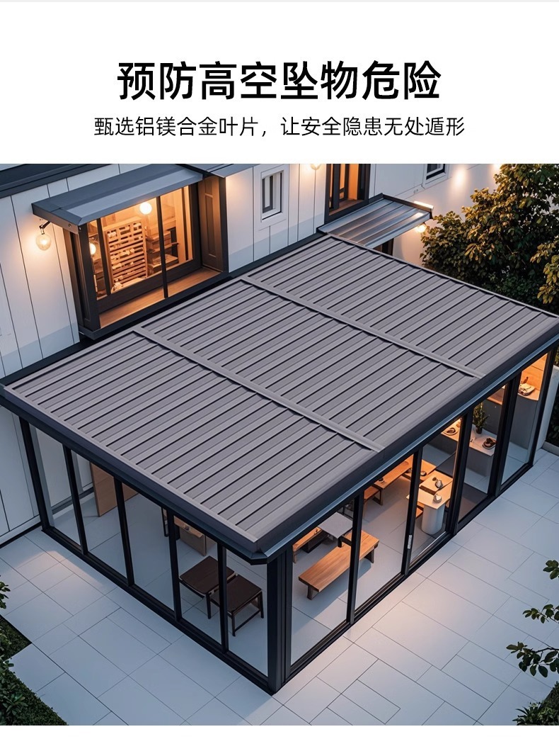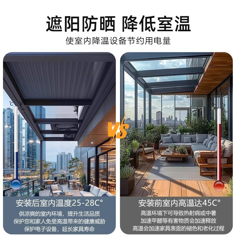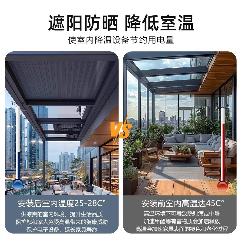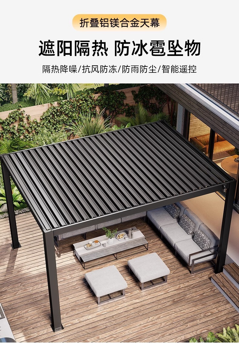 차양 및 단열 전동 알루미늄 합금 캐노피 선룸 차양막 접이식 자동 수축 롤업 차양막