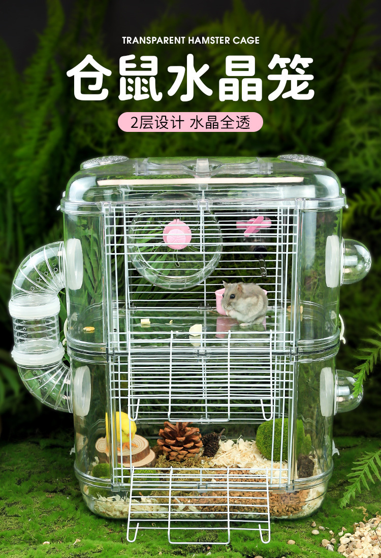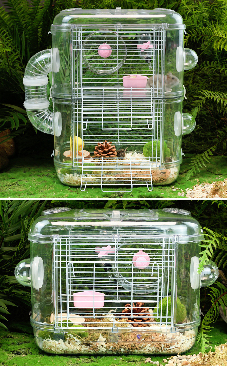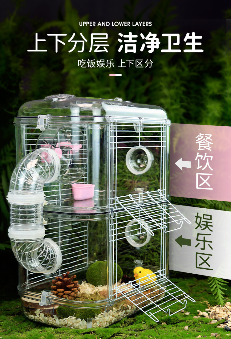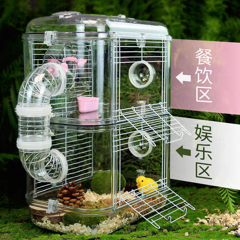 고급 더블 레이어 투명 햄스터 케이지 대형 빌라 케이지를 청소하기 쉬운 골든 베어 특수 케이지 대형 공급 상자스토어 가기