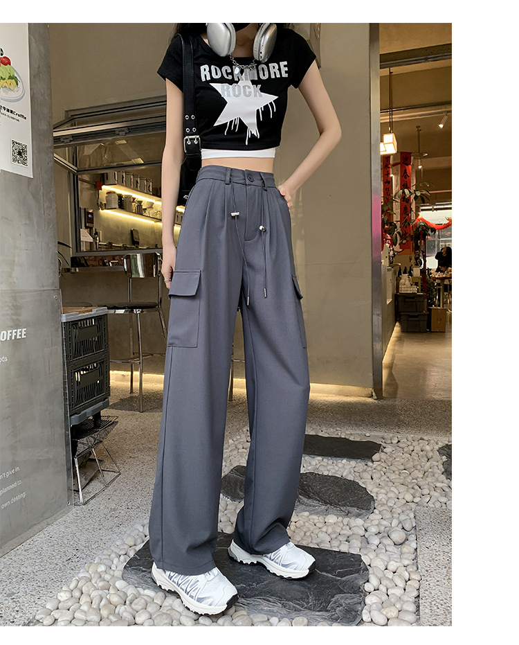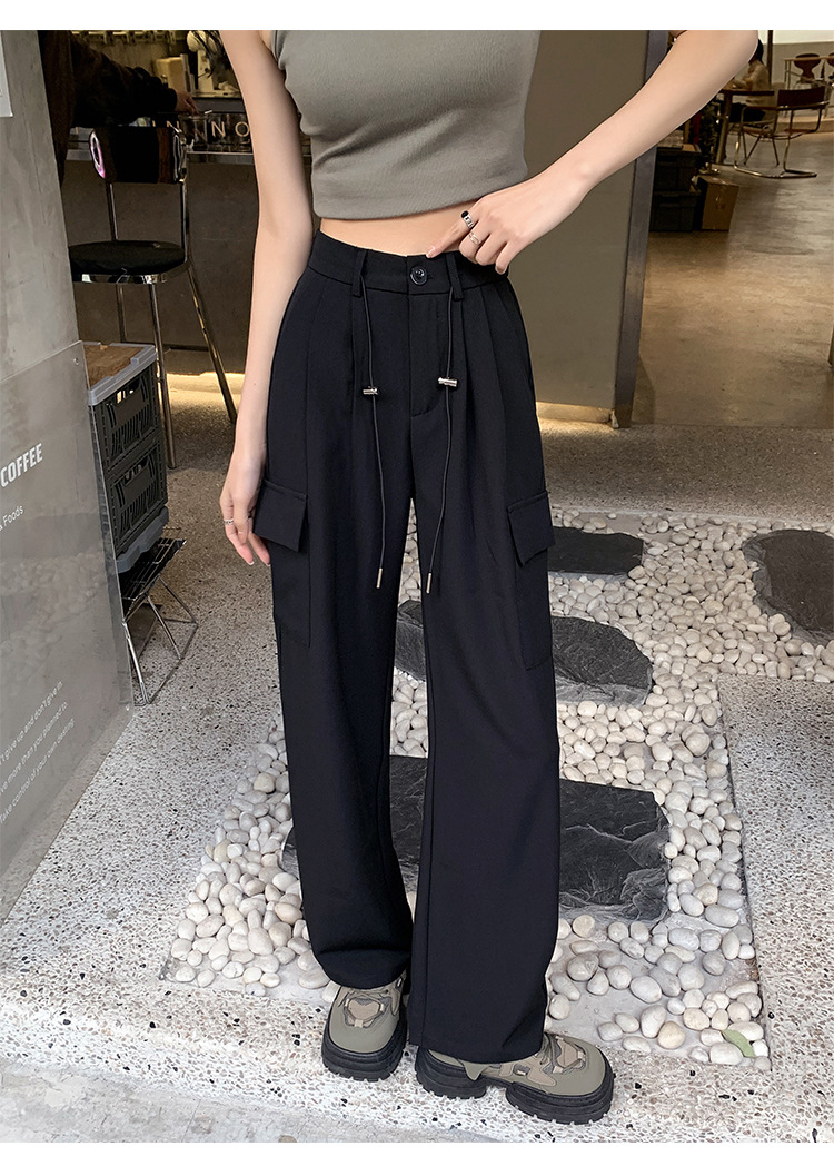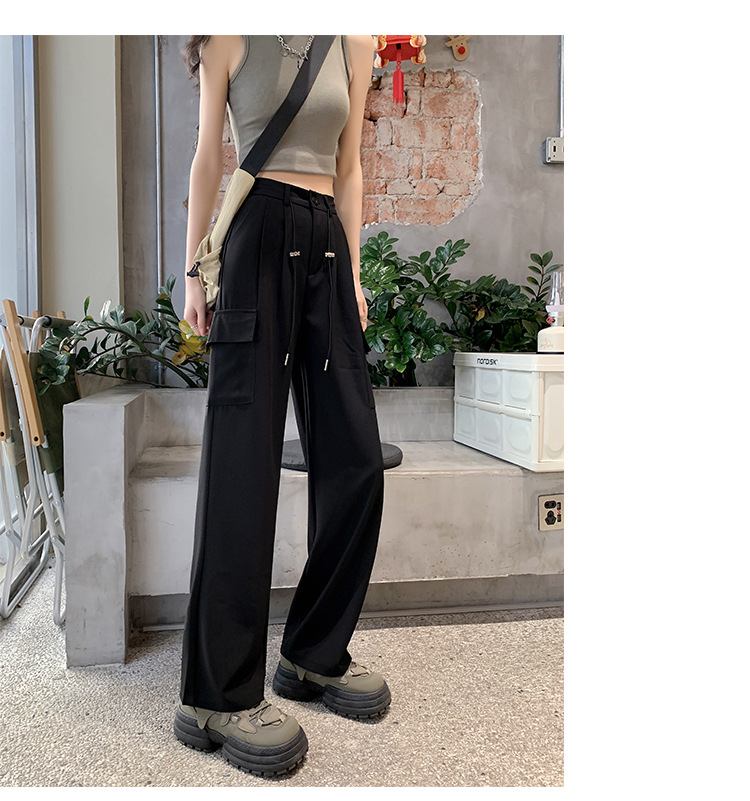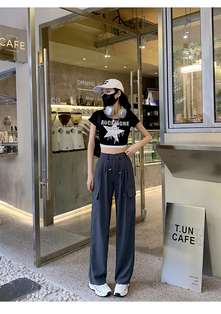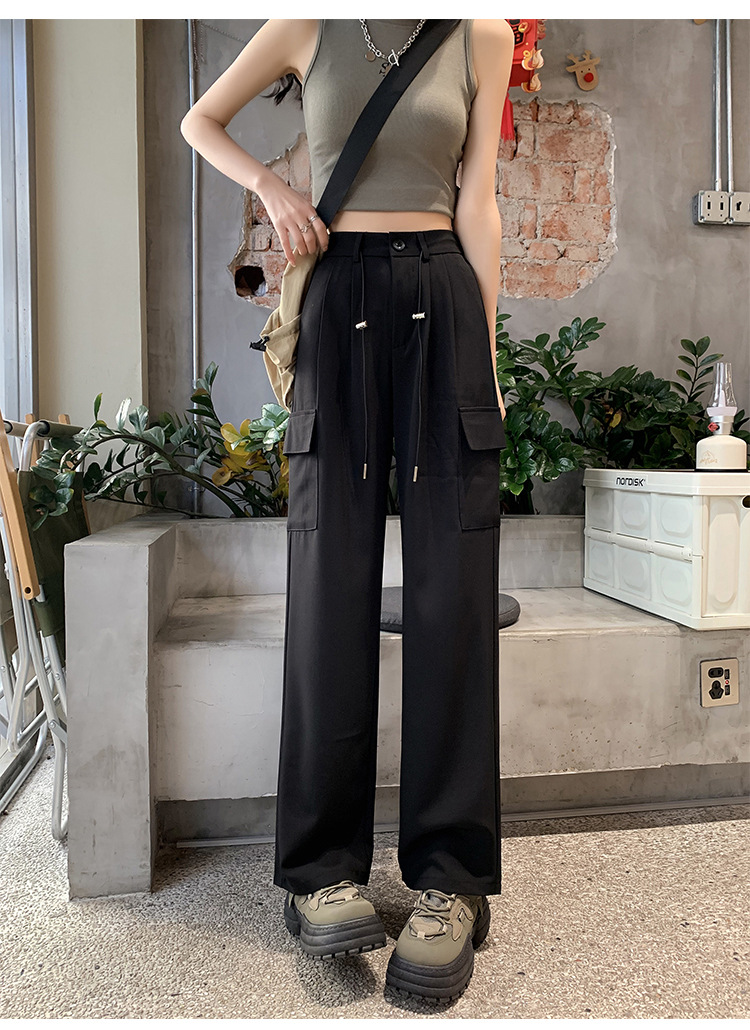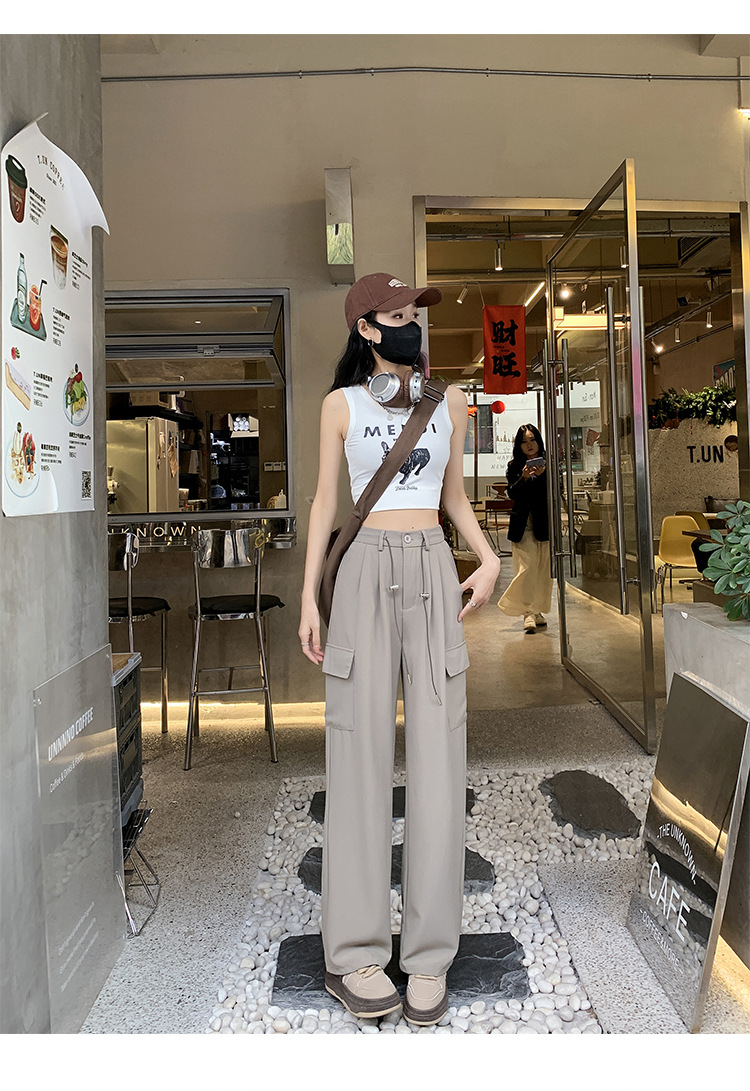 여름에 작은 여성을 위한 아메리칸 스타일 오버올, 속건성, 좁은 스트레이트 팬츠, 신축성 있는 허리 조임끈, 캐주얼한 와이드 레그 하이킹 팬츠스토어 가기