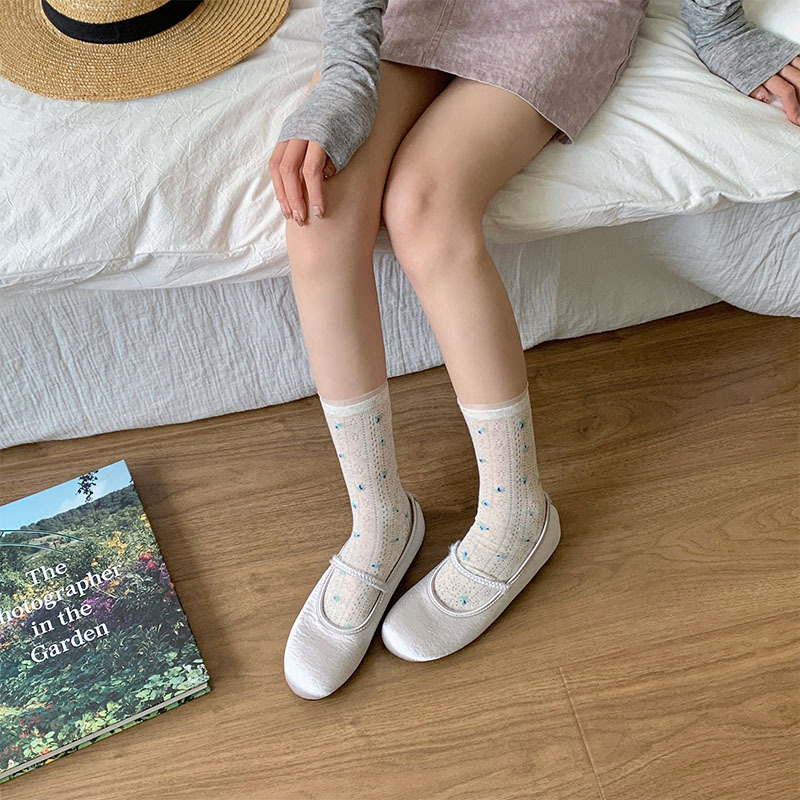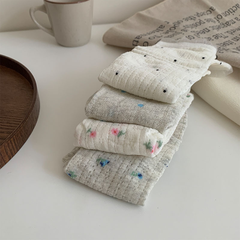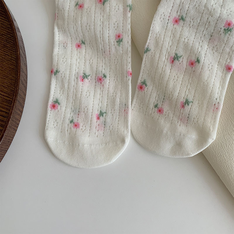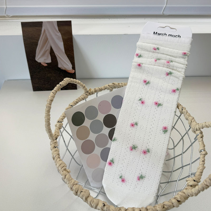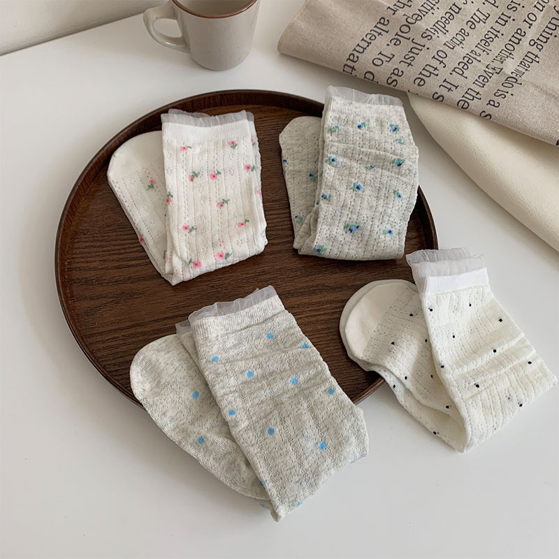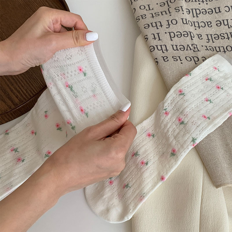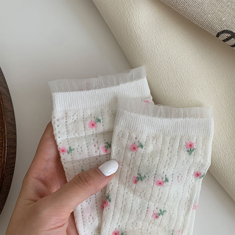 여성을위한 일본 레이스 꽃 양말 봄과 여름 얇은 메쉬 통기성 한국 소녀 다용도 중간 튜브 양말