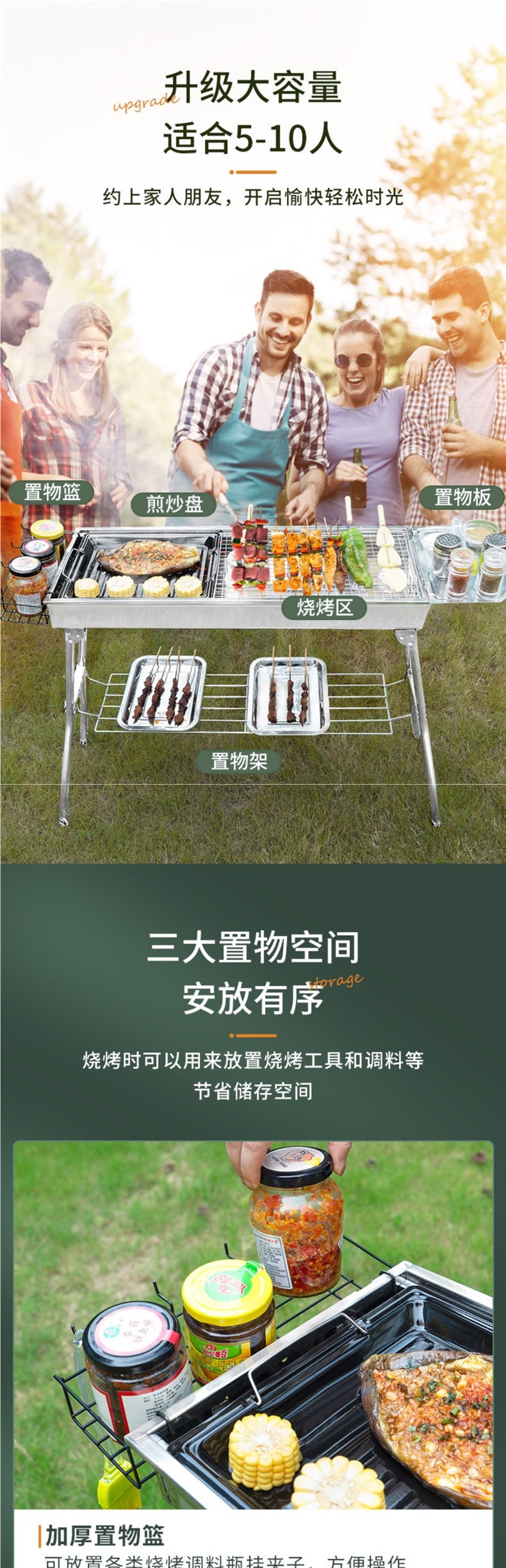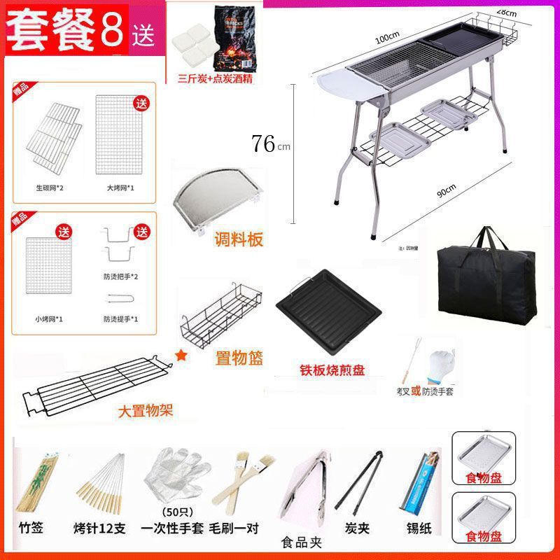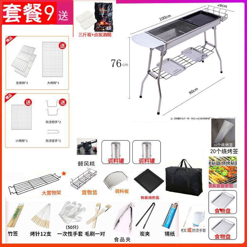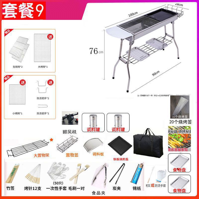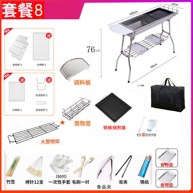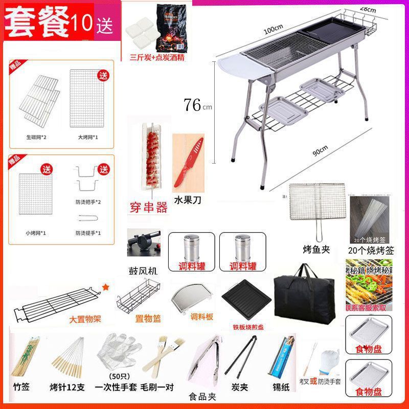 가정용 스테인레스 스틸 그릴 야외 바베큐 그릴 숯 접이식 야외 숯불 그릴 도구 바베큐 그릴 스토브 전체 세트스토어 가기