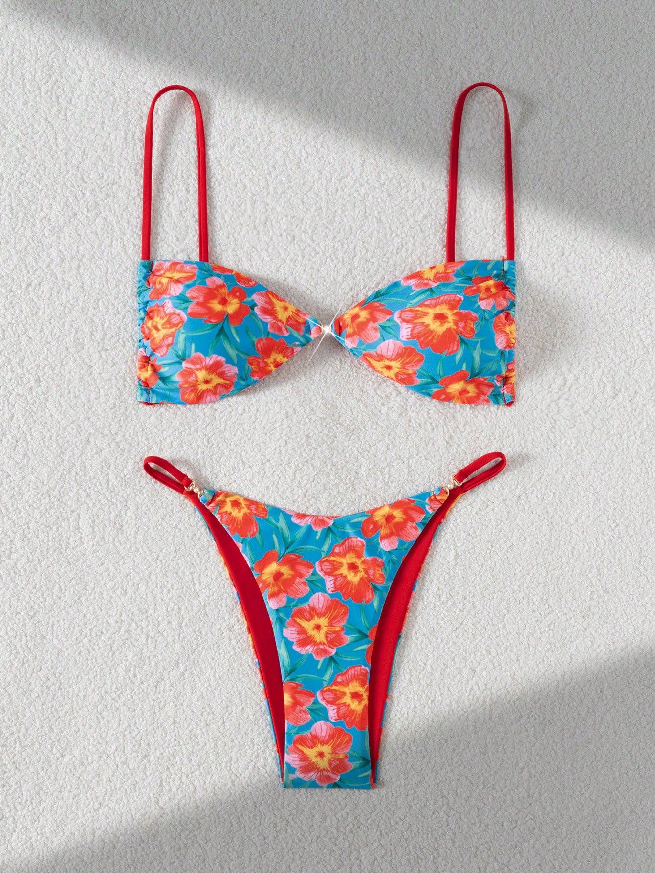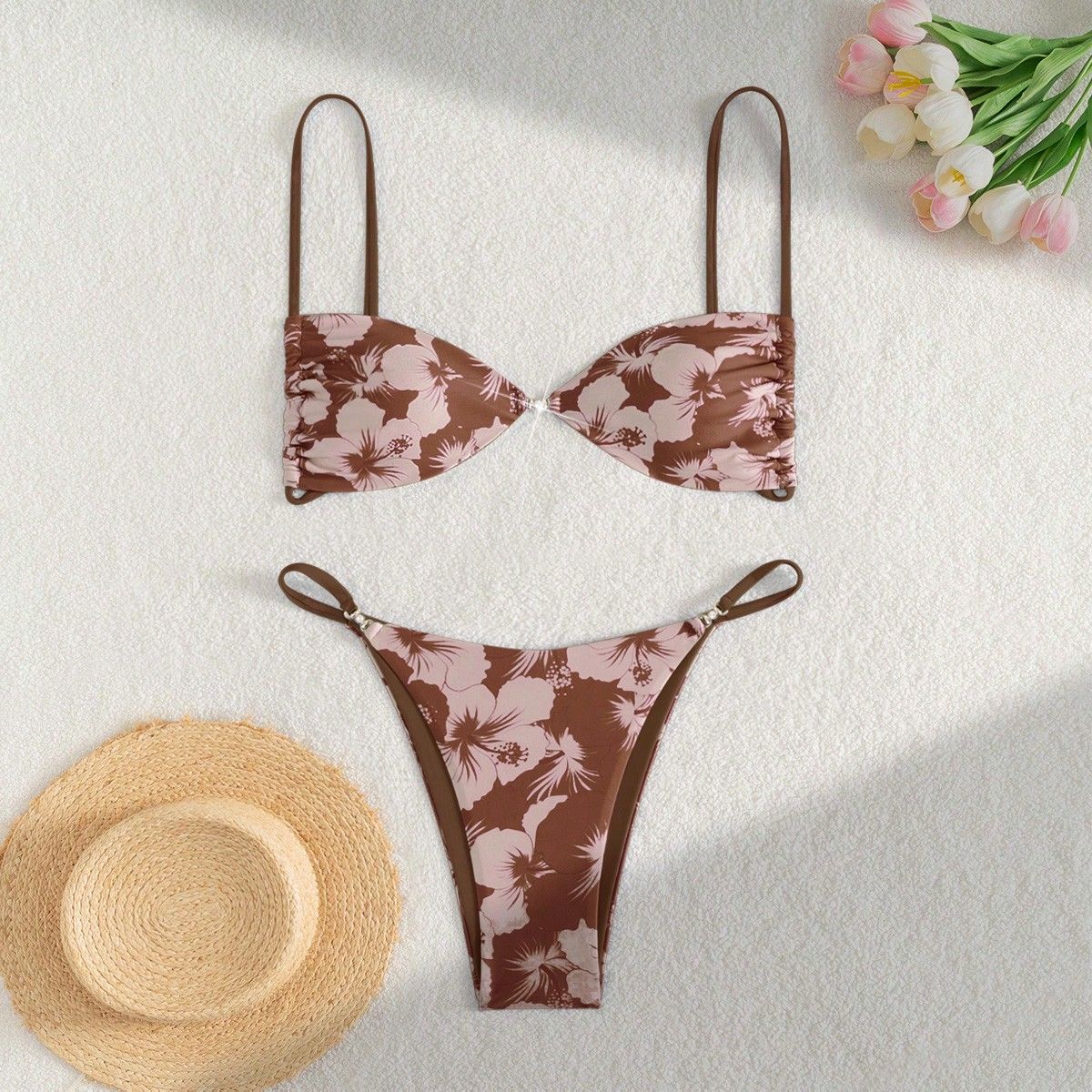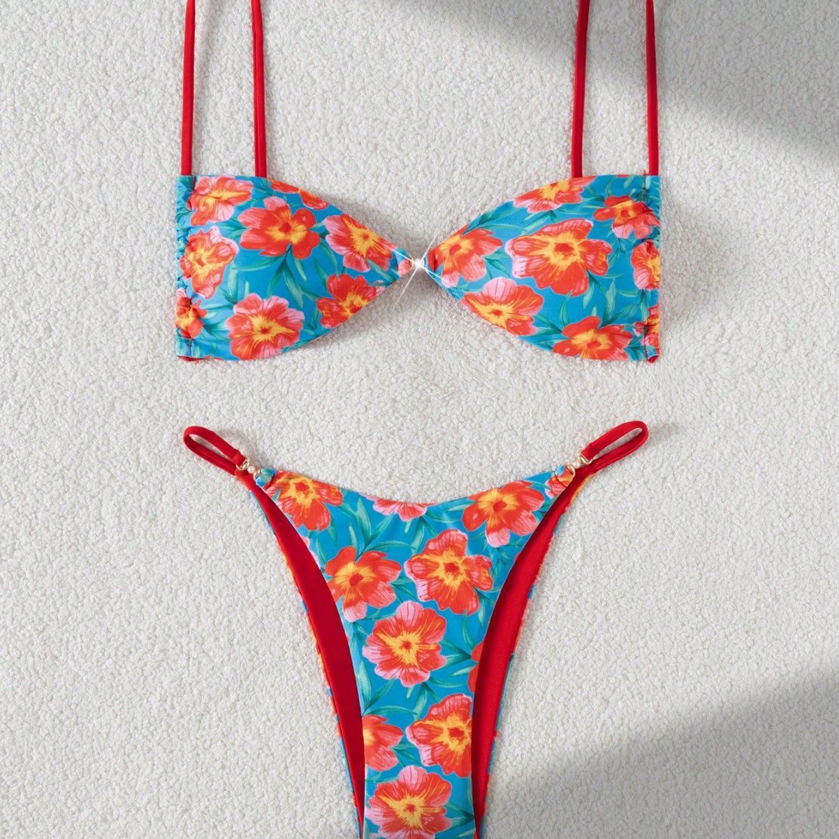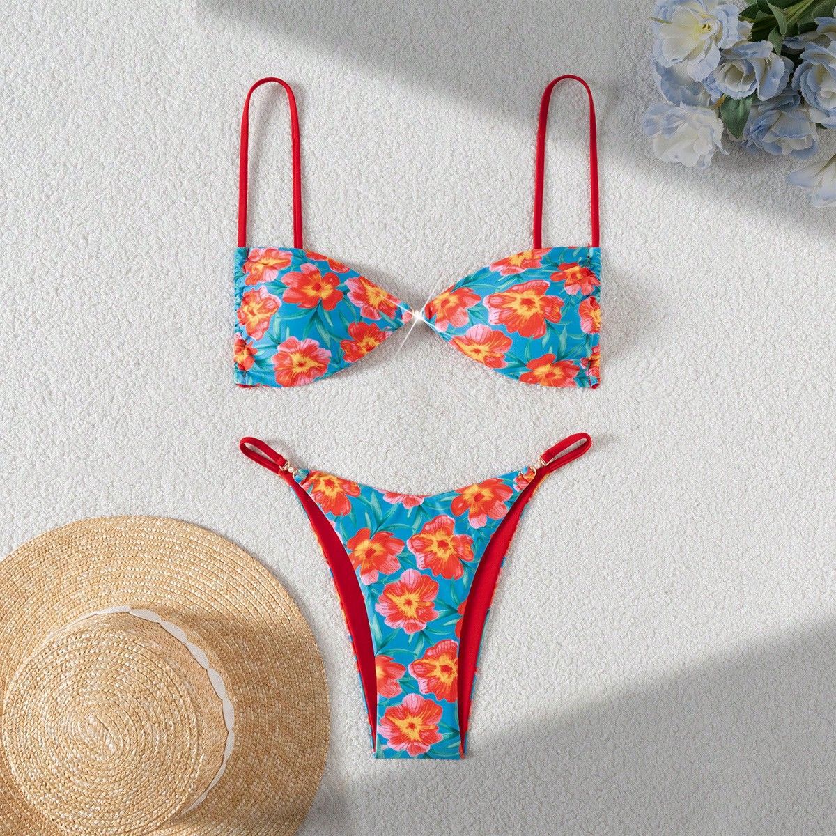 2025 수영복 새로운 꽃 프린트 비키니 유럽과 미국의 섹시한 비키니 여성의 작은 신선한 스플릿 수영복