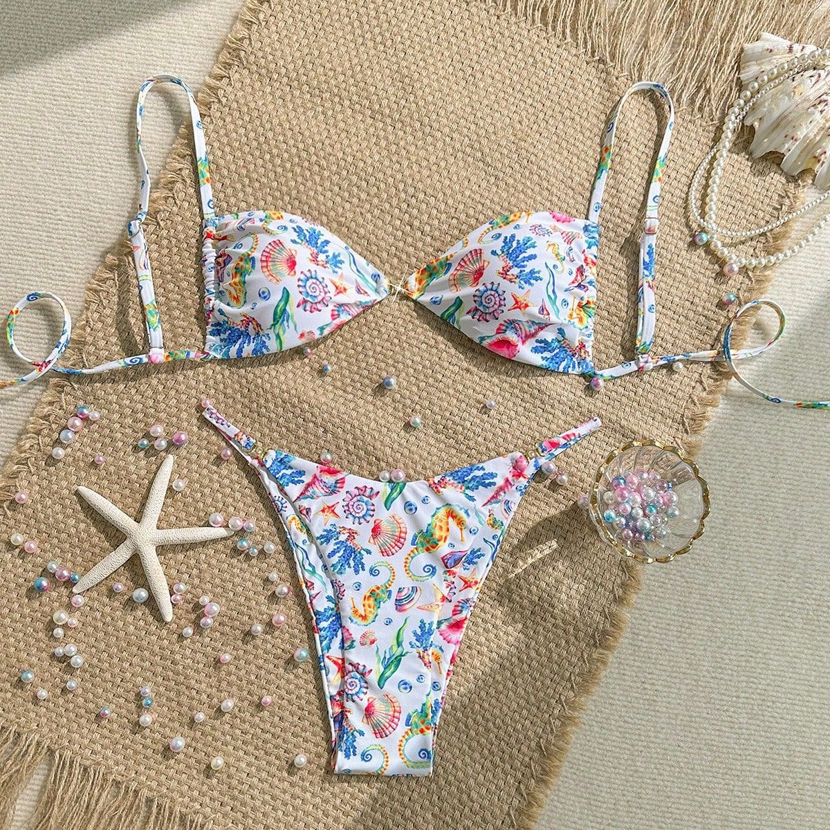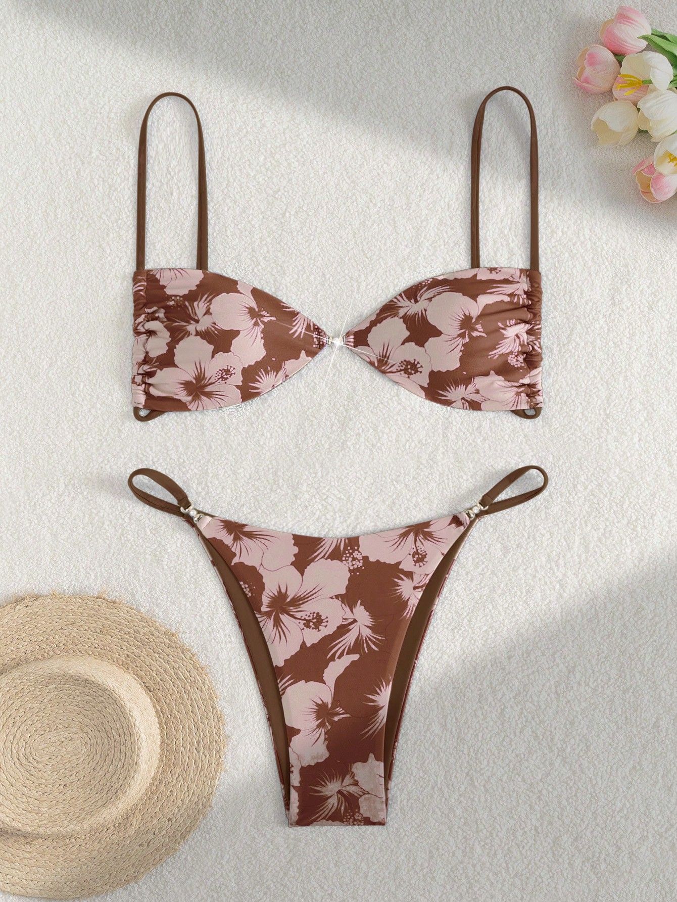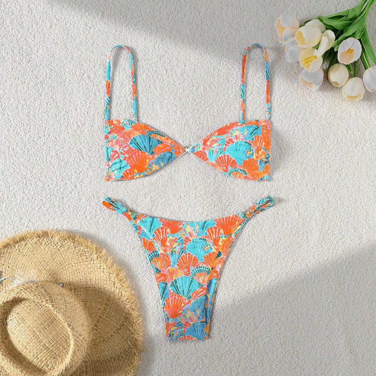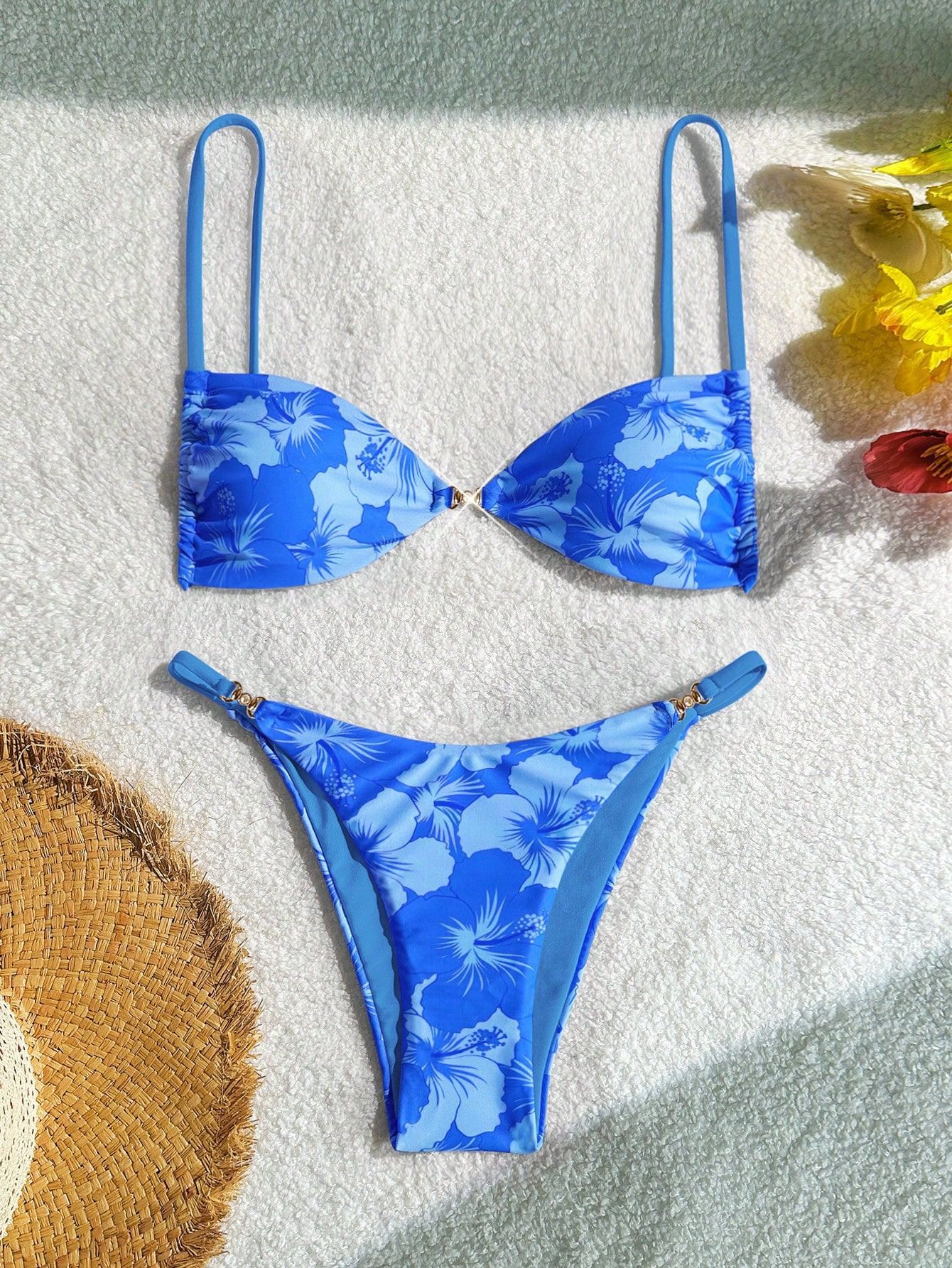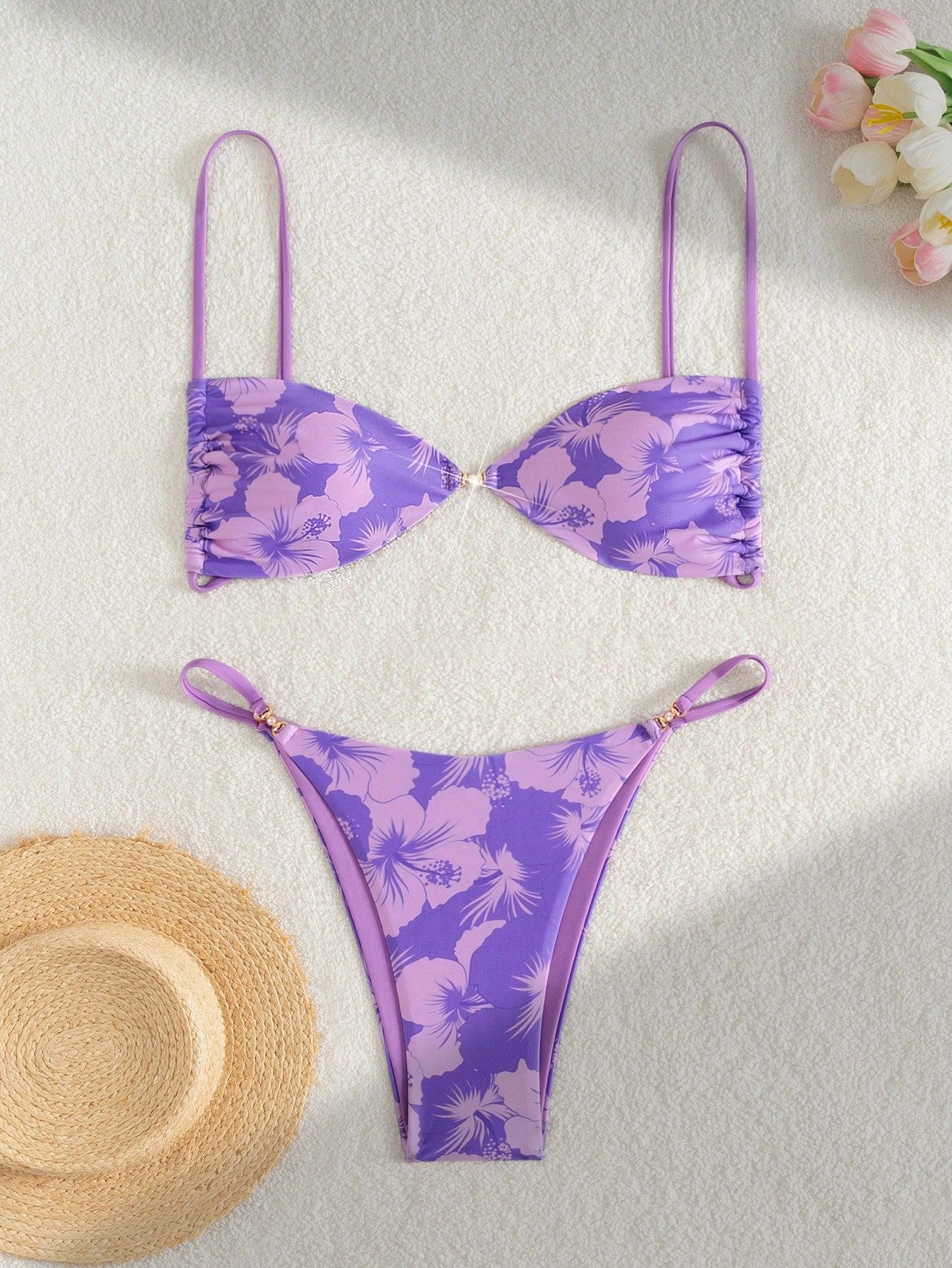 2025 수영복 새로운 꽃 프린트 비키니 유럽과 미국의 섹시한 비키니 여성의 작은 신선한 스플릿 수영복