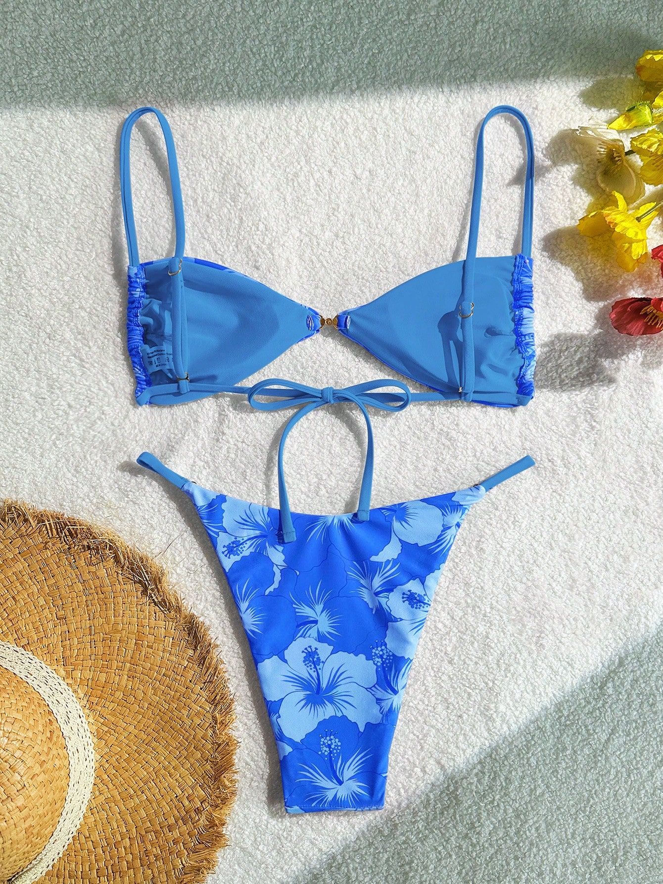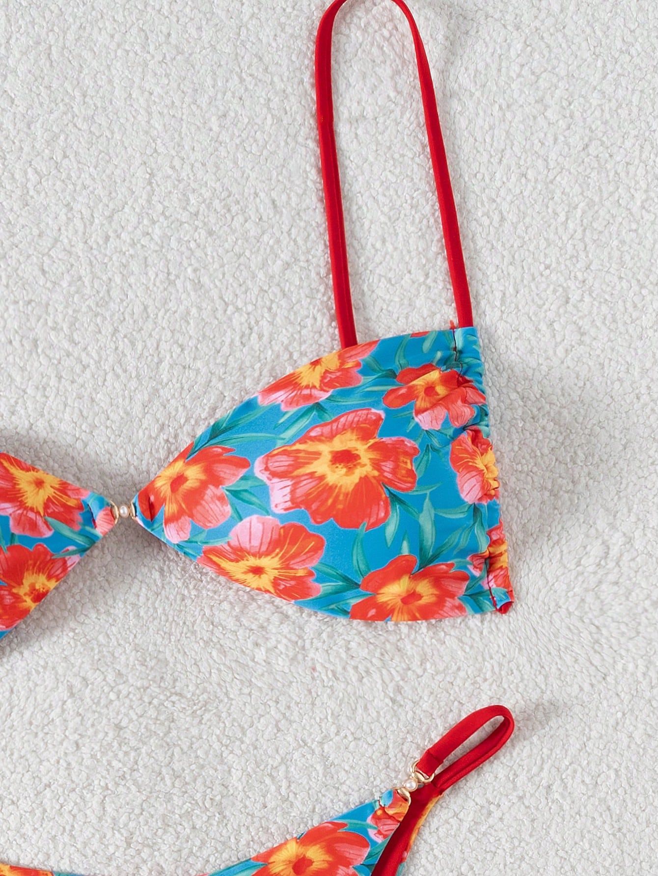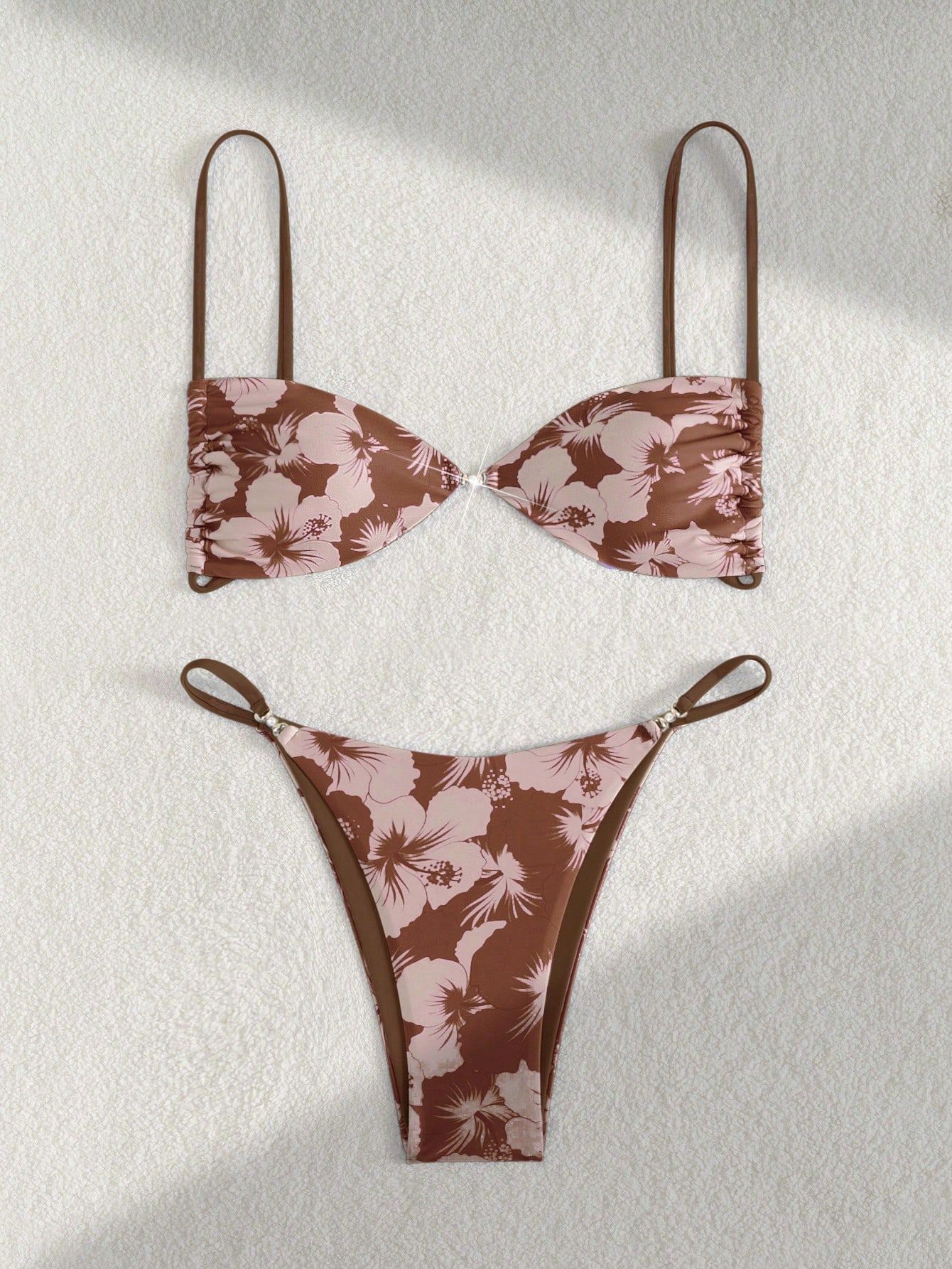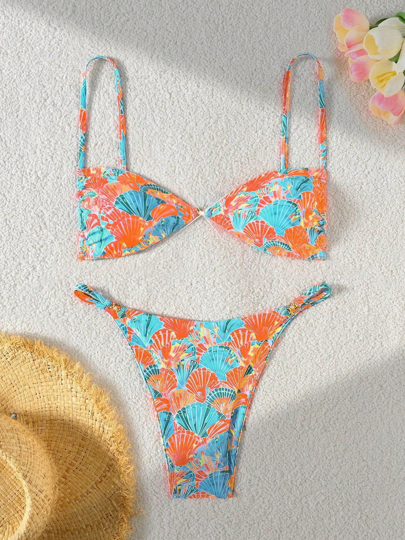 2025 수영복 새로운 꽃 프린트 비키니 유럽과 미국의 섹시한 비키니 여성의 작은 신선한 스플릿 수영복