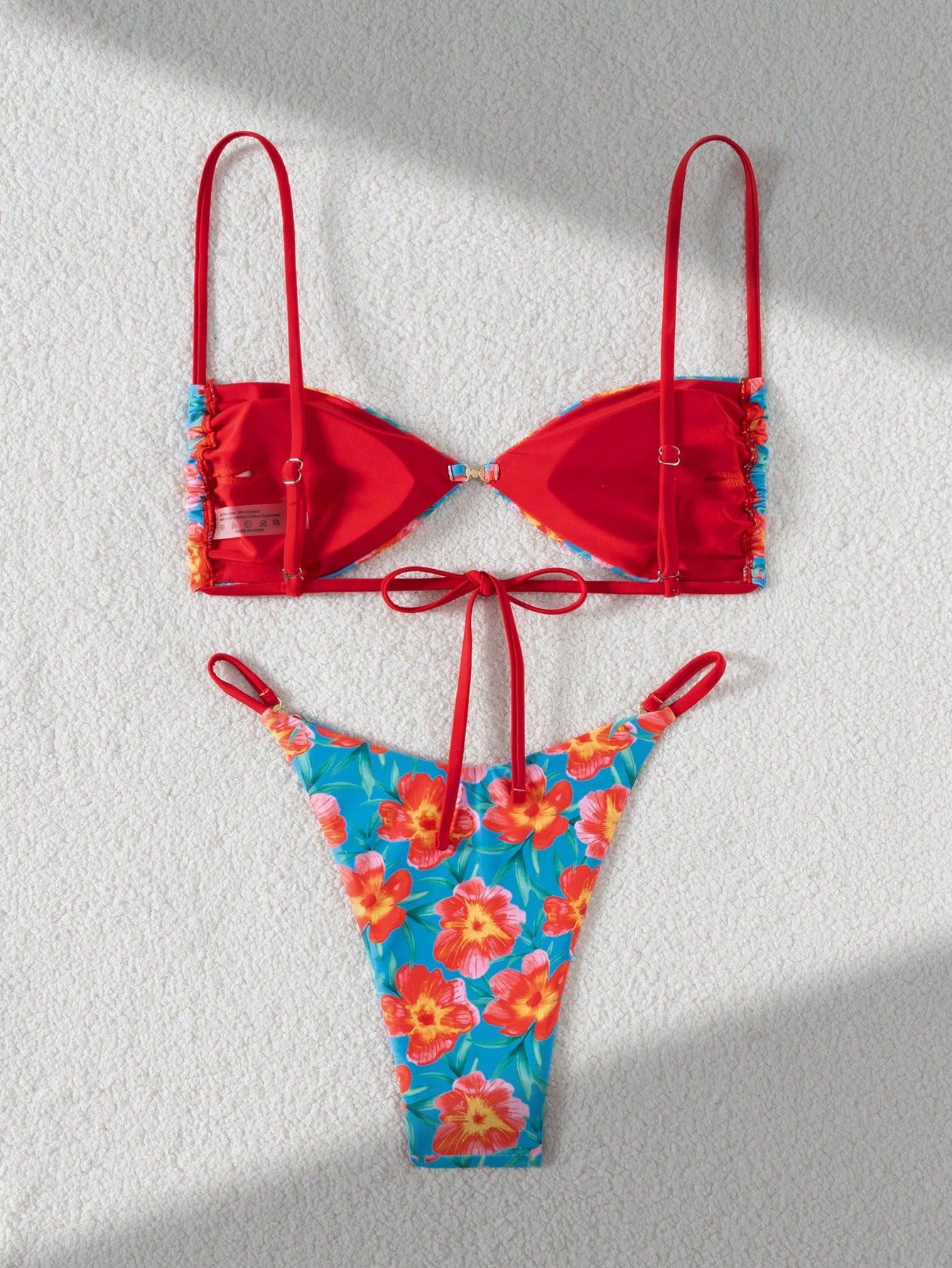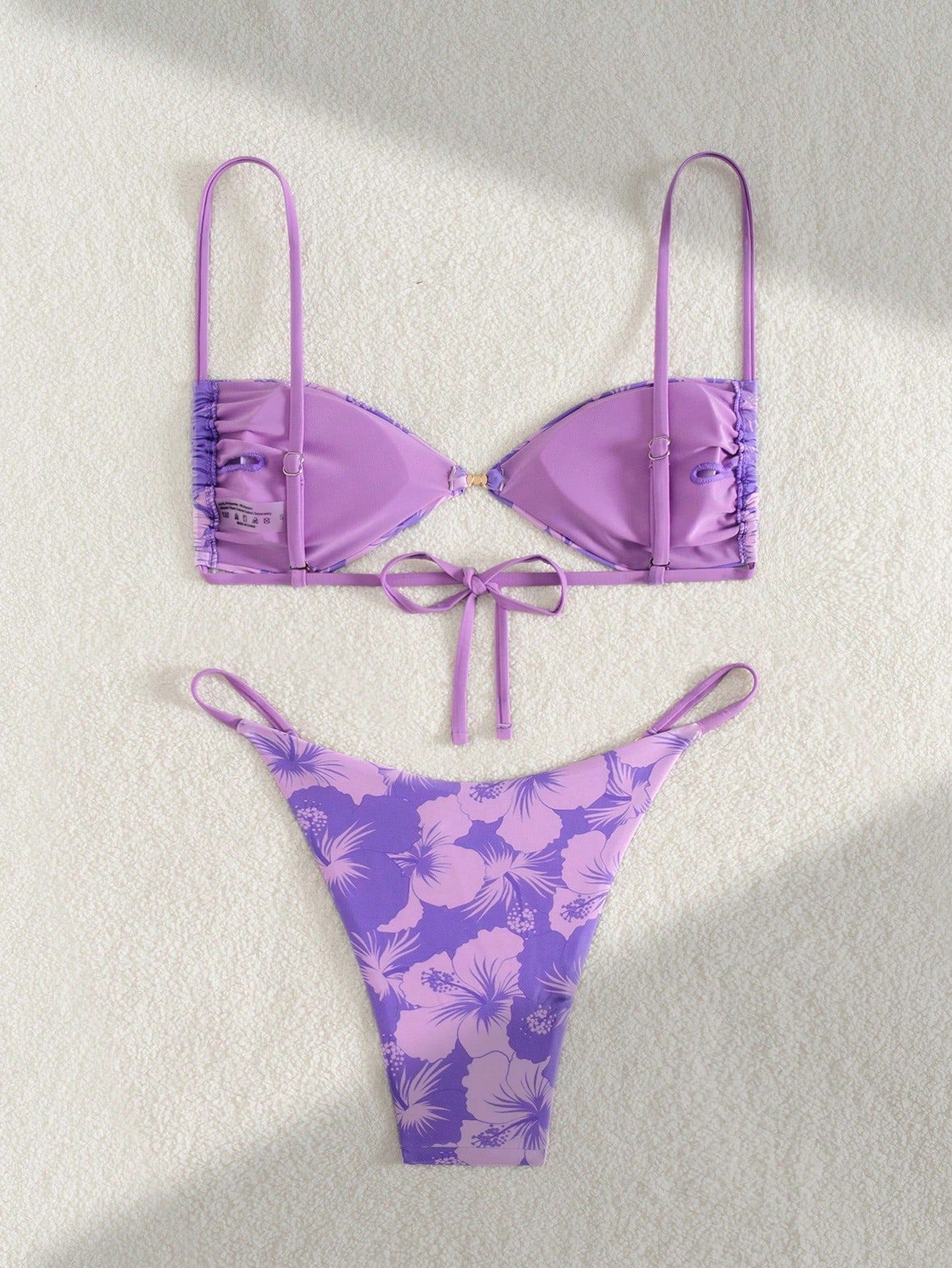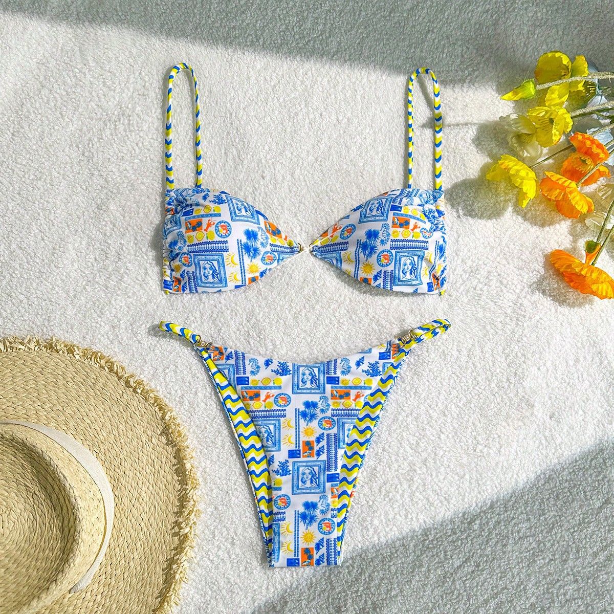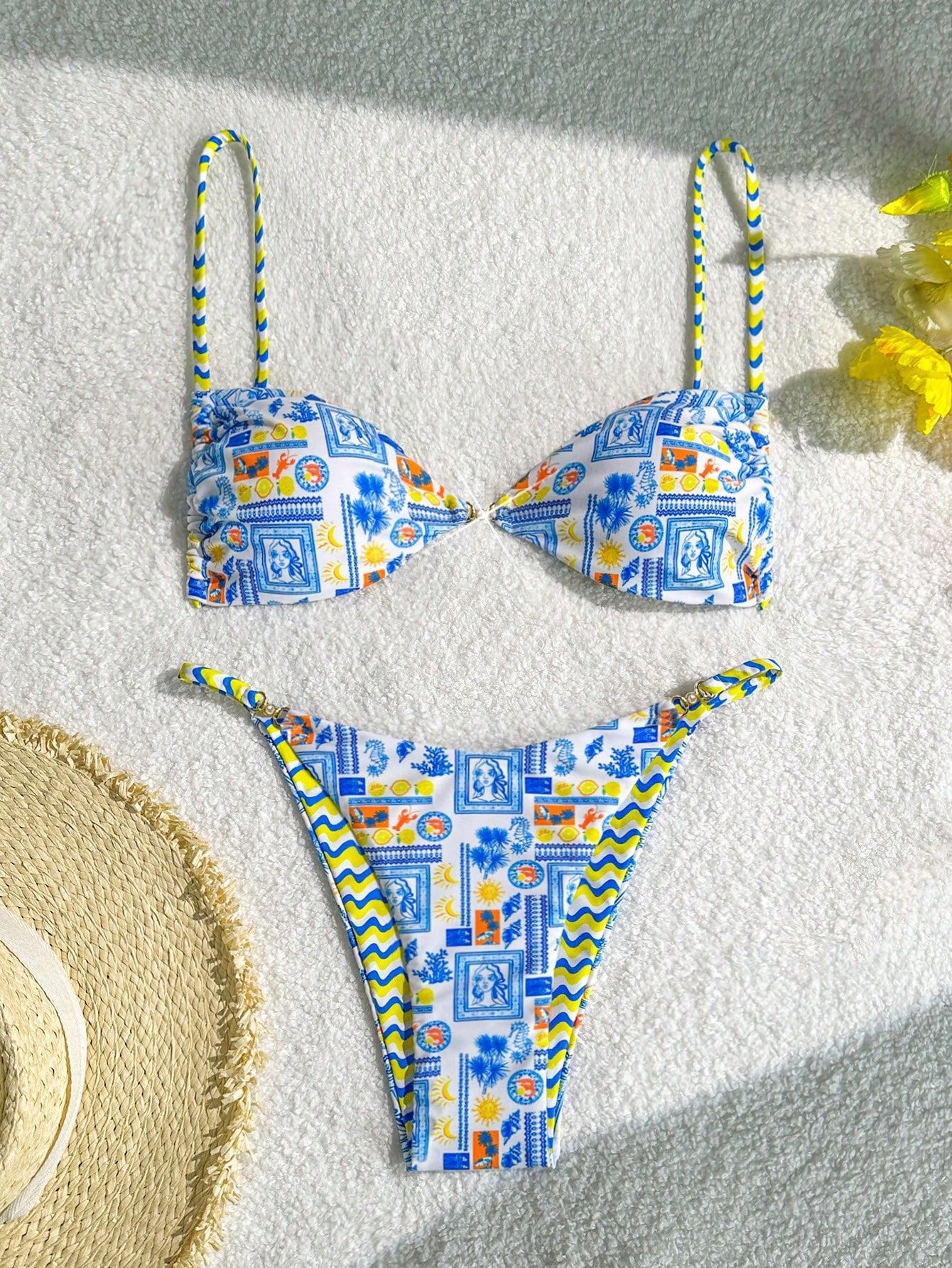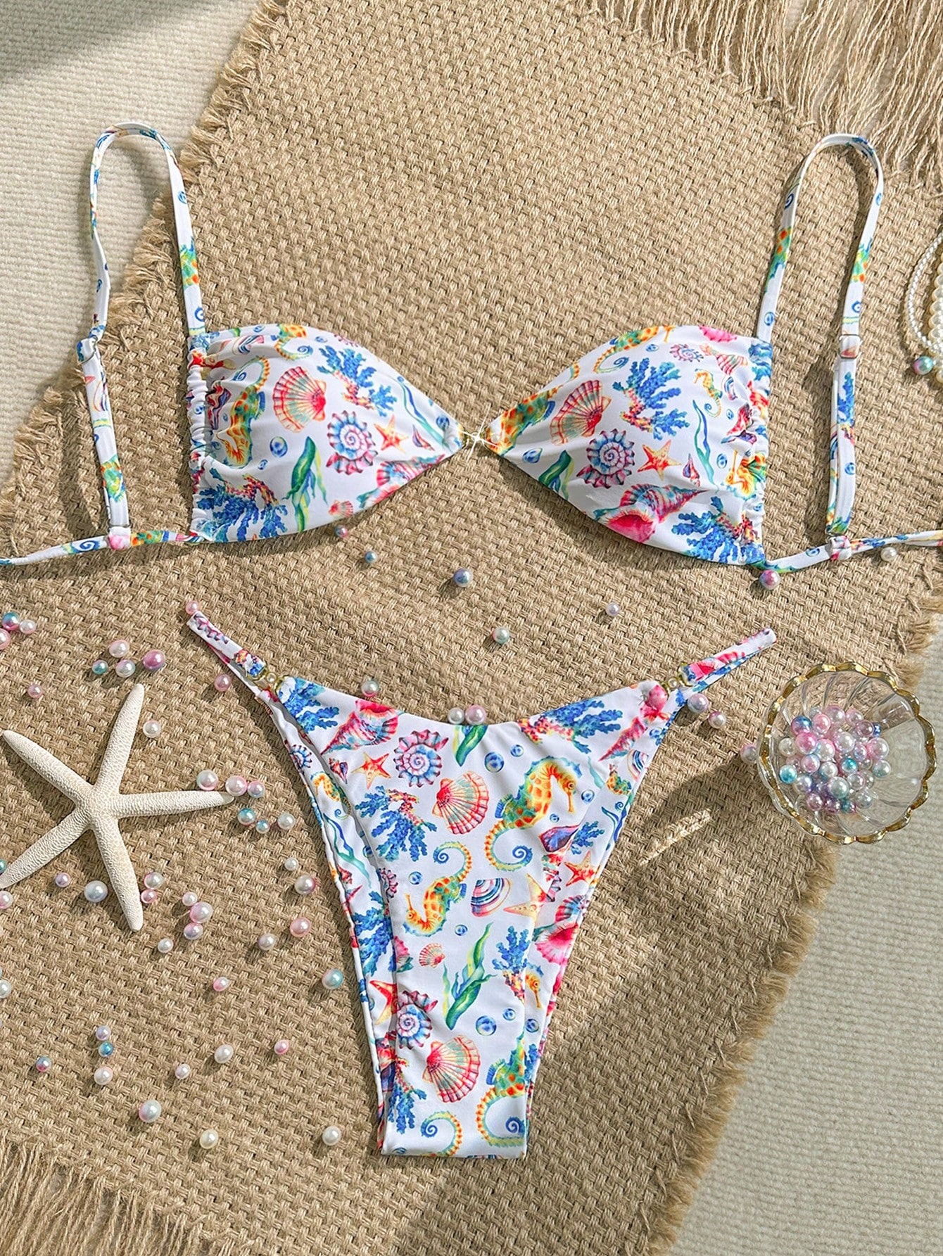 2025 수영복 새로운 꽃 프린트 비키니 유럽과 미국의 섹시한 비키니 여성의 작은 신선한 스플릿 수영복