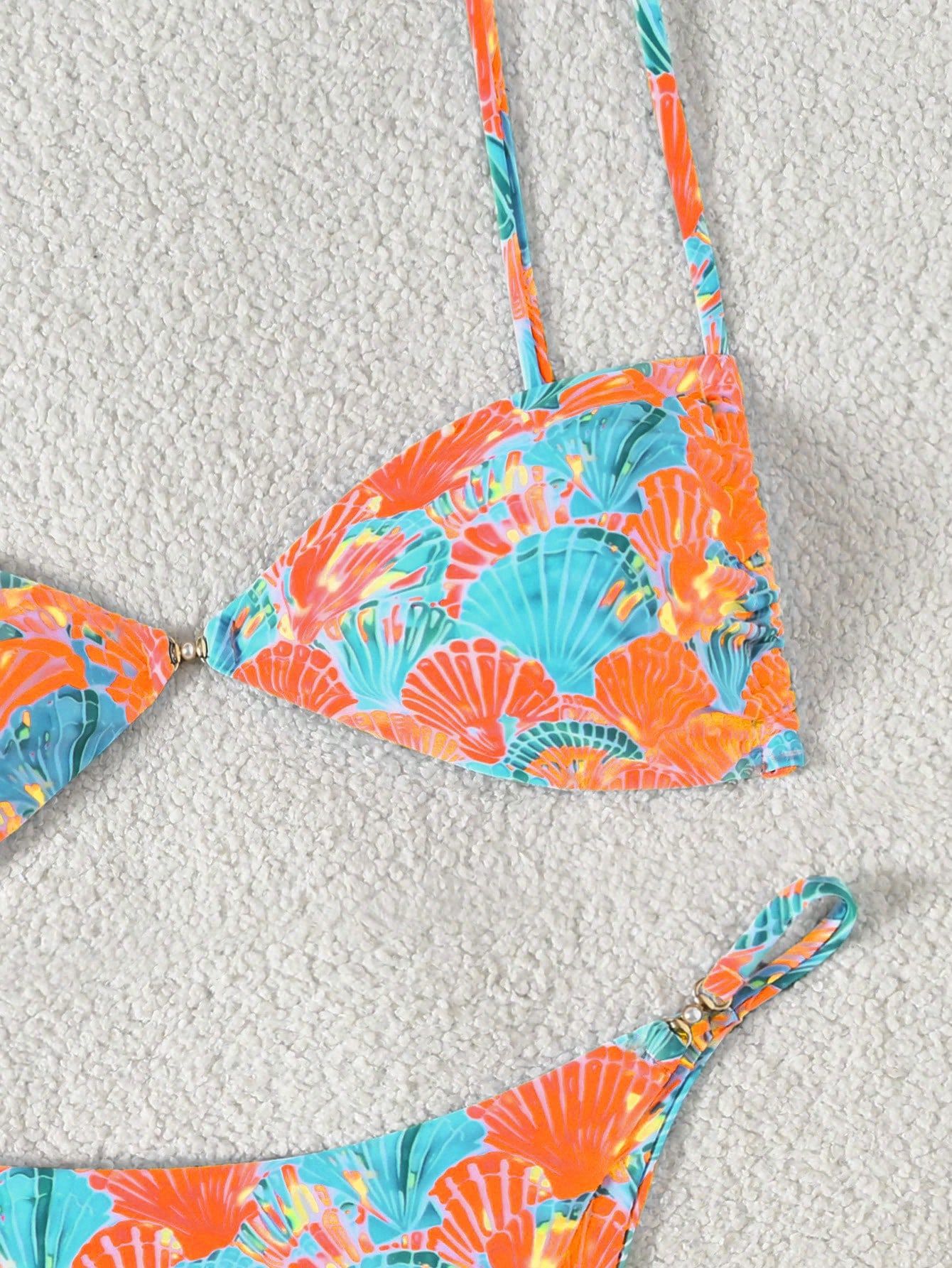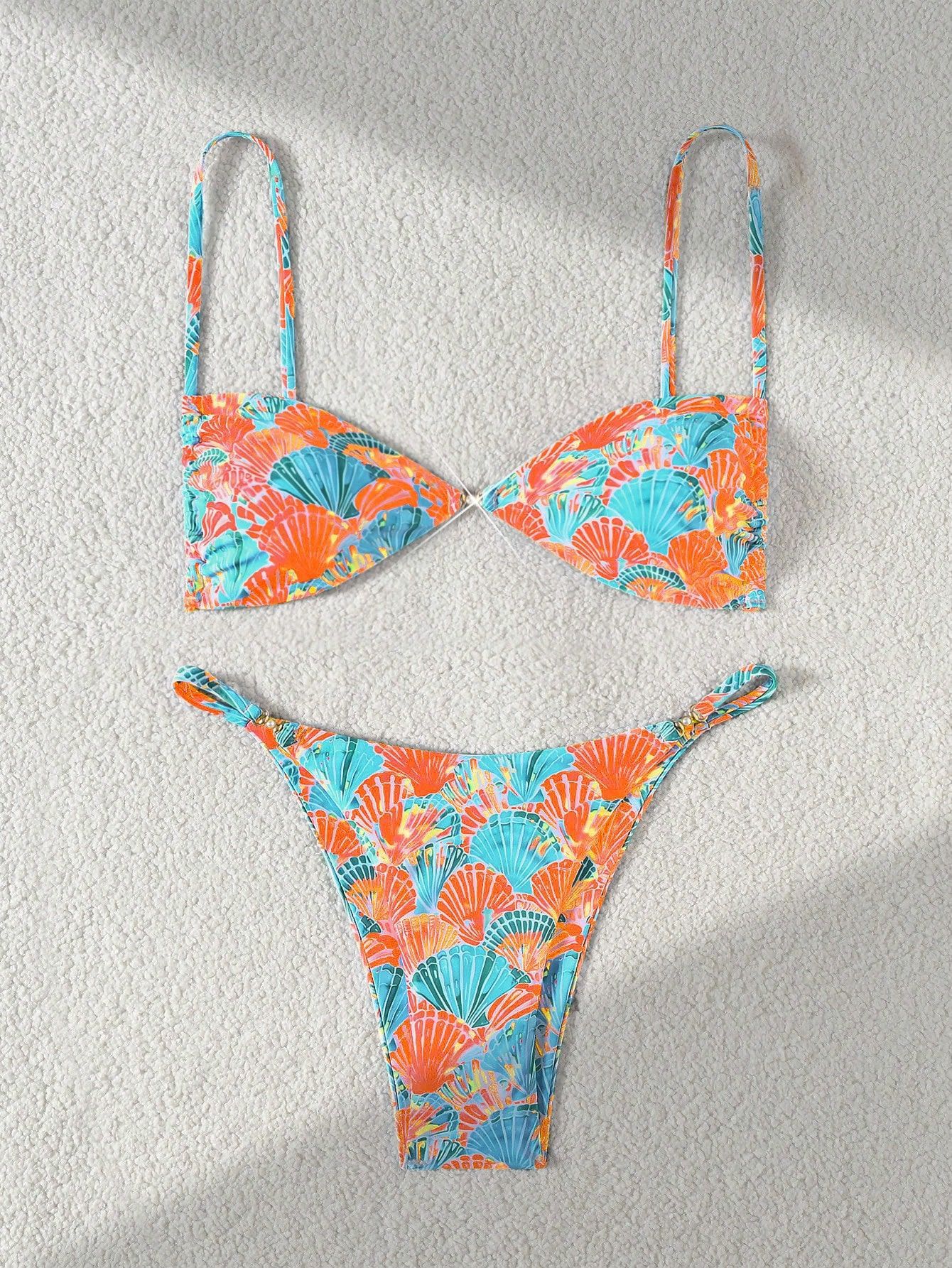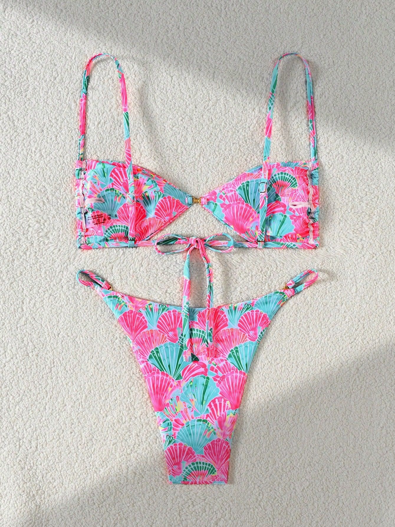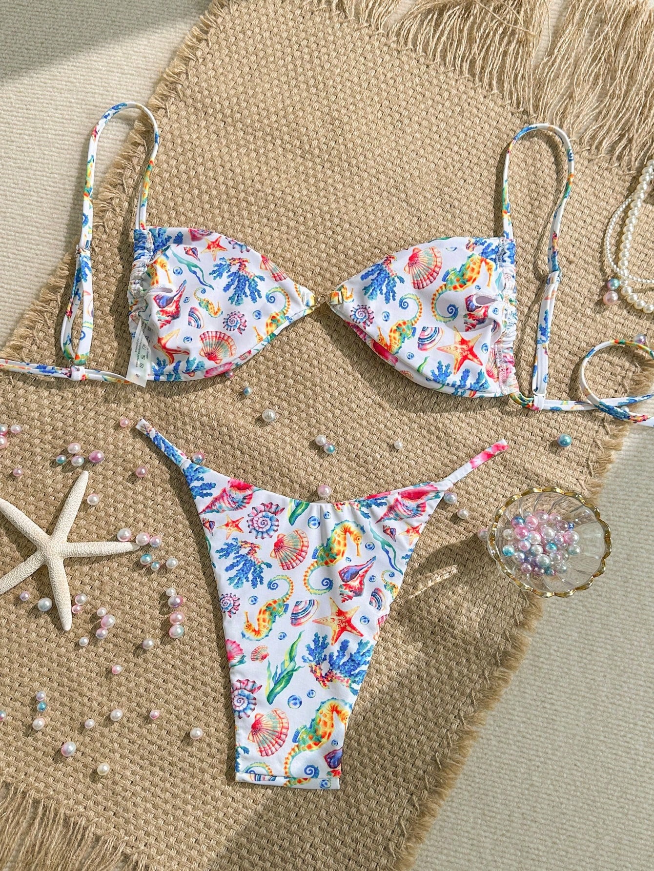 2025 수영복 새로운 꽃 프린트 비키니 유럽과 미국의 섹시한 비키니 여성의 작은 신선한 스플릿 수영복