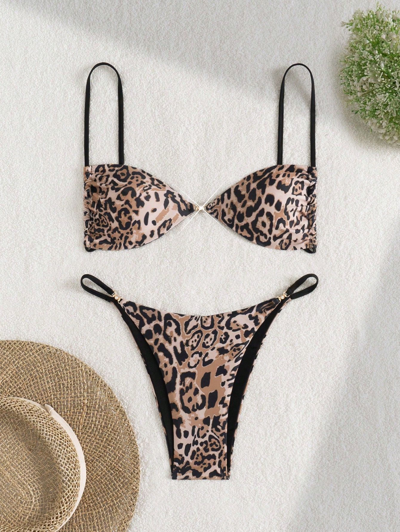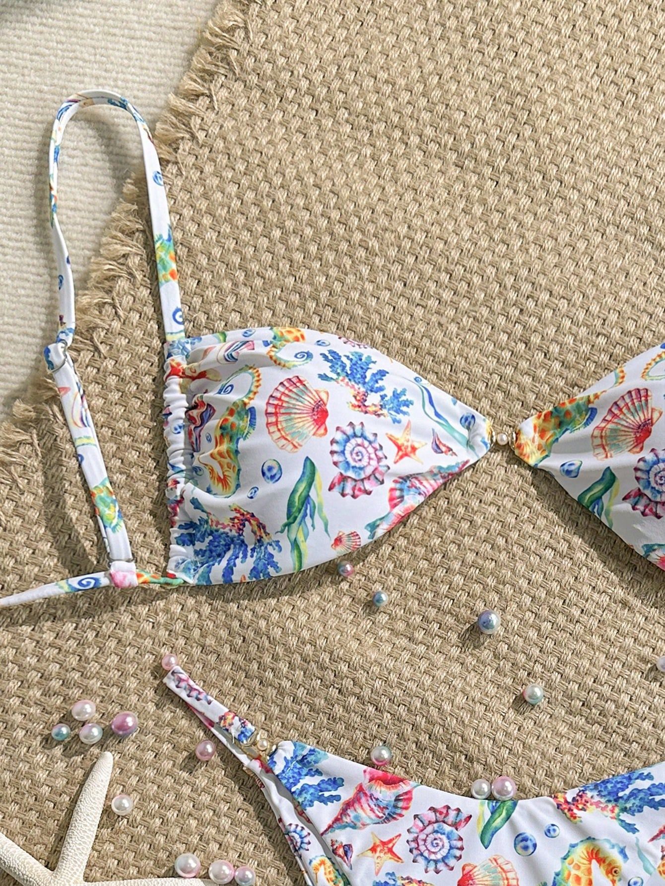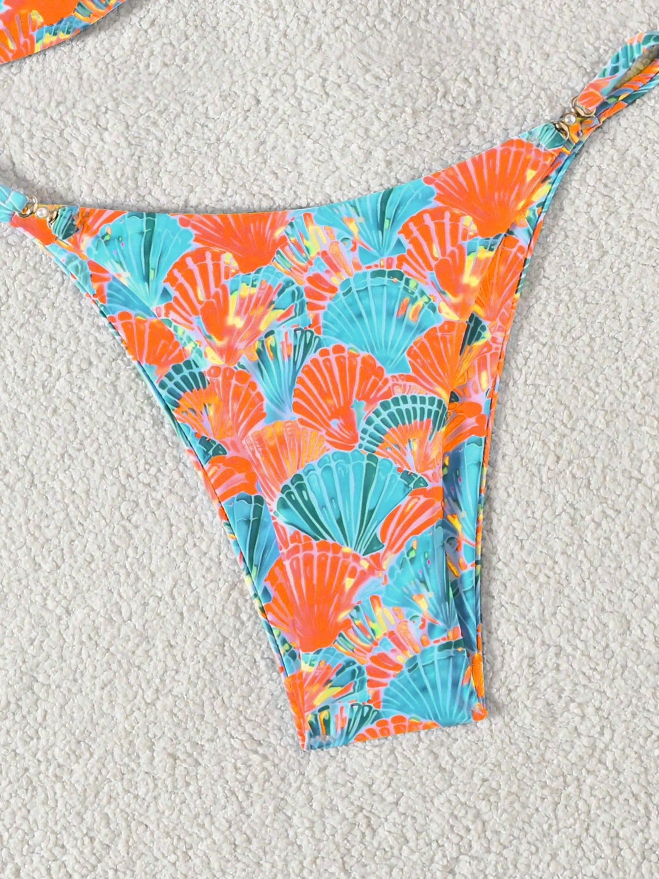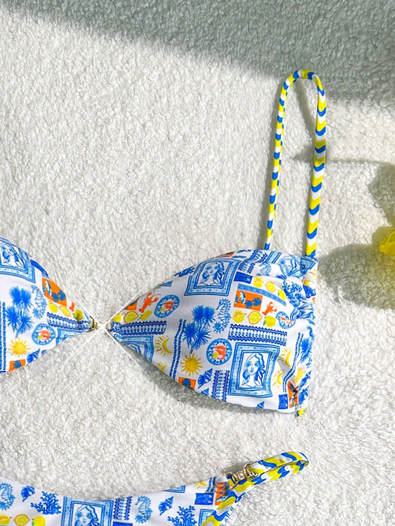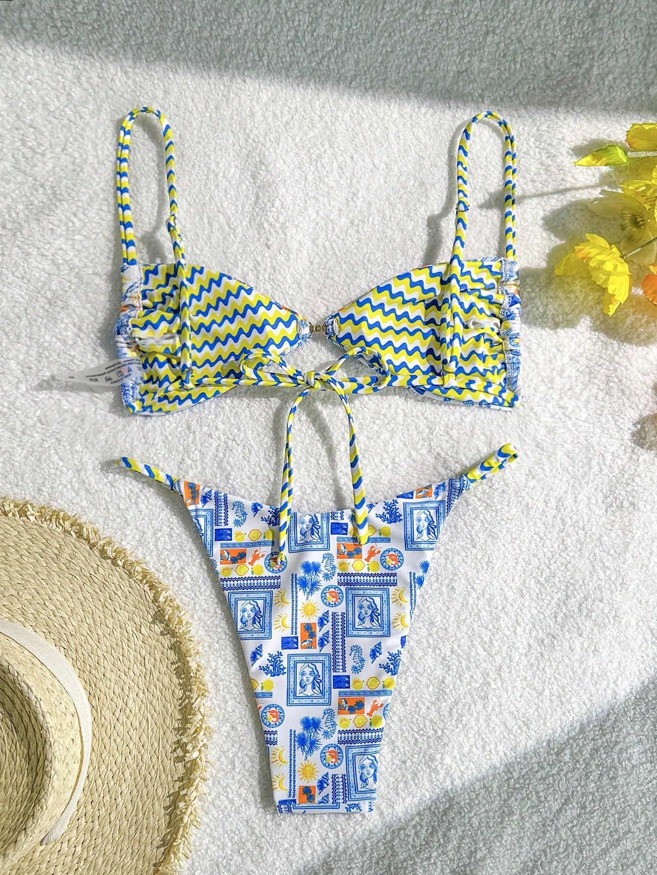2025 수영복 새로운 꽃 프린트 비키니 유럽과 미국의 섹시한 비키니 여성의 작은 신선한 스플릿 수영복