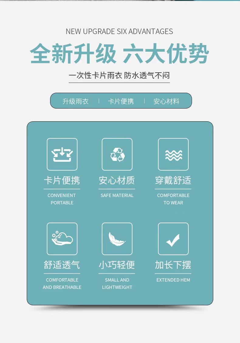 일회용 카드형 우비 롱스타일 전신 압축 어린이 성인 방폭 방수 레인코트 만화 그라데이션