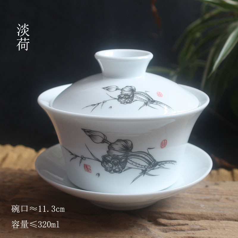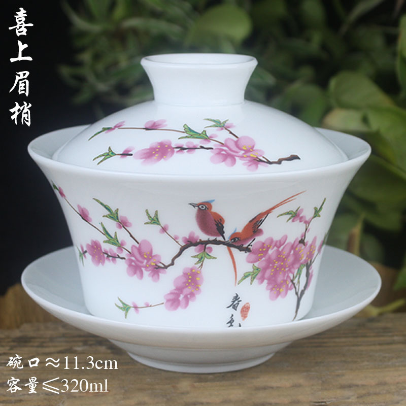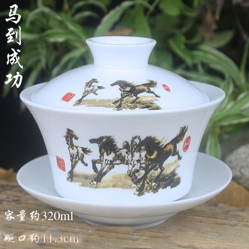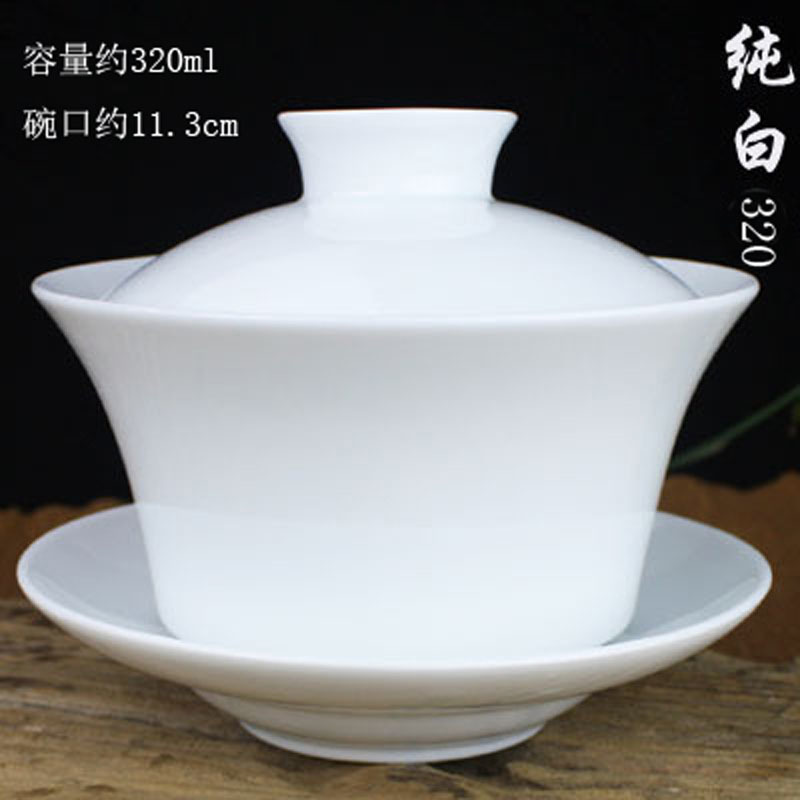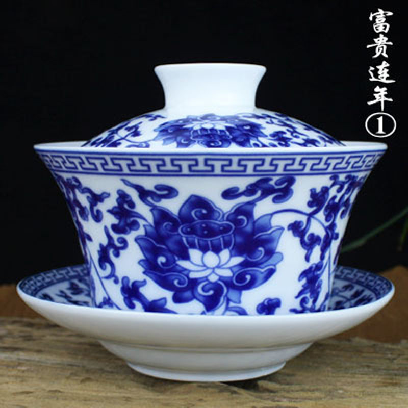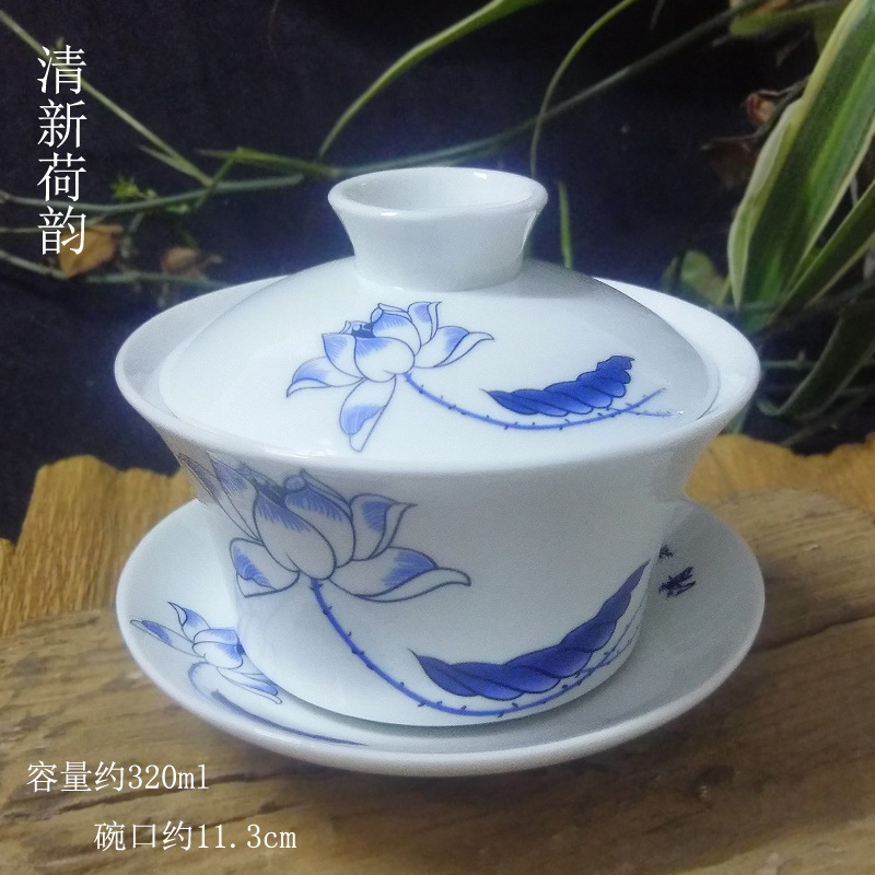 Sancai 그릇 뚜껑 그릇 단일 찻잔 차 세트 초대형 차 Dehua 세라믹 백자 파란색과 흰색 팔 보물 300ml스토어 가기