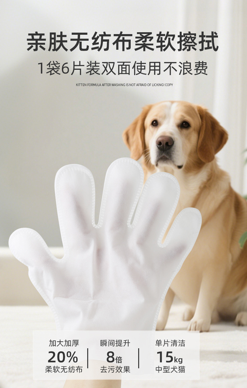 고양이와 강아지를 위한 애완동물 일회용 장갑, 청소, 탈취, 목욕이 필요 없는 청소 장갑, 향이 좋은 향기로운 향기, 편리함, 6개