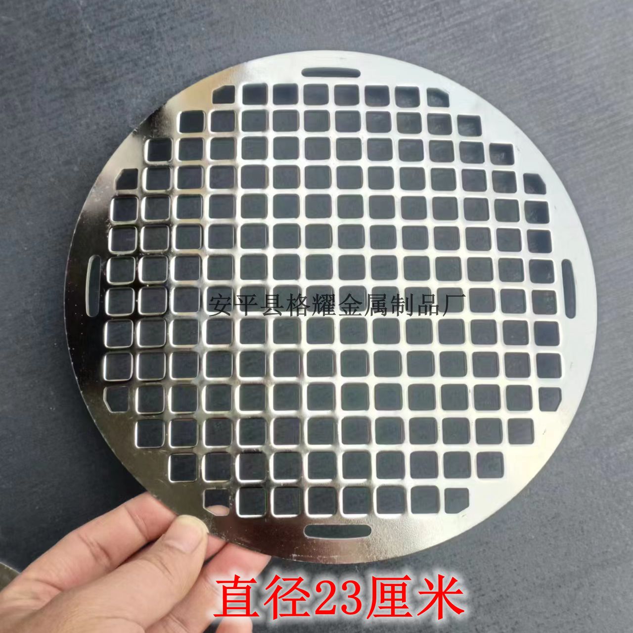 • 실버 304 스테인레스 스틸 직경 23cm 사각형 구멍 표준 두께 2.5mm