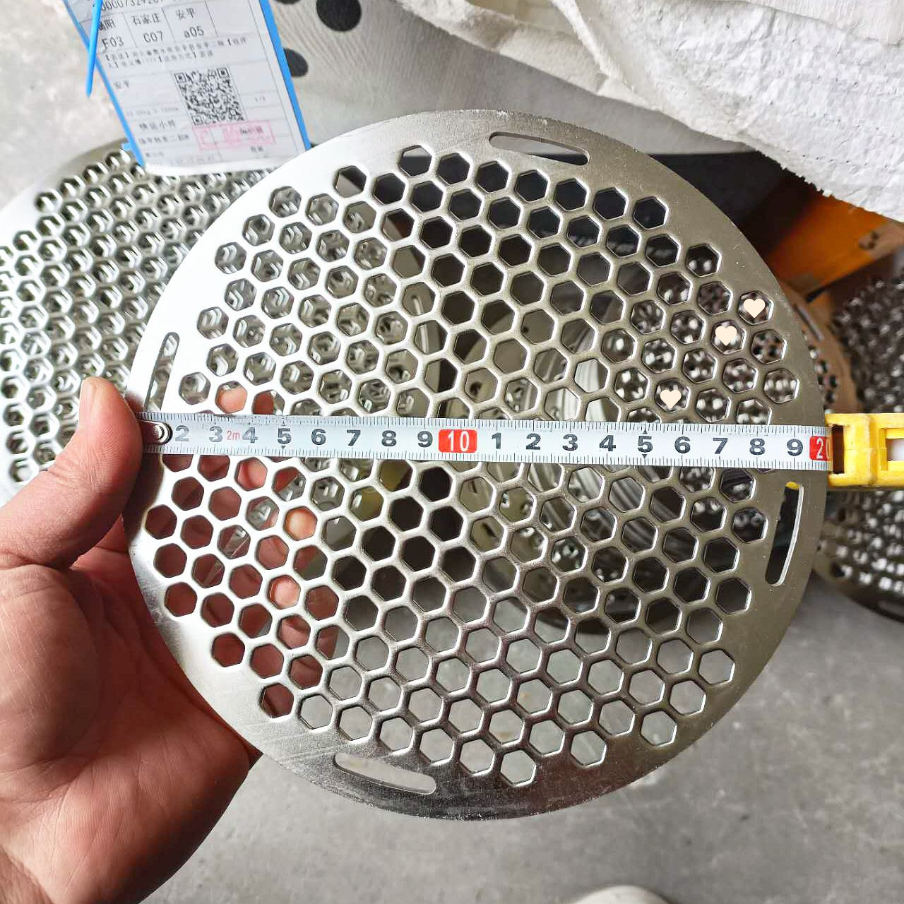 • 실버 304 스테인레스 스틸 직경 50cm 육각 구멍 표준 두께 2.5mm
