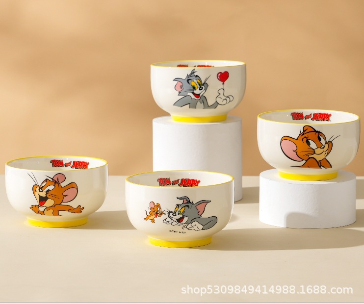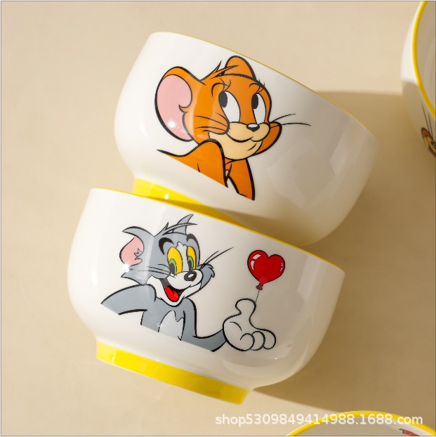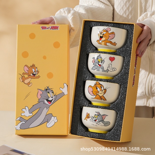 만화 맞춤형 고양이와 마우스 매일 손으로 선물 귀여운 신선한 세라믹 가족 4 조합 그릇 선물 상자스토어 가기