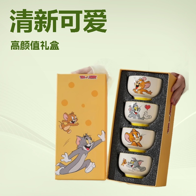 만화 맞춤형 고양이와 마우스 매일 손으로 선물 귀여운 신선한 세라믹 가족 4 조합 그릇 선물 상자