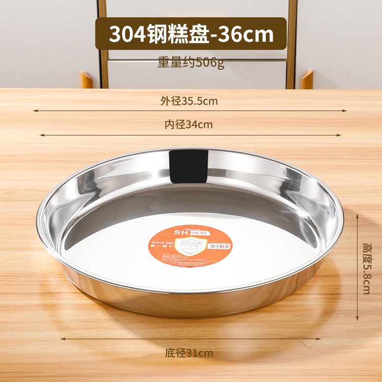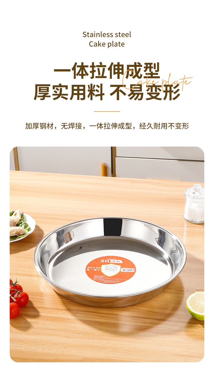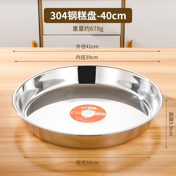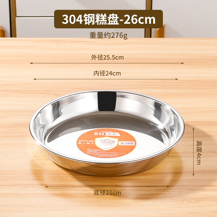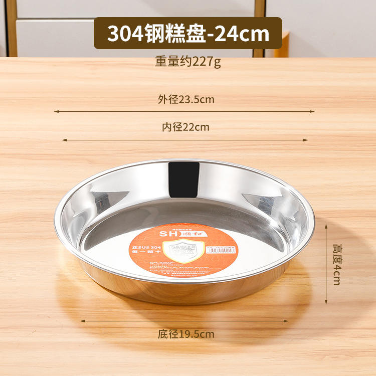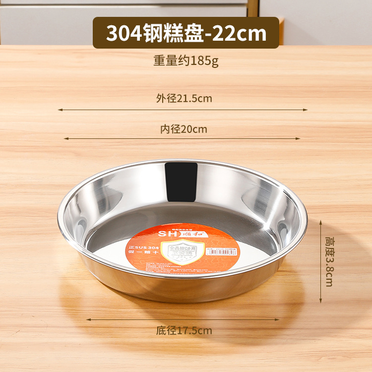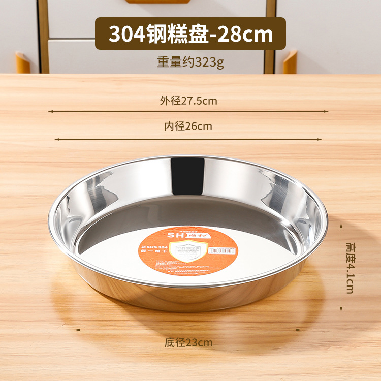 도매 304 스테인레스 스틸 케이크 접시, 냉면 접시, 냉면 고기 젤리 접시, 평평한 바닥 찜 야채 접시, 가정용 원형 케이크 접시스토어 가기
