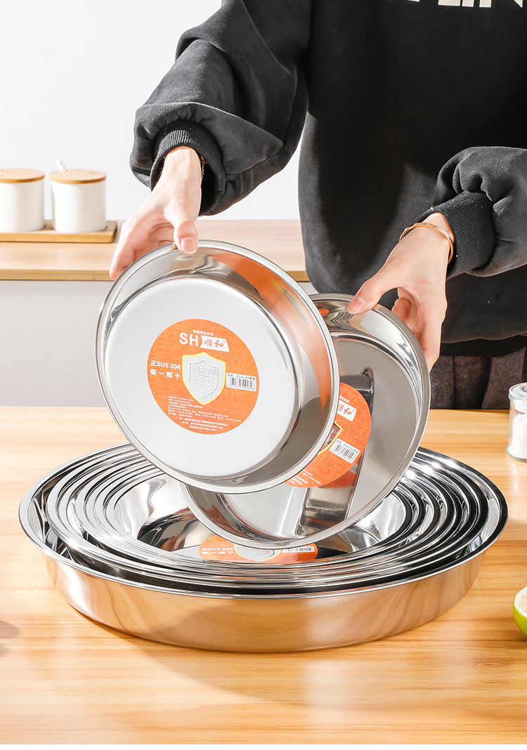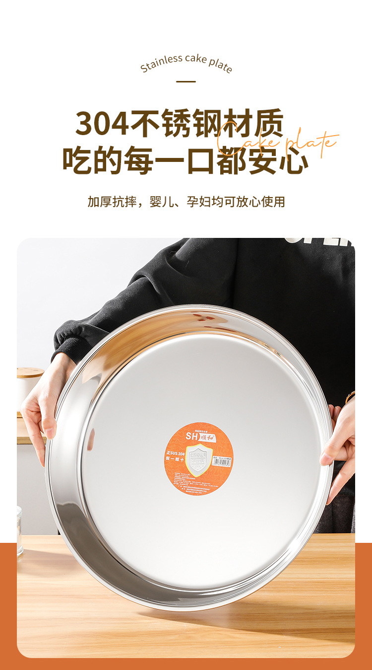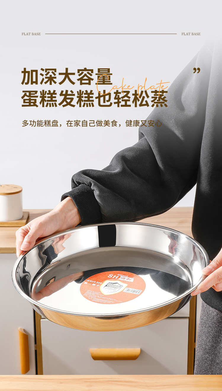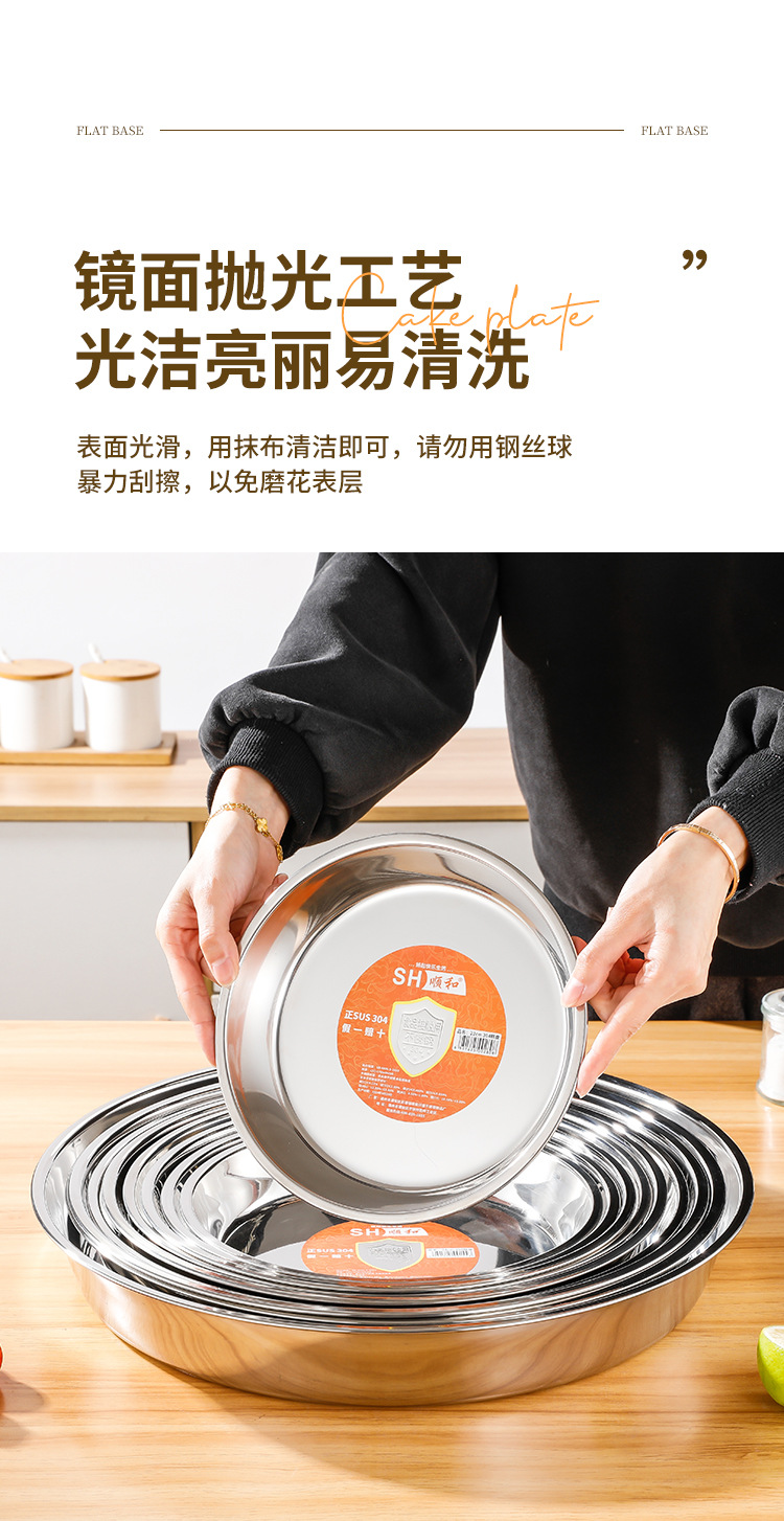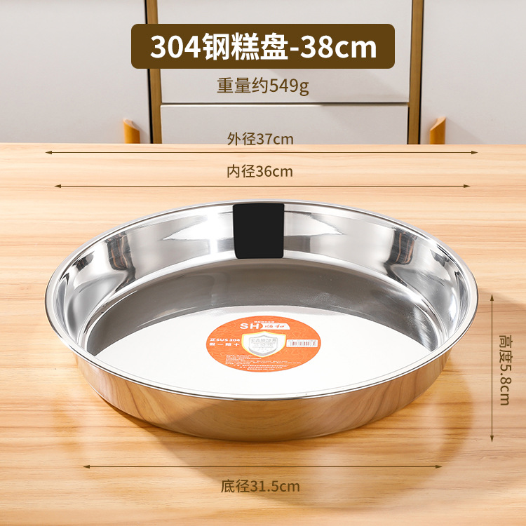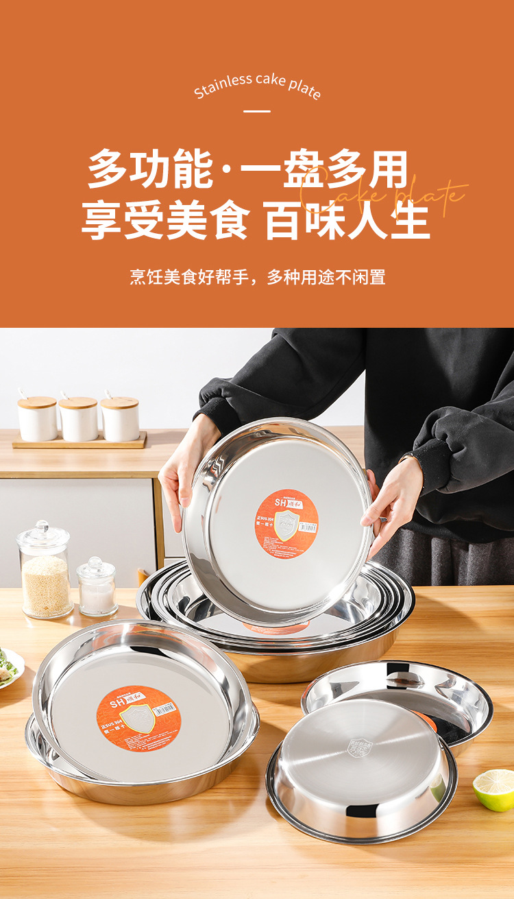 도매 304 스테인레스 스틸 케이크 접시, 냉면 접시, 냉면 고기 젤리 접시, 평평한 바닥 찜 야채 접시, 가정용 원형 케이크 접시스토어 가기