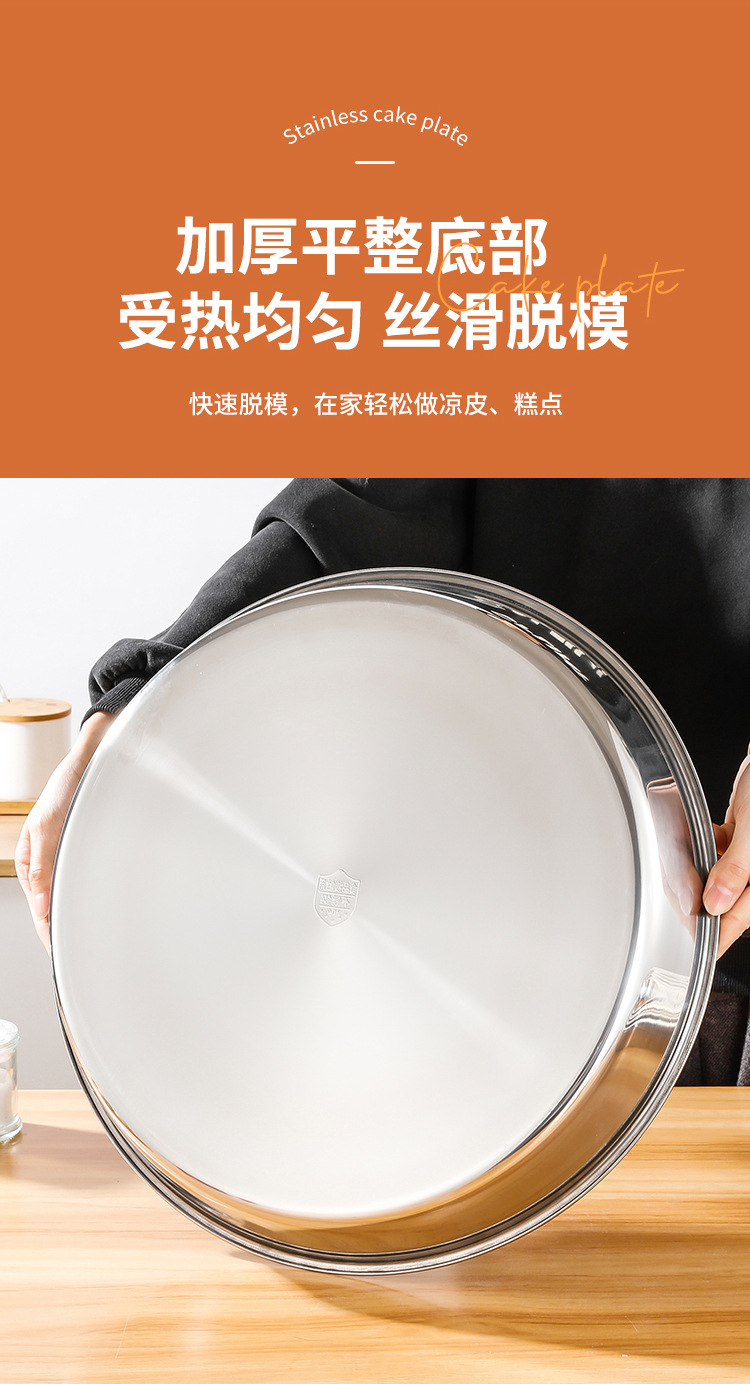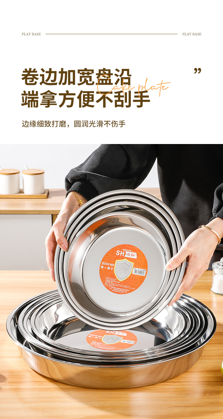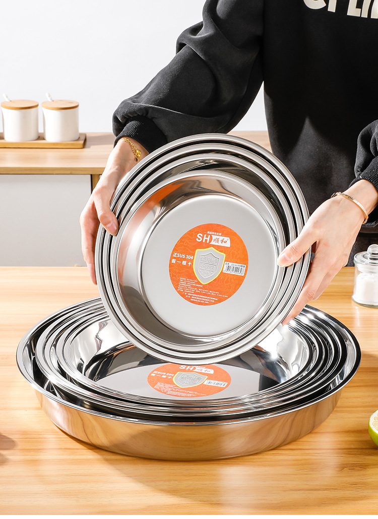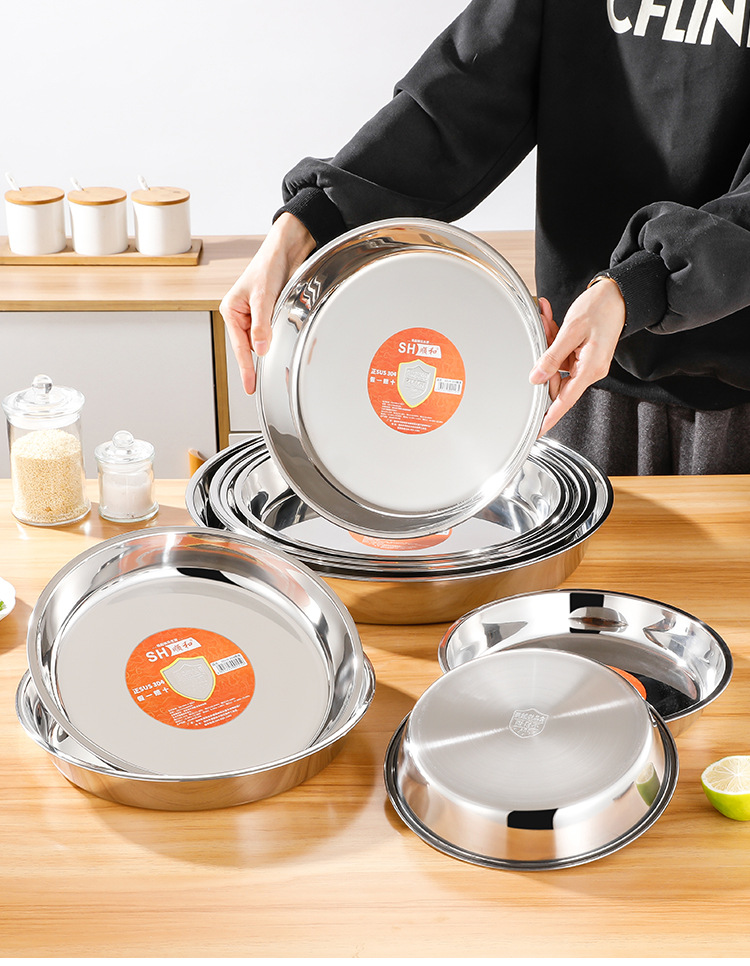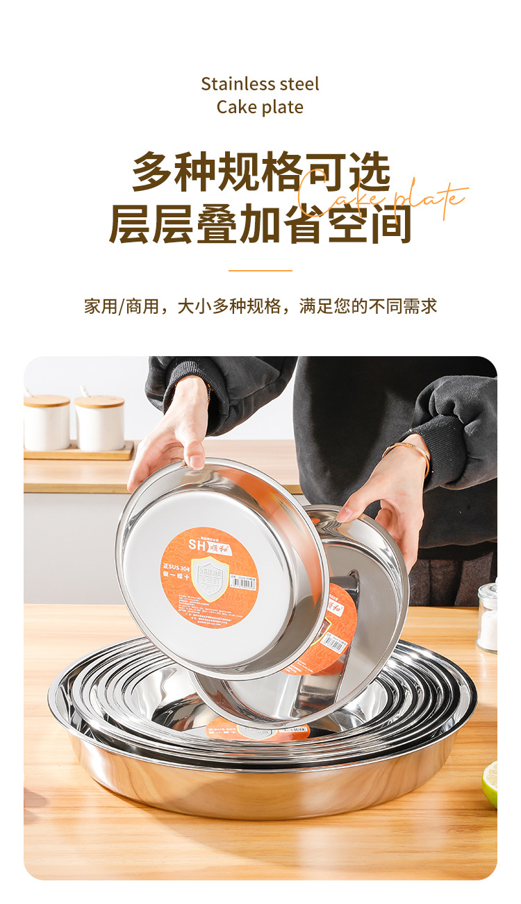 도매 304 스테인레스 스틸 케이크 접시, 냉면 접시, 냉면 고기 젤리 접시, 평평한 바닥 찜 야채 접시, 가정용 원형 케이크 접시스토어 가기