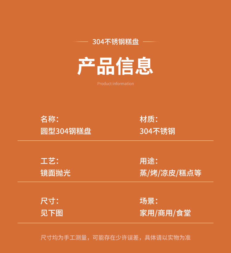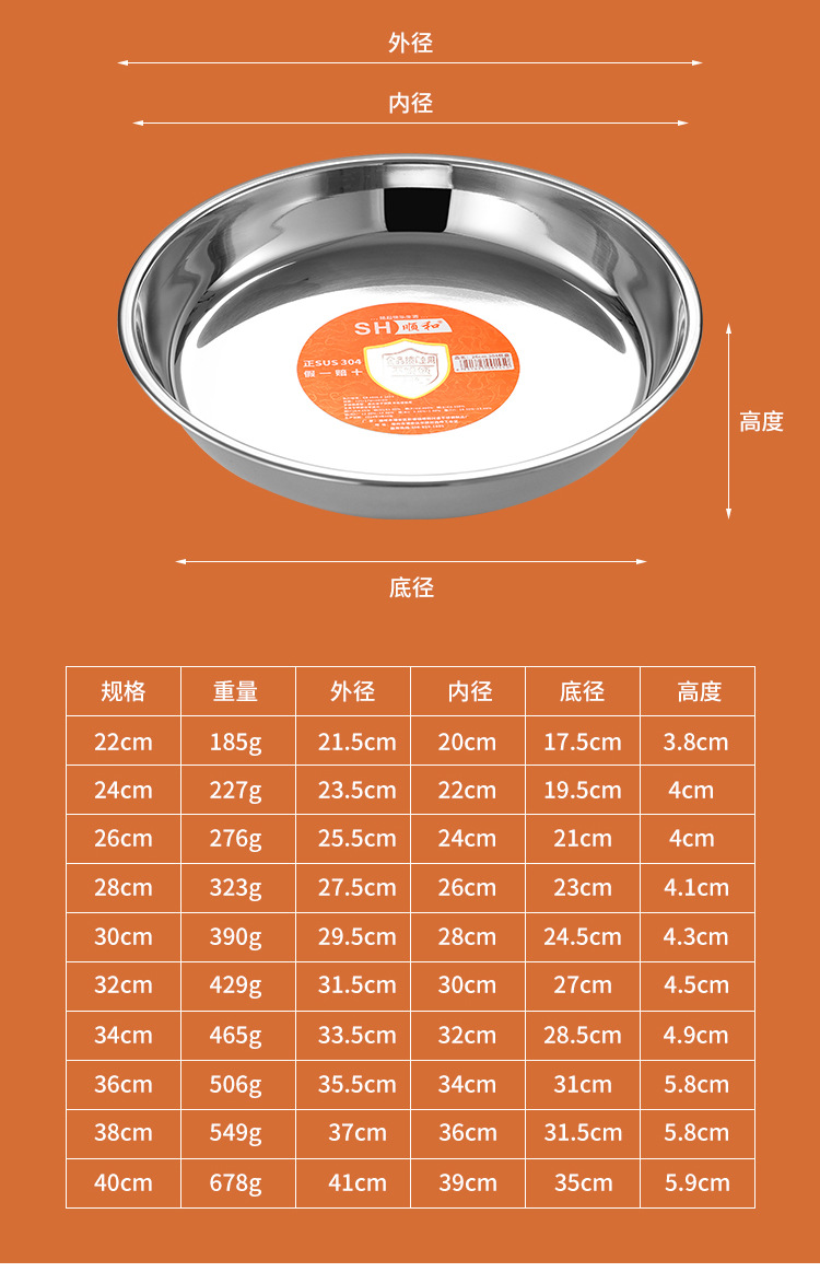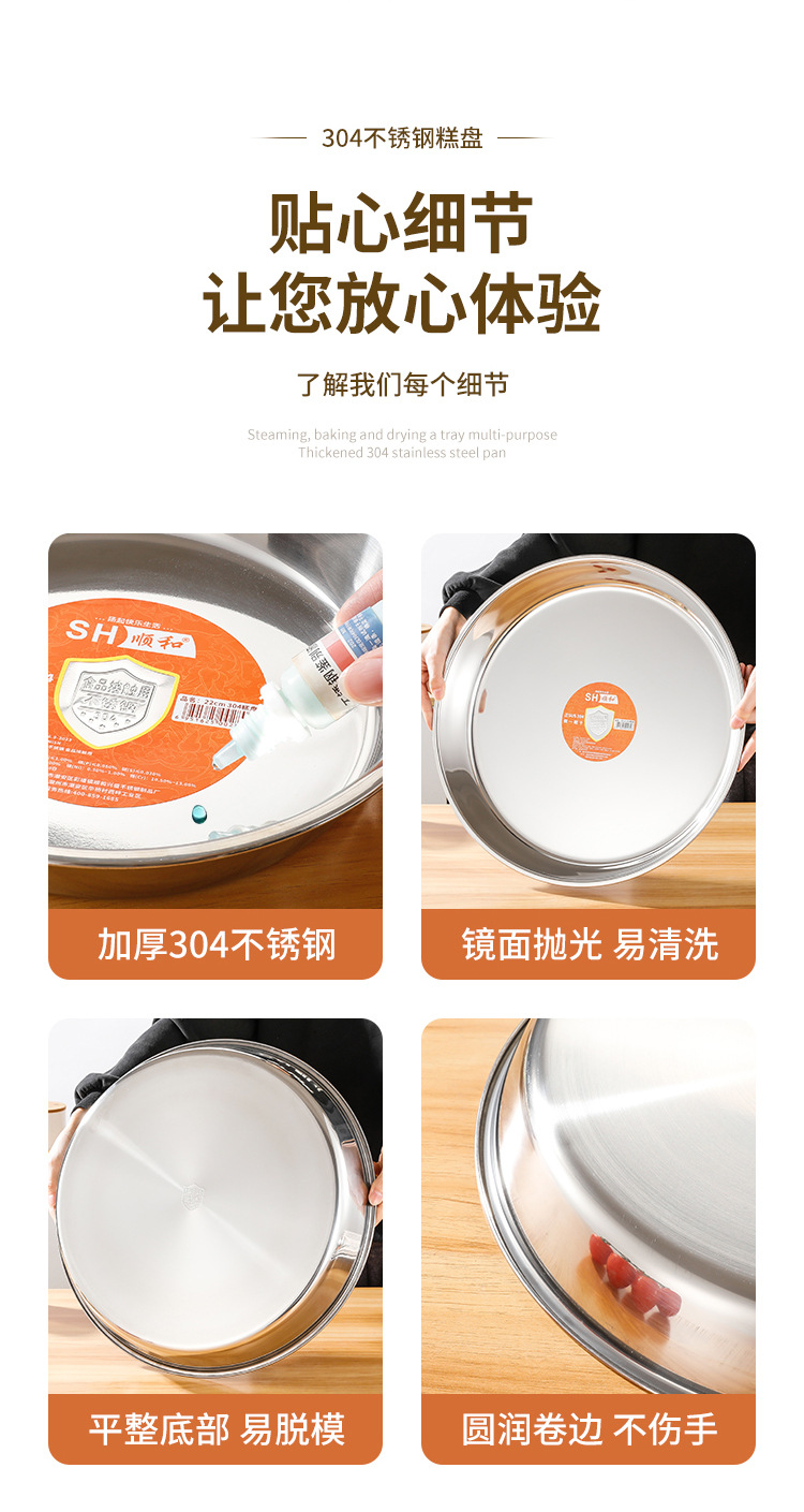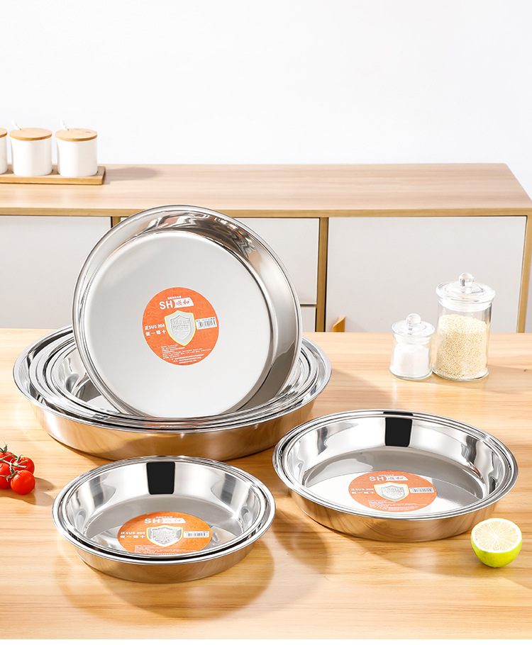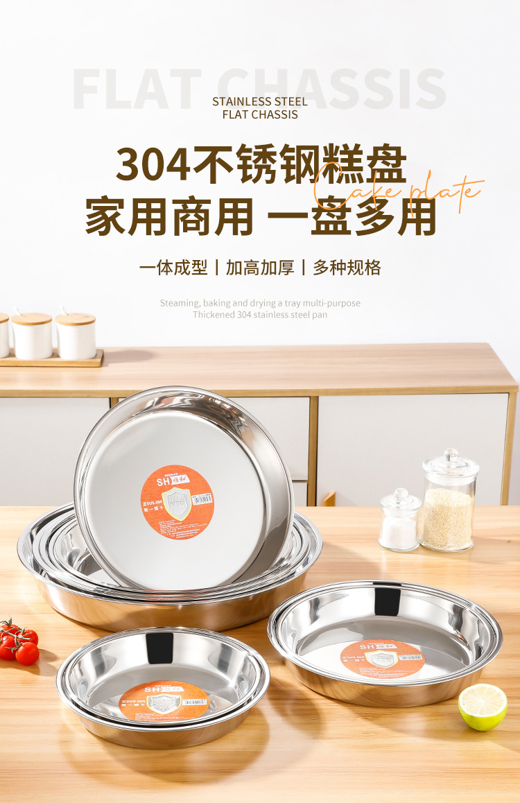 도매 304 스테인레스 스틸 케이크 접시, 냉면 접시, 냉면 고기 젤리 접시, 평평한 바닥 찜 야채 접시, 가정용 원형 케이크 접시