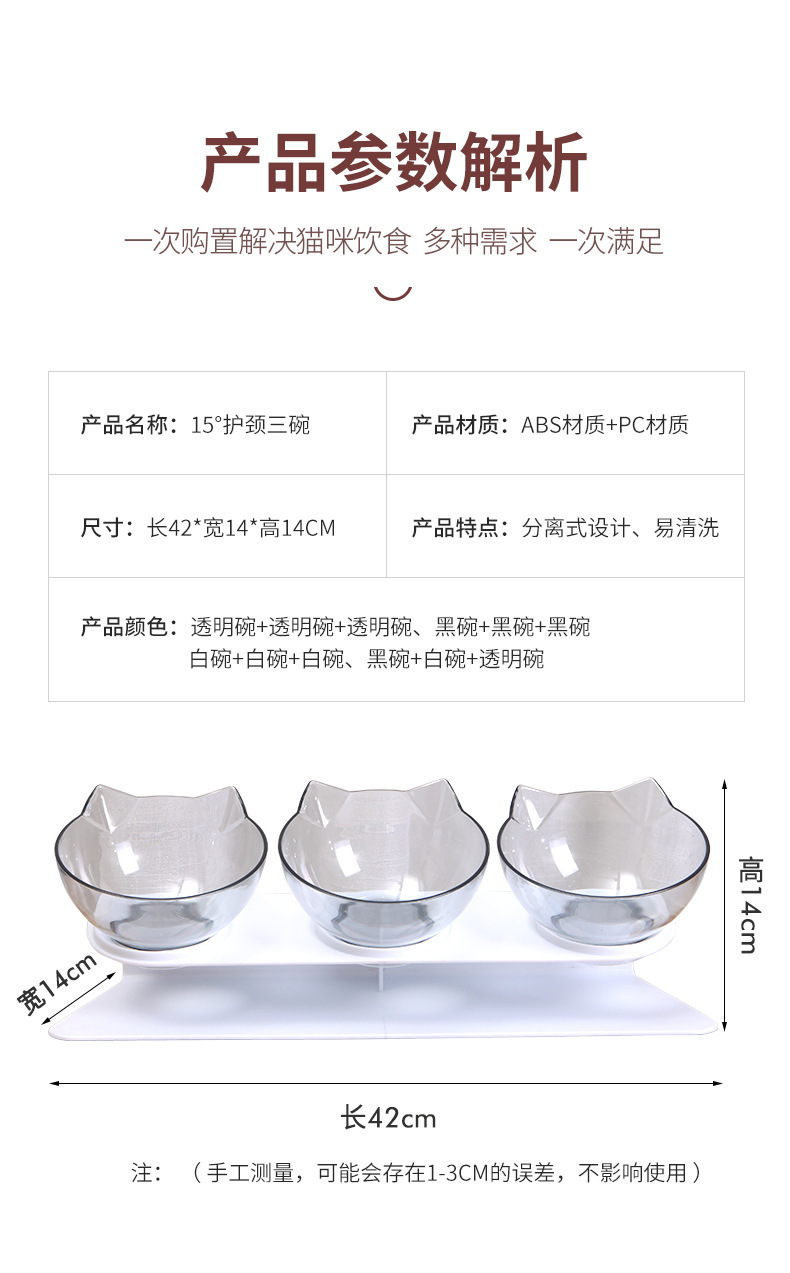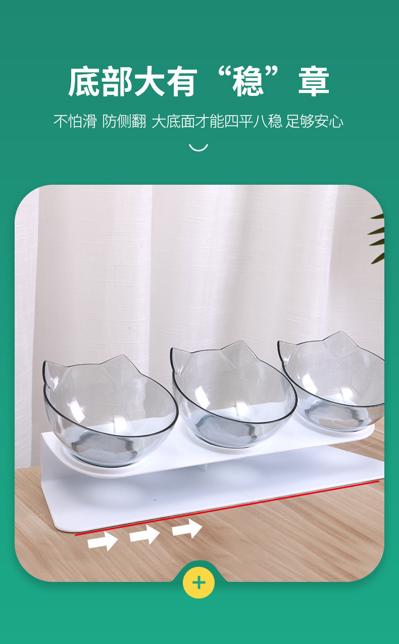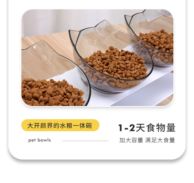 猫碗双碗斜口透明双碗 护颈倾斜猫食盆非陶瓷宠物碗 猫咪碗狗饭碗