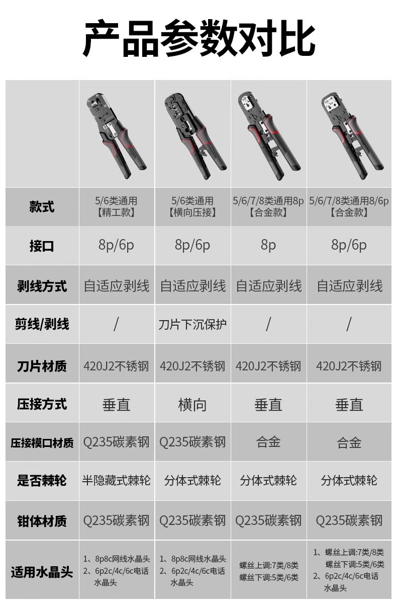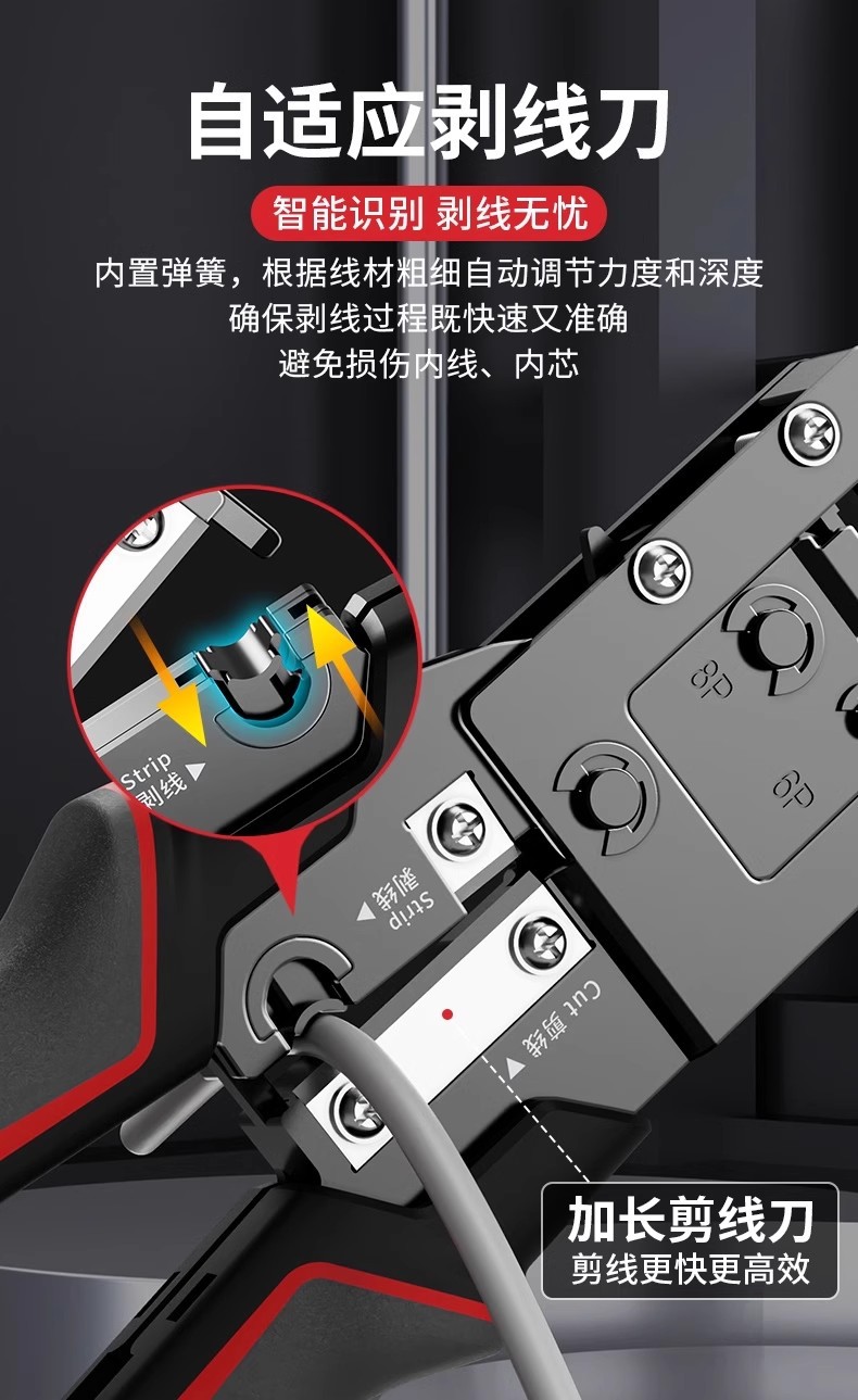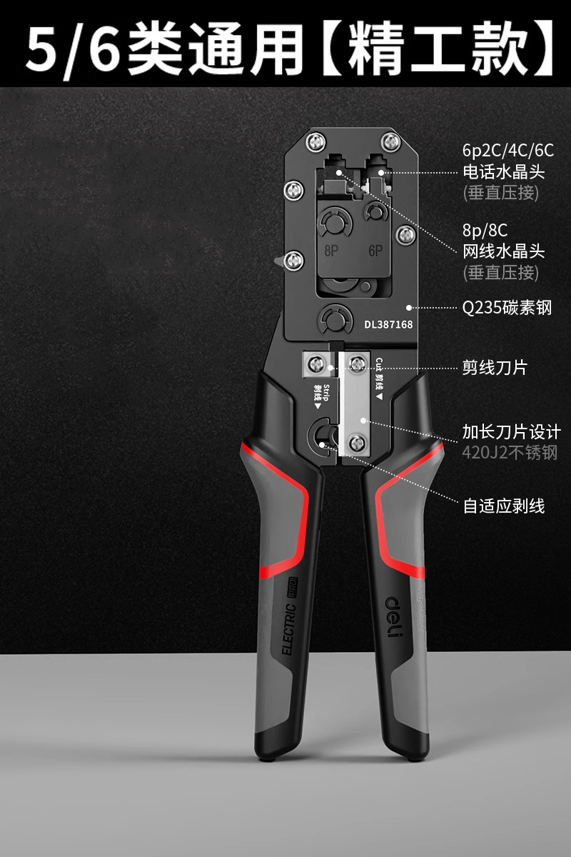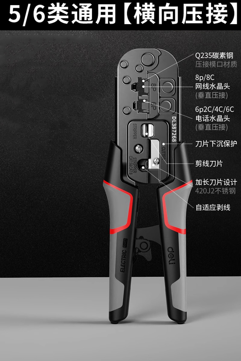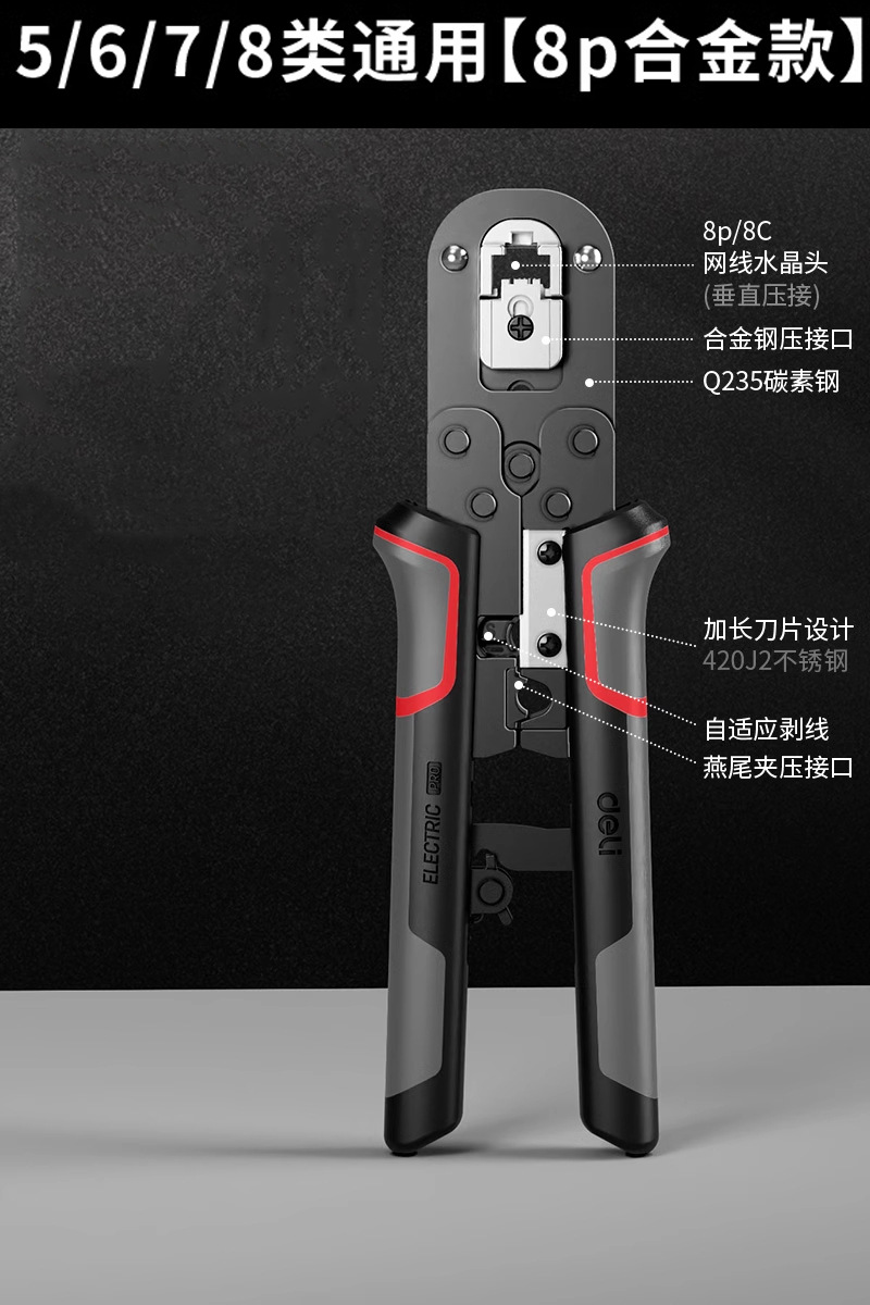 델리 네트워크 케이블 펜치 전문 등급 크리스탈 헤드 와이어 압착 펜치 세트 테스터 카테고리 5/6/7 8P 다기능 엔지니어링