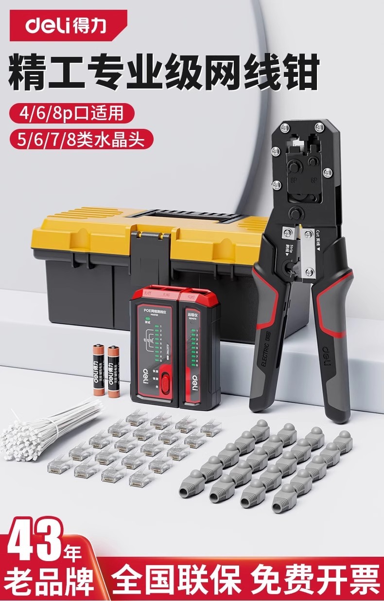 델리 네트워크 케이블 펜치 전문 등급 크리스탈 헤드 와이어 압착 펜치 세트 테스터 카테고리 5/6/7 8P 다기능 엔지니어링스토어 가기