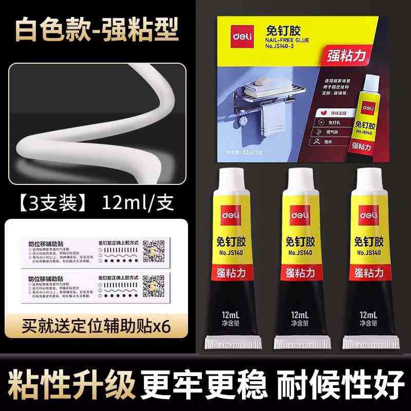 델리 JS140 못없는 접착제, 강력한 접착력, 펀치없는 범용 접착제, 고점도 방수 벽 접착제, 3팩스토어 가기