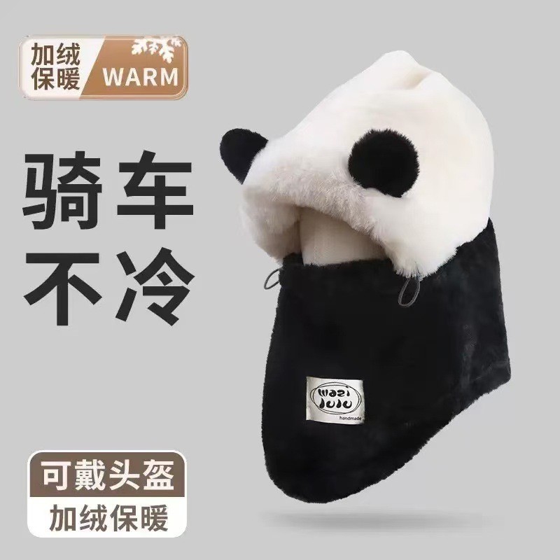 플러시 귀여운 곰 귀 보호 모자와 스카프 올인원 여성 가을, 겨울 사이클링 따뜻하고 방한 바오터우 모자