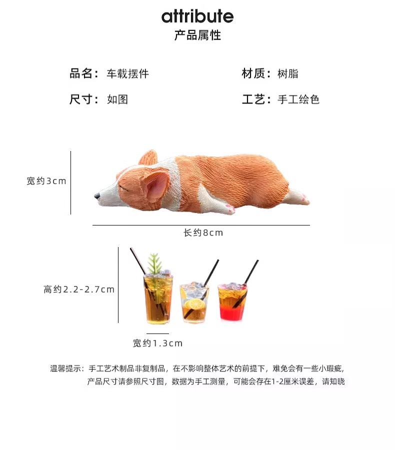 미니 수면 자세 Corgi 자동차 장식품 창조적 인 자동차 센터 콘솔 장식 시뮬레이션 귀여운 수지 강아지 자동차스토어 가기