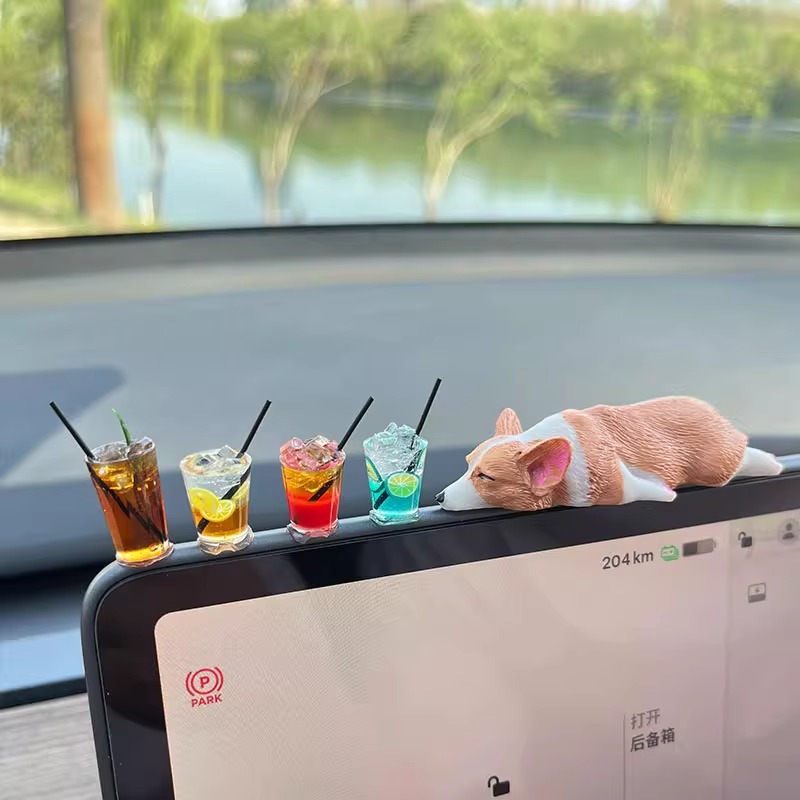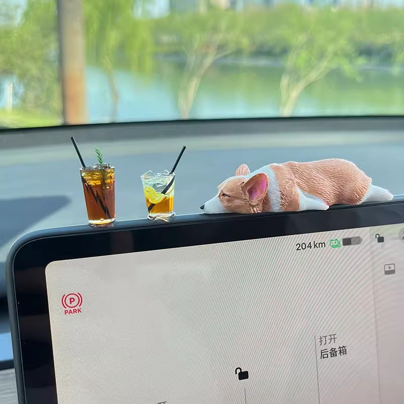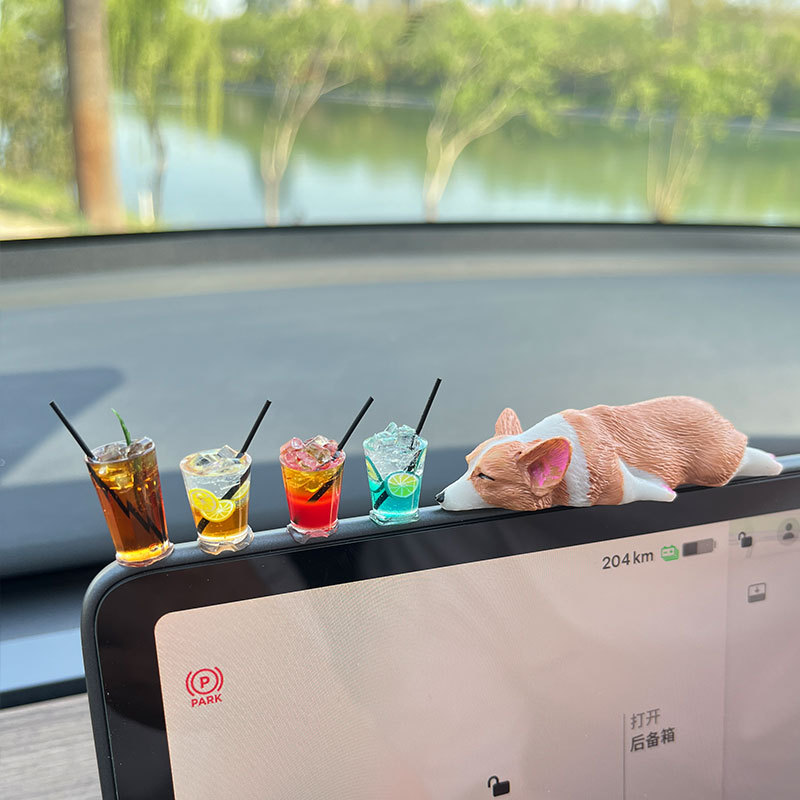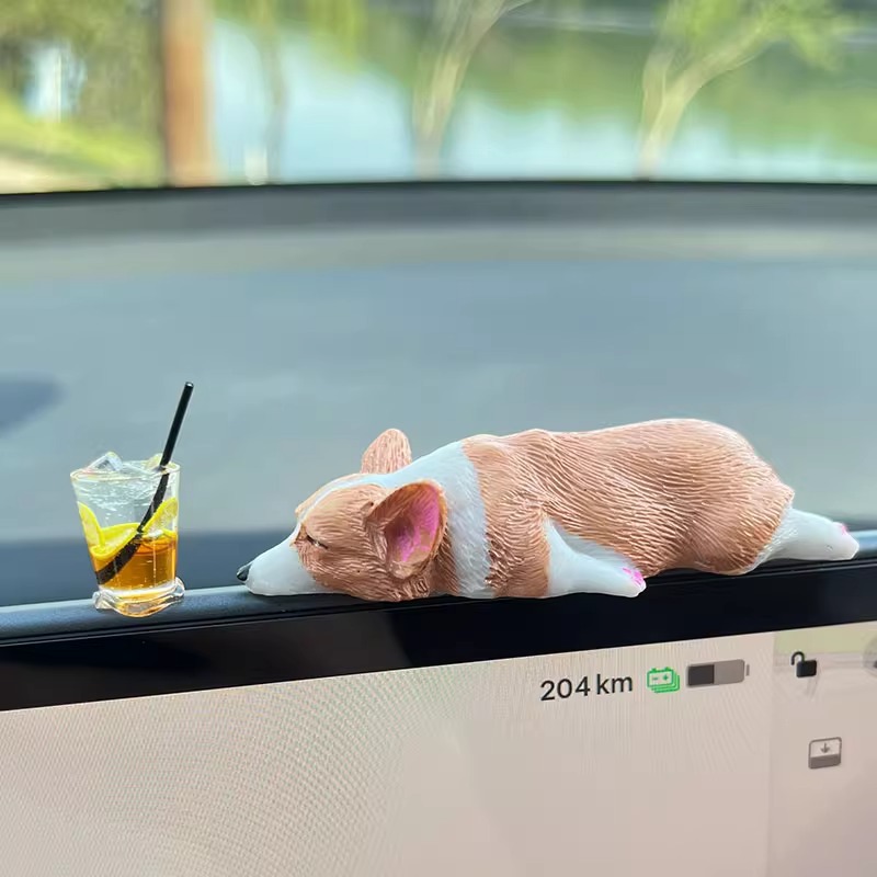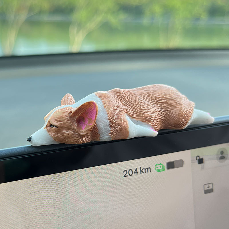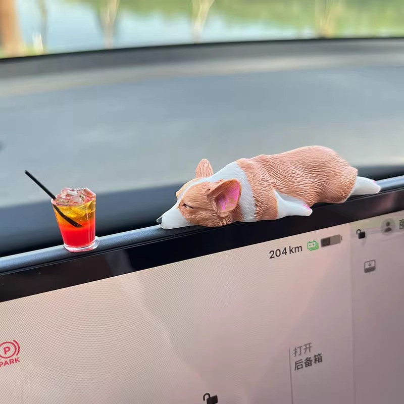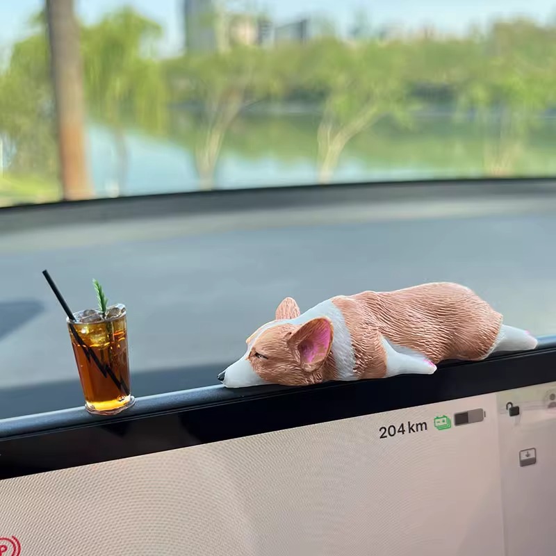 미니 수면 자세 Corgi 자동차 장식품 창조적 인 자동차 센터 콘솔 장식 시뮬레이션 귀여운 수지 강아지 자동차