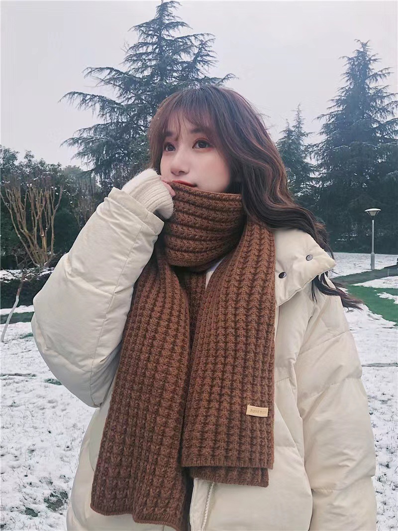 가을 겨울 여성용 스카프 한국어 버전 단색 니트 울 따뜻한 학생 귀여운 커플 인터넷 연예인 스카프 남성용 다용도 스타일스토어 가기