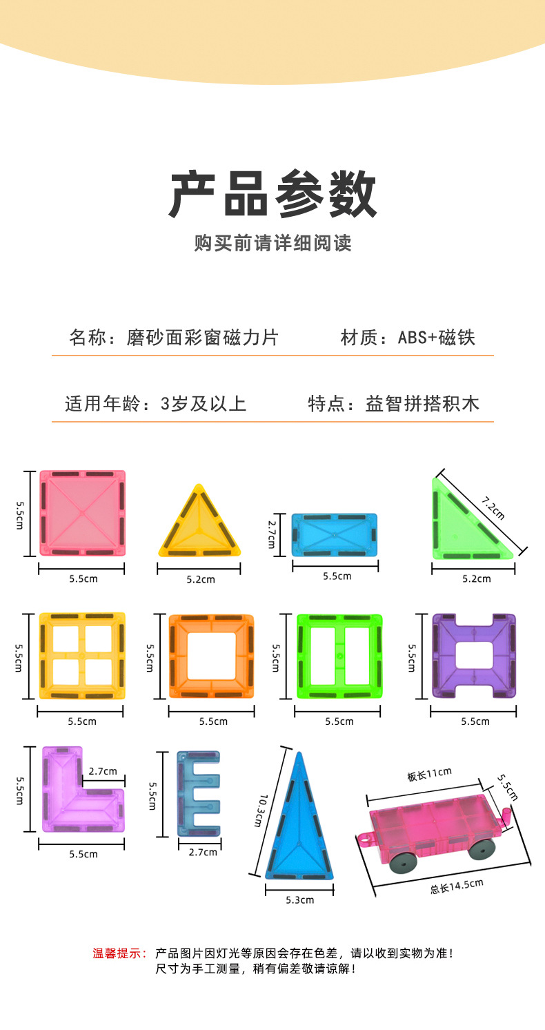 중간 크기 5.5cm 컬러 창 자기 시트 어린이 자기 조립 빌딩 블록 소년과 소녀를위한 아기 교육 장난감 선물스토어 가기