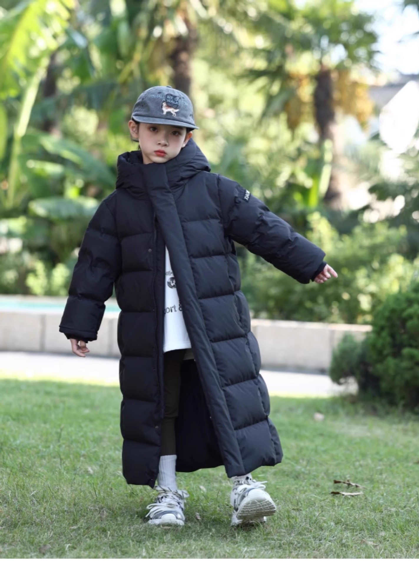 새로운 어린이 다운 재킷, 여아용 긴 무릎 길이 겨울 코트, 중대형 어린이용 두꺼운 겨울 코트로 추위로부터 보호