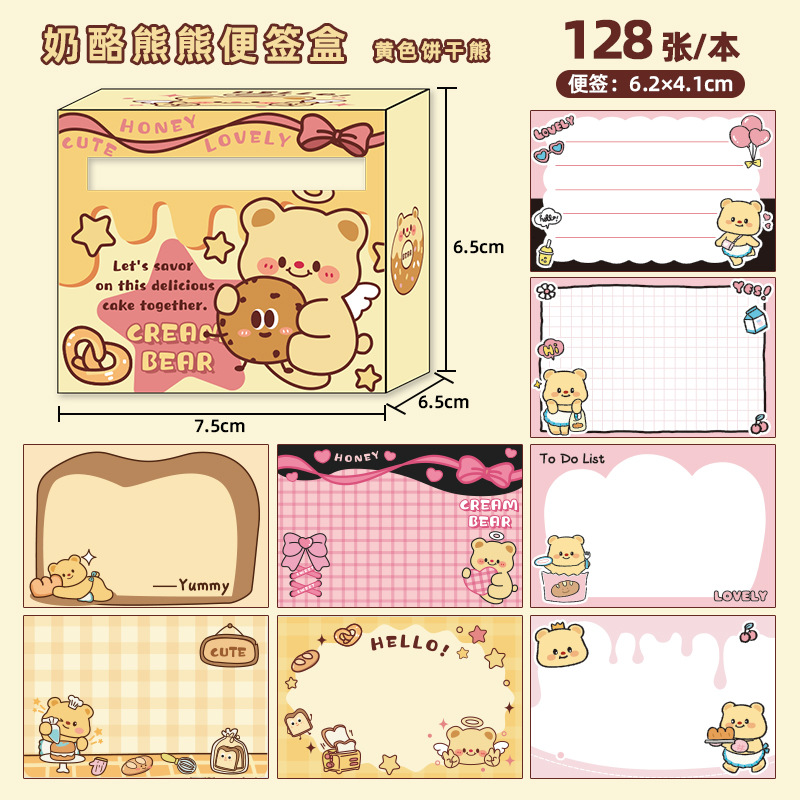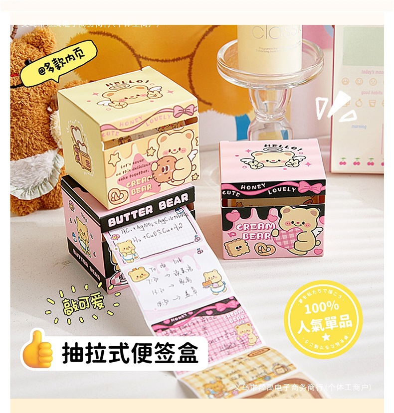크림베어 풀아웃 스티커 메모, 중학생을 위한 고급스러운 스티커 메모, 완전 접착식 찢을 수 있는 스티커 메모스토어 가기