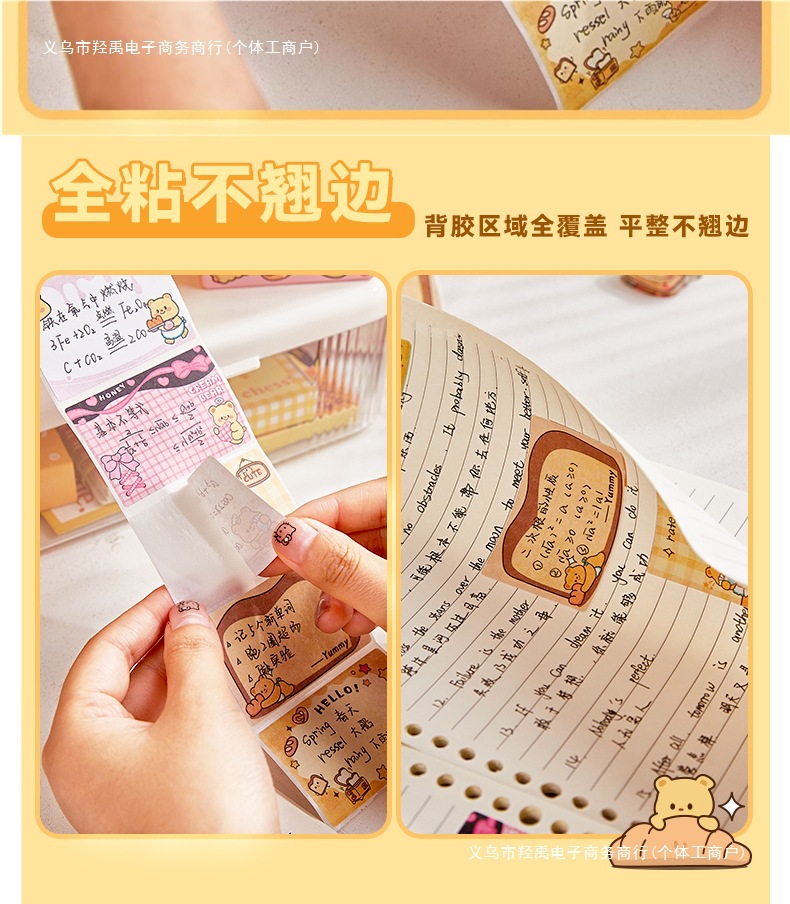 크림베어 풀아웃 스티커 메모, 중학생을 위한 고급스러운 스티커 메모, 완전 접착식 찢을 수 있는 스티커 메모