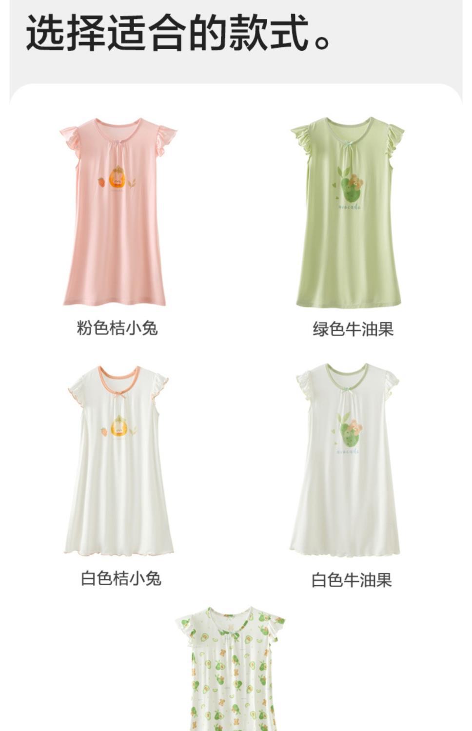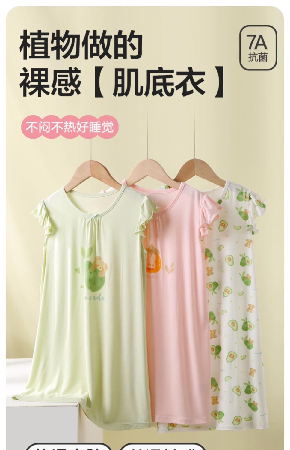 모달 여아 잠옷, 여름 신작 아동 잠옷, 가정복, 얇은 중대형 아동 공주 스커트, 에어컨 의류스토어 가기