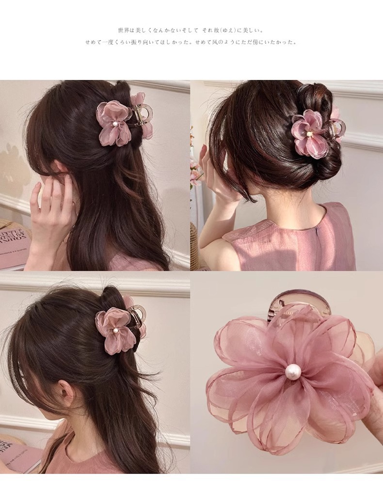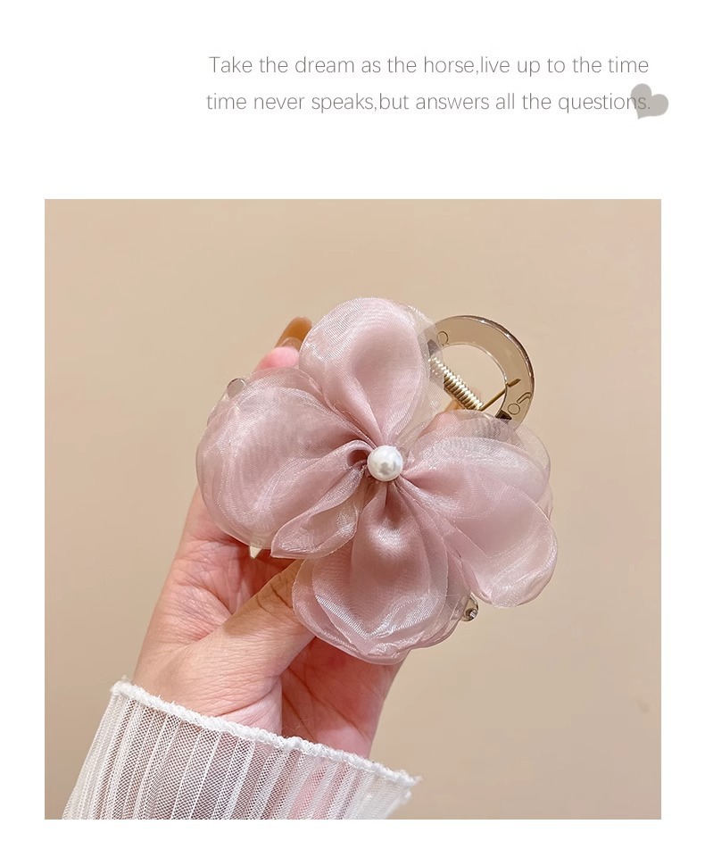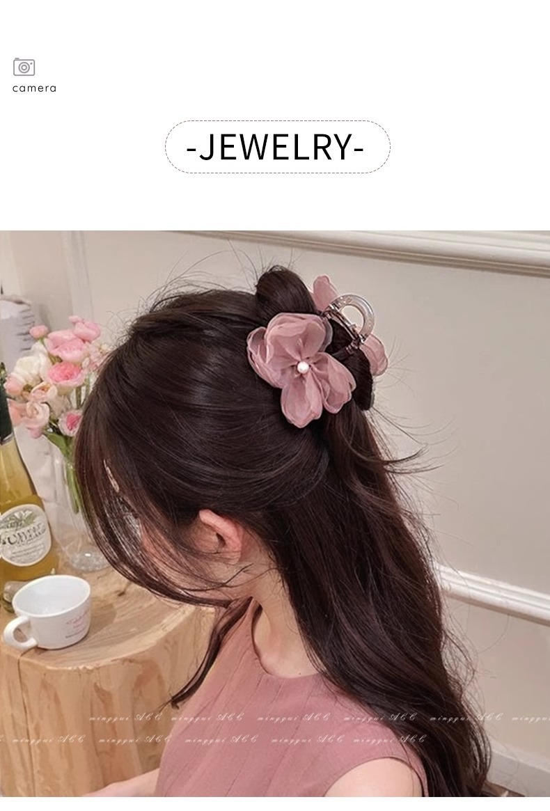 2024新款时尚气质网纱花朵发夹抓夹女高级感鲨鱼夹发卡头饰发夹