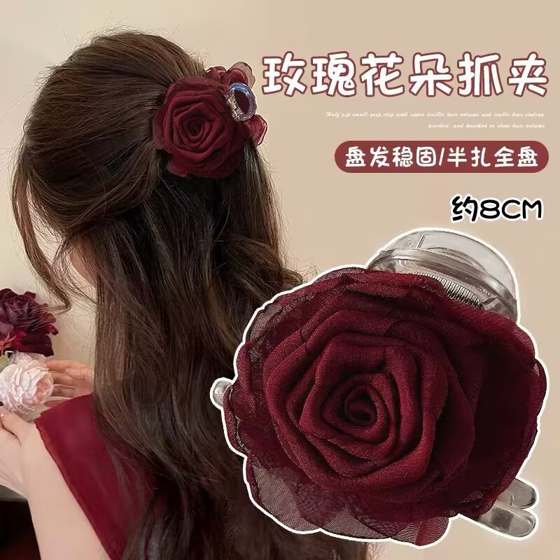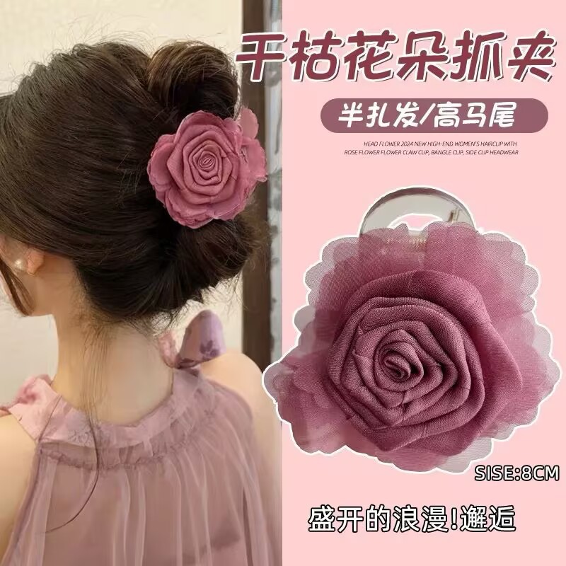 2025 새로운 하프 헤어 베고니아 헤어핀 여성 꽃 잡이 우아한 중형 상어 클립 헤드웨어 느낌